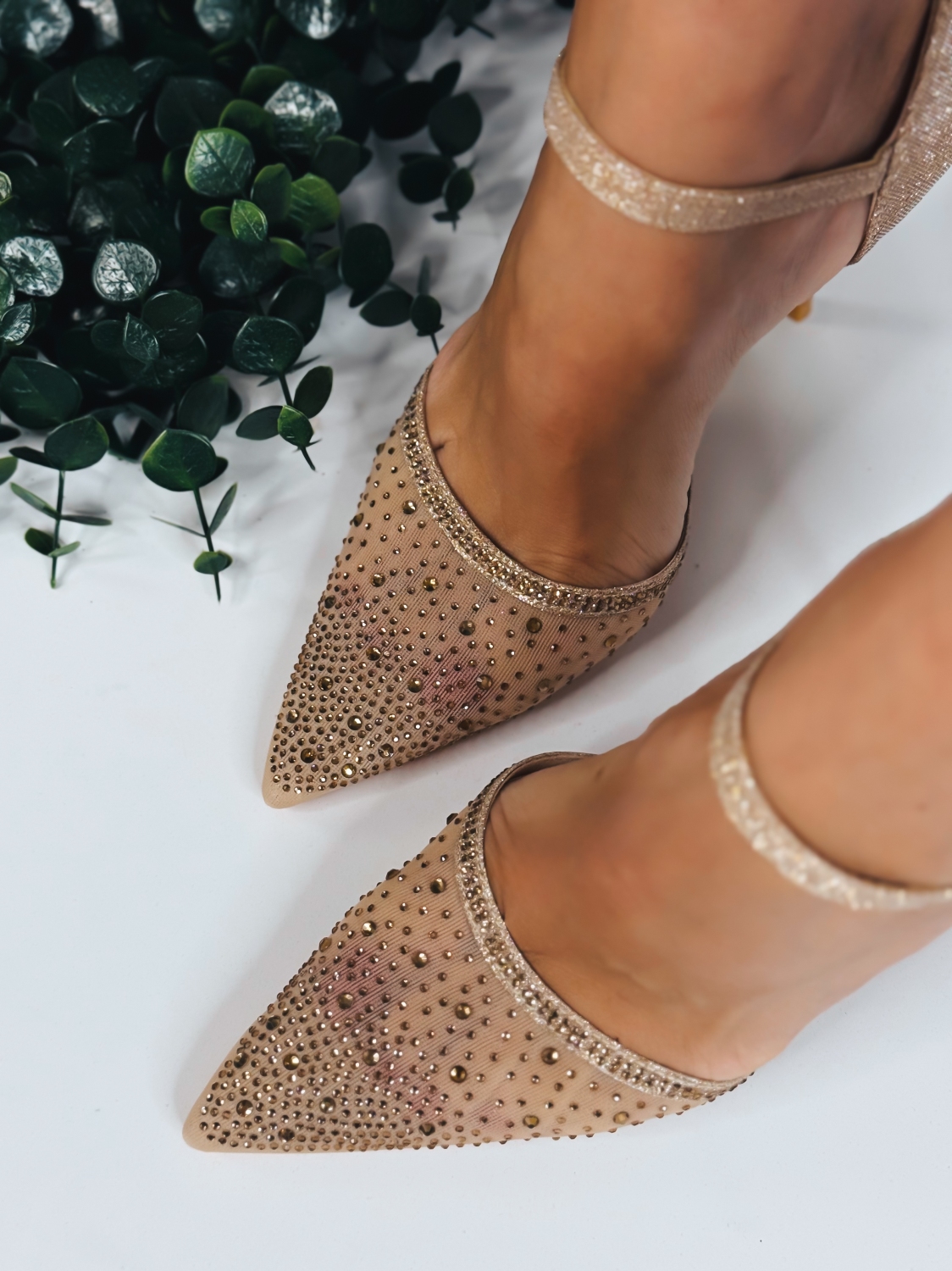 Tieto dámske sandále s tenkým opätkom sú navrhnuté tak, aby spájali eleganciu, pohodlie a výrazný ženský štýl. Prednú časť sandál zdobia jemné ozdobné kamienky, ktoré vytvárajú krásny trblietavý efekt a dodávajú obuvi luxusný a slávnostný vzhľad. Kamienky sú vkusne umiestnené tak, aby pôsobili elegantne a zároveň zvýraznili celkový dizajn sandál. Model je doplnený praktickým zapínaním okolo členku, ktoré nielen pekne zvýrazní nohu, ale zároveň zabezpečuje stabilitu a pohodlné nosenie počas chôdze. Vďaka tomuto riešeniu sandále dobre držia na nohe a poskytujú pocit istoty pri každom kroku. Vďaka svojmu elegantnému prevedeniu sa skvele hodia k šatám, sukniam aj k elegantným nohaviciam. Tieto sandále sú ideálnou voľbou na rôzne spoločenské príležitosti, oslavy, svadby, ale aj na letné večerné stretnutia. Kombinácia ozdobných kamienkov, trblietavého efektu a zapínania okolo členku vytvára štýlový model, ktorý dodá každému outfitu nádych elegancie a ženskosti.