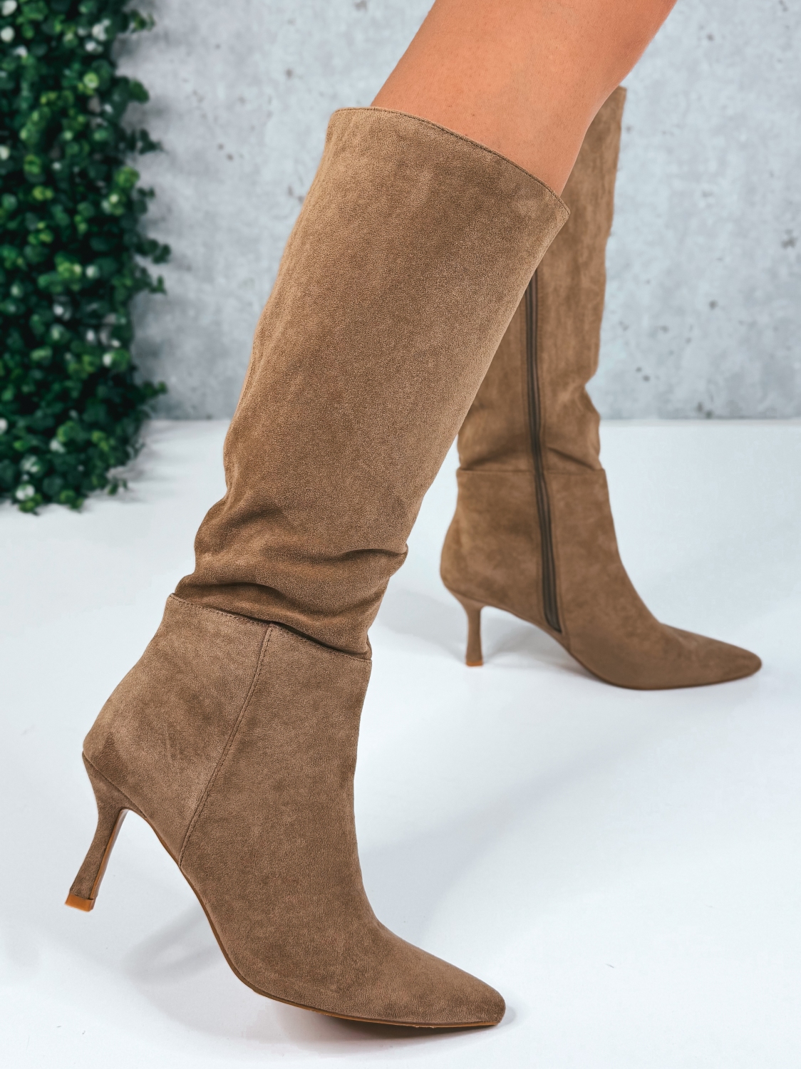 Doprajte si spojenie pohodlia a nadčasovej elegancie s týmito dámskymi semišovými čižmami pod kolená. Ich jemný, na dotyk príjemný semiš pôsobí luxusne a okamžite dodá každému outfitu sofistikovaný vzhľad. Nízky opätok zabezpečuje celodenné pohodlie, takže sa v nich môžete cítiť skvelo počas pracovného dňa, pri nákupoch aj na dlhších prechádzkach mestom. Vďaka štíhlemu strihu krásne predĺžia nohy a perfektne sa kombinujú s úzkymi džínsami, koženými legínami či pletenými šatami. Praktické zapínanie a kvalitné spracovanie zaručujú, že čižmy budú stabilné, pohodlné a pripravené sprevádzať vás celú sezónu. Tento model je ideálny pre ženy, ktoré hľadajú univerzálnu, štýlovú a zároveň pohodlnú obuv. Čižmy na nízkom opätku poskytujú stabilitu bez kompromisov a sú skvelou voľbou na každý deň. Pridajte do svojho šatníka obľúbený kúsok, ktorý nikdy nevyjde z módy.