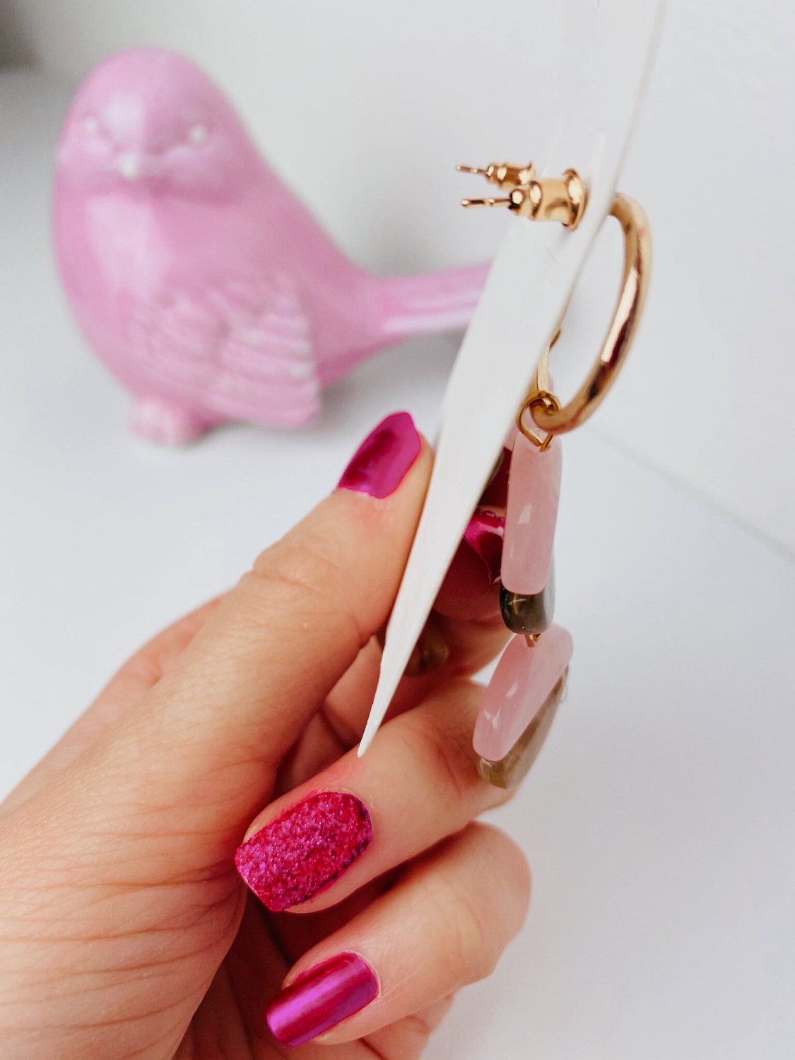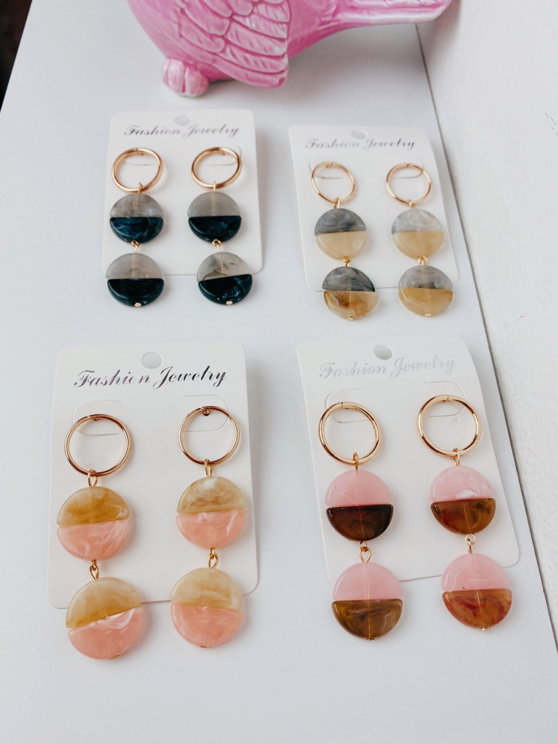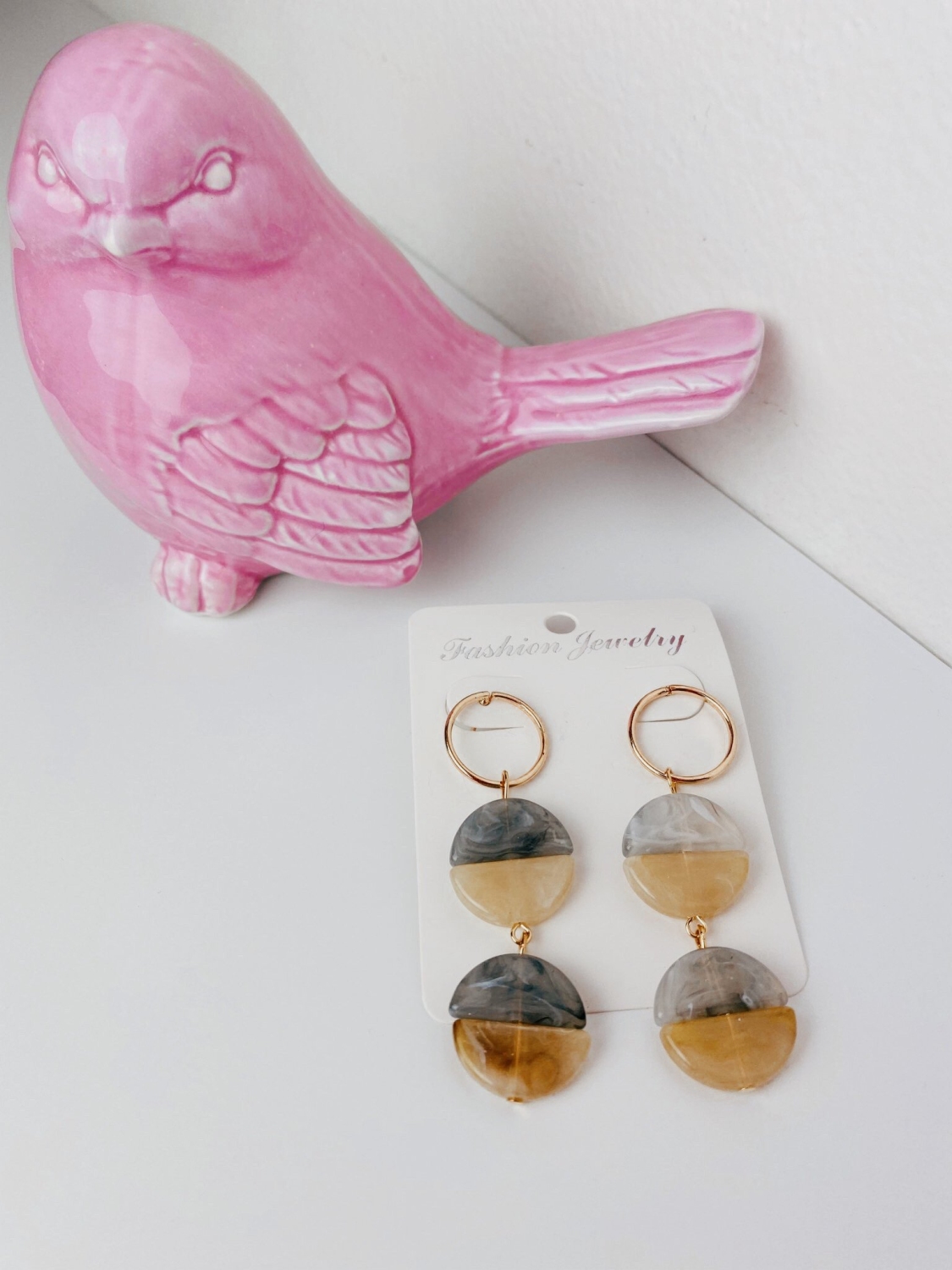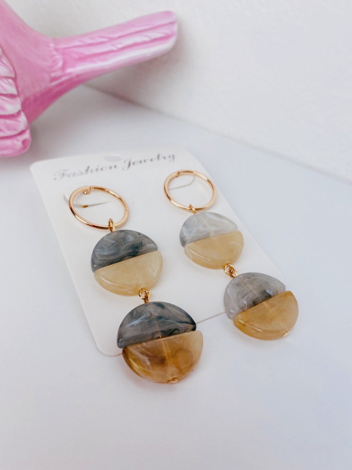 Dámske sivo-béžové mramorové náušnice. Majú zlatý podklad a mramorové kamene v dvoch farbách. Veľmi štýlový kúsok z našej kolekcie.