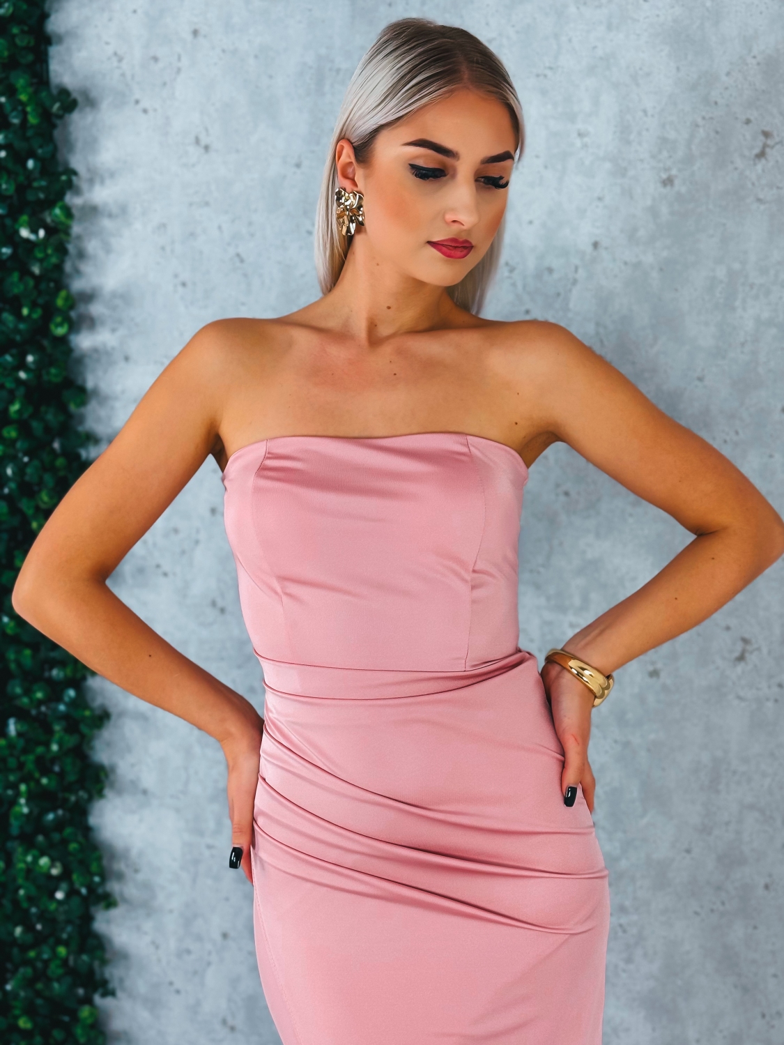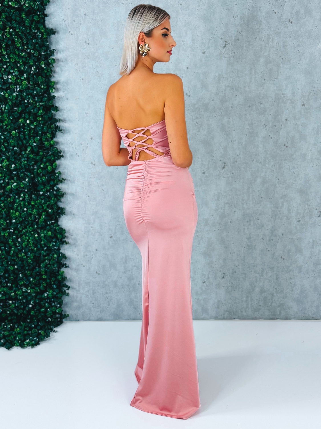 Dámske spoločenské priliehavé šaty s viazačkou a riasením na zadnej časti Princess sú skvelou voľbou pre ženy, ktoré milujú ženskosť, eleganciu a rafinovaný štýl. Ich priliehavý strih nádherne zvýrazní postavu, zatiaľ čo efektné riasenie na zadnej časti dodá šatám luxusný a zvodný vzhľad. Viazačka na chrbte umožňuje dotvarovať siluetu presne podľa vašich predstáv – opticky zúži pás a dodá outfitu harmonickú líniu. Kvalitný, pružný materiál sa príjemne prispôsobí telu a zaručí komfort počas celého večera.