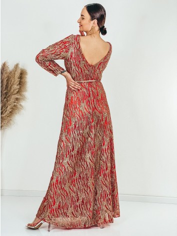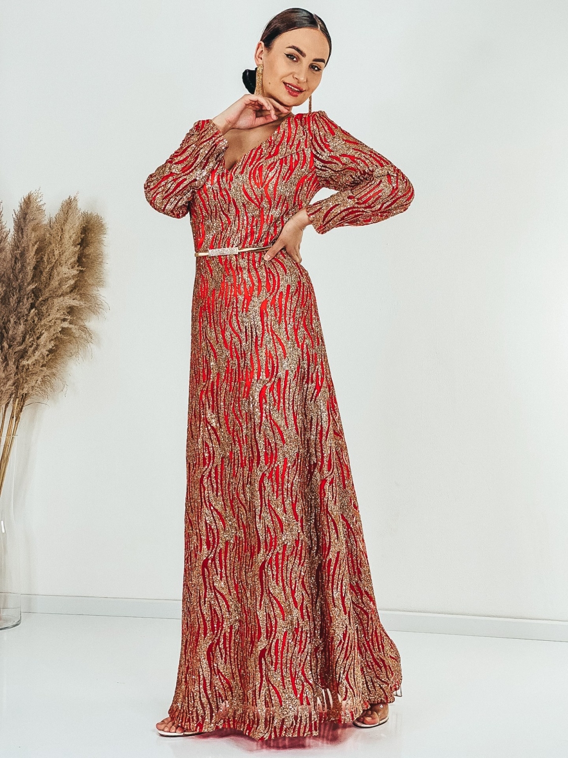 Dámske spoločenské šaty Koda. Veľmi luxusný kúsok z našej ponuky, ktorý očarí každú z Vás. V šatách Koda sa stanete hviezdou večera. Príjemný a pohodlný materiál. Šaty sa zapínajú zo zadnej časti na zips. Modelka je vysoká 175 cm a má oblečenú veľkosť XL.