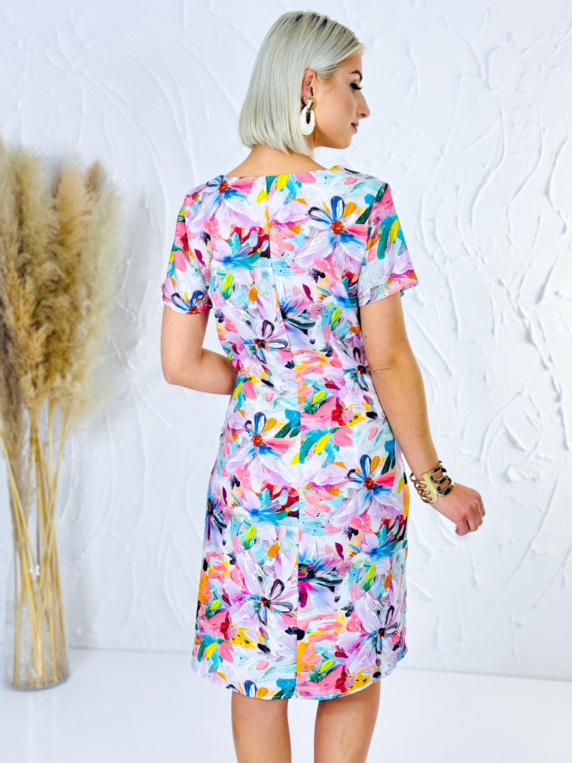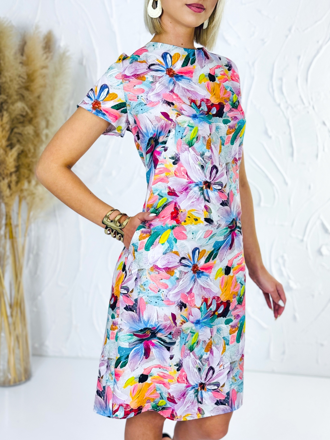Dámske šaty pre moletky vo veľkostiach od 42 do 52 sú navrhnuté tak, aby poskytovali pohodlie, elegantný vzhľad a lichotivý strih pre plnšie postavy. Tento model spája praktickosť s moderným dizajnom a je ideálnou voľbou pre ženy, ktoré chcú vyzerať štýlovo a zároveň sa cítiť príjemne počas celého dňa. Šaty majú jednoduchý a veľmi obľúbený strih, ktorý jemne kopíruje postavu bez zbytočného obopínania. Vďaka premyslenému prevedeniu krásne sedia na rôznych typoch postavy a poskytujú voľnosť pri pohybe. Sú vhodné na každodenné nosenie, do práce, na stretnutia aj rodinné oslavy. Kvetovaný vzor dodáva šatám svieži, ženský a veselý vzhľad. Farebná kombinácia pôsobí moderne a zároveň elegantne, vďaka čomu sa šaty dajú ľahko kombinovať s jednoduchými doplnkami a rôznymi typmi obuvi. Výborne sa hodia k sandálom, lodičkám aj pohodlnej obuvi na bežné nosenie.