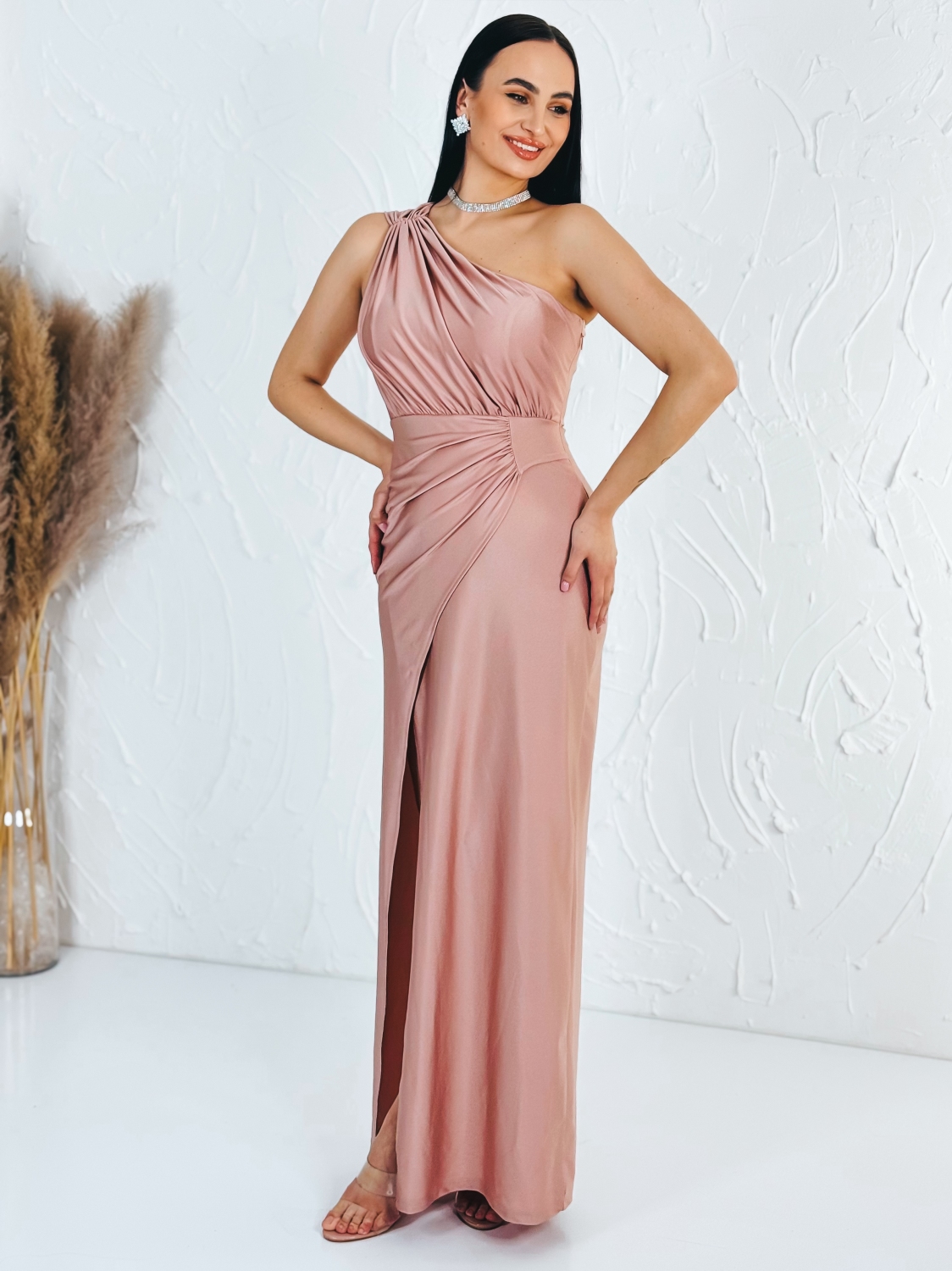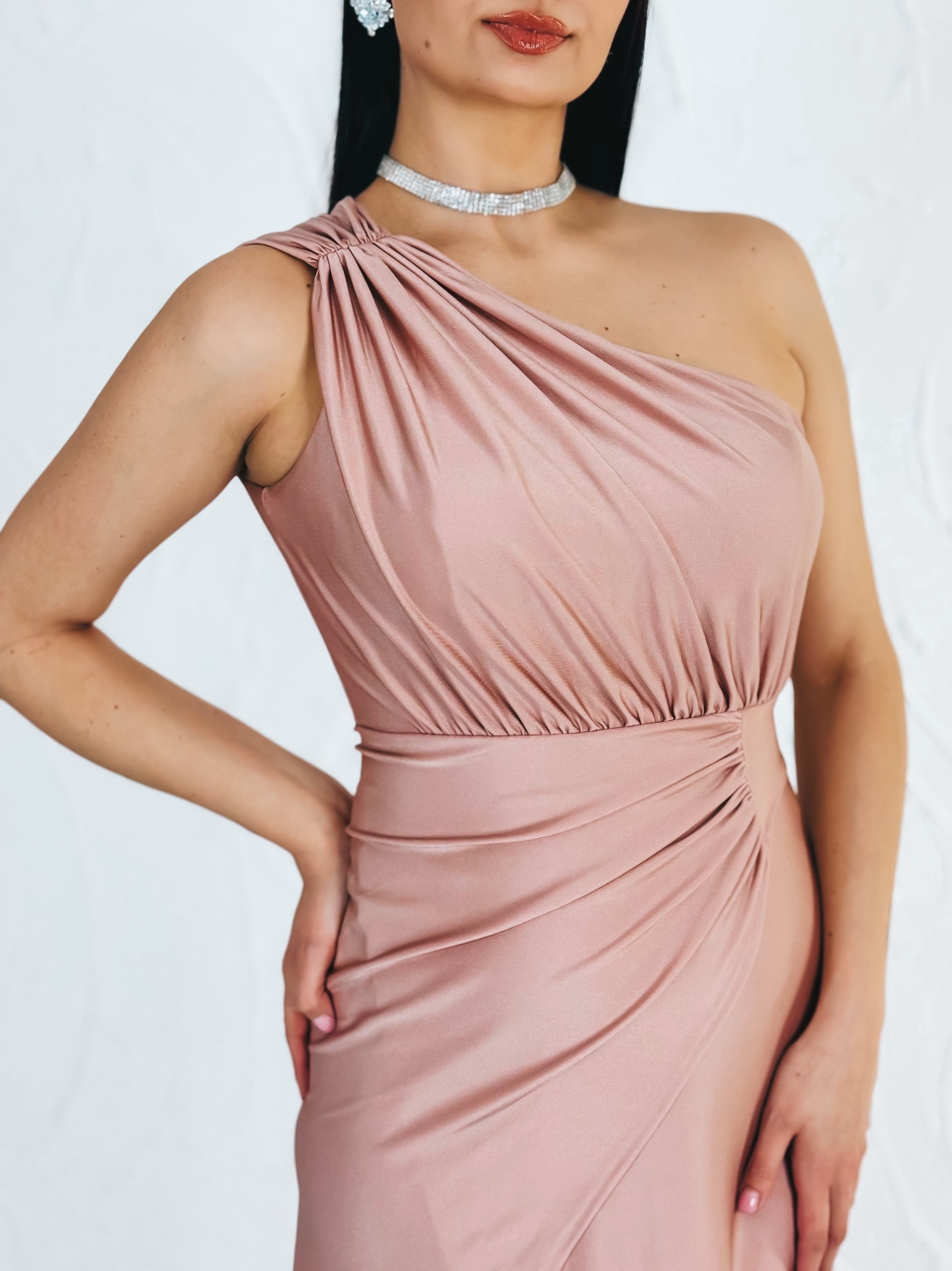 Dlhé elastické spoločenské šaty v TOP farbe, v ktorých zažiari každá dáma. Veľmi luxusný kúsok z našej ponuky, ktorý očarí každú z Vás a samozrejme aj ostatných okolo Vás. Vhodné sú na rôzne spoločenské udalosti ako je svadba, stužková slávnosť či ples. Šaty sú doplnené razporkom a nazberaním v páse. Exkluzívny kúsok, ktorý by nemal chýbať žiadnej žene, ktorá má rada kvalitnú a štýlovú módu. Zapínanie šiat z boku na zips.