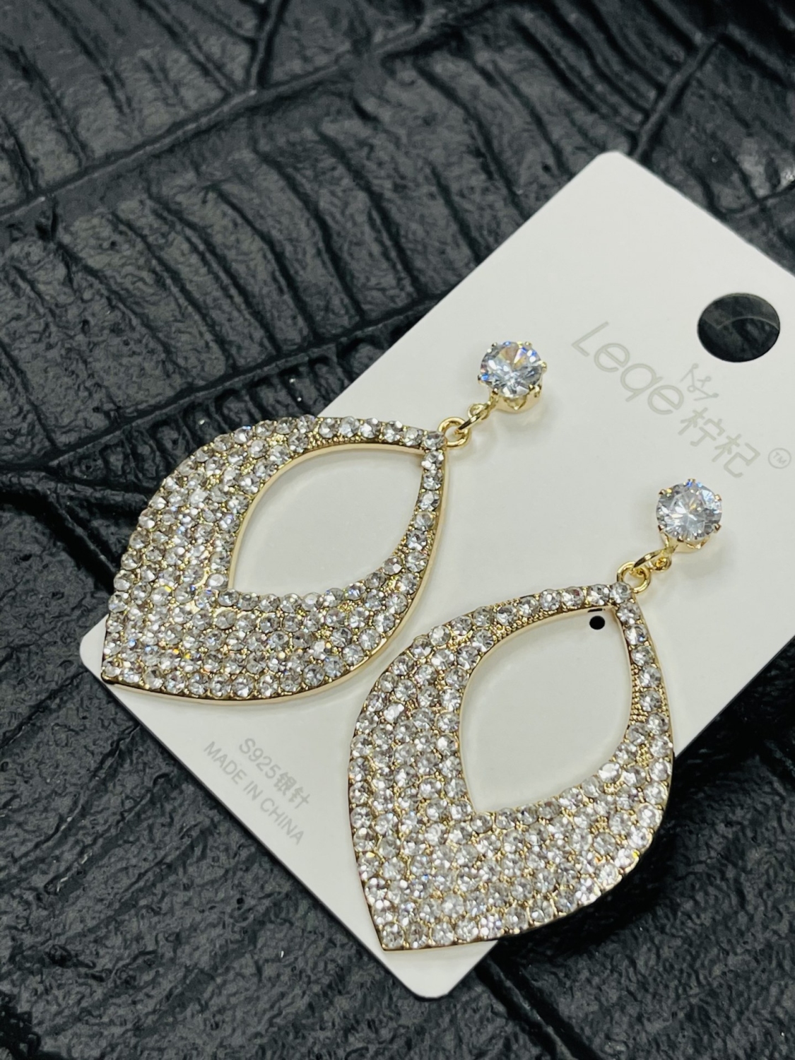 Dámske náušnice s ozdobnými kameňmi. Majú zlatý podklad. Vkusný dizajn. Veľmi elegantný kúsok z našej kolekcie.