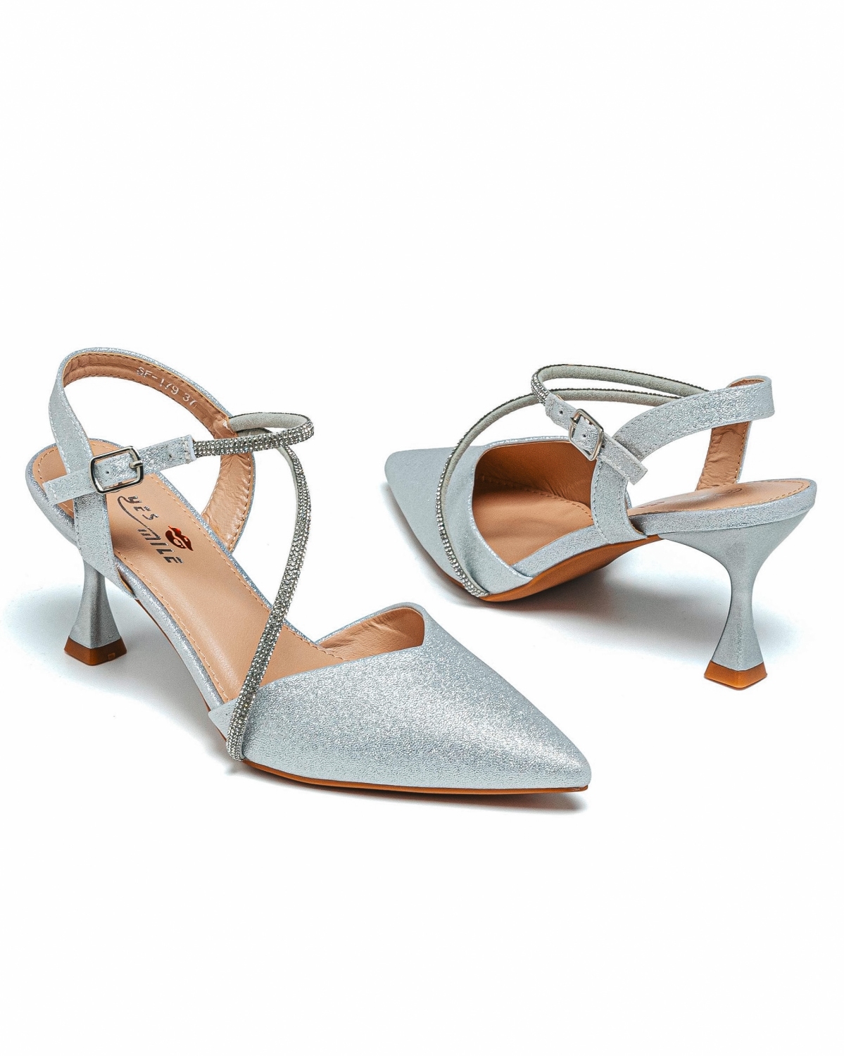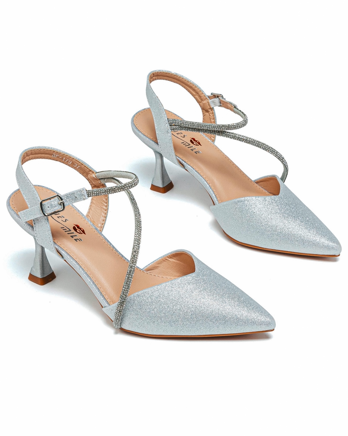 Dámske čierne sandále na nízkom opätku s ozdobnými kamienkami sú elegantným a zároveň pohodlným doplnkom pre každú ženu. Jemný opätok zabezpečuje komfort aj pri dlhšom nosení, vďaka čomu sú ideálne nielen na spoločenské udalosti, ale aj na večerné prechádzky či slávnostné príležitosti. Čierna farba pôsobí nadčasovo a ľahko sa kombinuje s rôznymi outfitmi – od šiat až po elegantné nohavice. Ozdobné kamienky dodávajú sandálom jemný lesk a luxusný detail, ktorý krásne vynikne pri chôdzi a zvýrazní ženský vzhľad. Premyslený strih zabezpečuje dobré držanie chodidla a stabilitu pri chôdzi, zatiaľ čo nízky opätok ponúka ideálnu rovnováhu medzi eleganciou a pohodlím. Tieto sandále sú skvelou voľbou na svadby, oslavy, spoločenské udalosti aj letné večery, keď chcete vyzerať štýlovo a cítiť sa komfortne po celý čas.