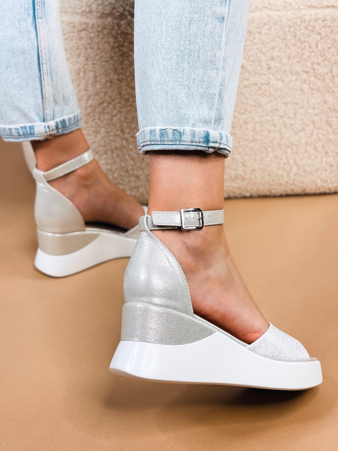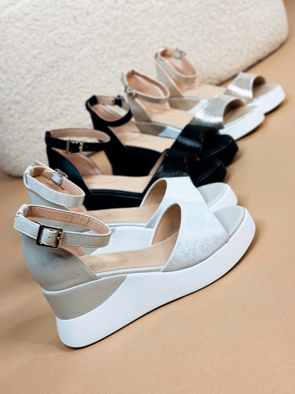 Dámske sandále na 6,5 cm platforme, ktoré sú v štýlovom prevedení. Vďaka platforme budete vyzerať veľmi trendy a určite neostanete bez povšimnutia. Sú veľmi pohodlné a trendy zároveň. Tieto letné sandálky si určite obľúbite a stanú sa neodmysliteľnou súčasťou Vaších outfitov. Sandále, ktoré jednoducho zapnete a môžete vyraziť. Veľkosti sedia presne.