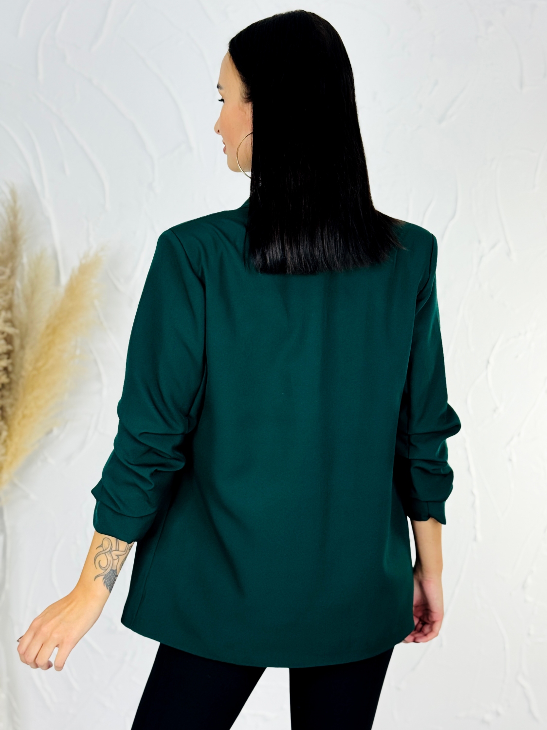 Dámske exkluzívne sako, ktoré je v jednoduchom prevedení a bez zapínania. Sako vhodné do práce aj na rande do mesta. Zaujímavá je aj štruktúra saka, ktorá Vás dostane. Nadčasové a mimoriadne praktické. Vyrobené z kvalitného a pohodlného materiálu. Vrecká na oboch stranách sú falošné. Dámske sako nemusíte nosiť výlučne k sukni či elegantným nohaviciam. Môžete k nemu doladiť aj ležérny outfit s teniskami. Modelka je vysoká 175 cm a oblečenú má veľkosť UNI.