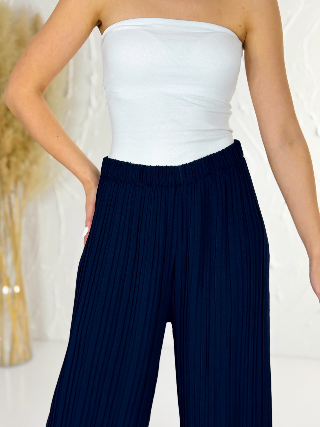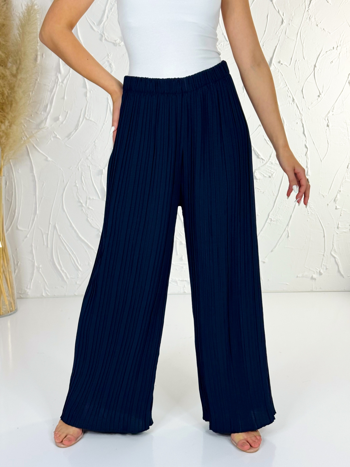 Dámske plisované nohavice s pružným pásom sú navrhnuté tak, aby sadli postave od veľkosti XS až po XL, ide teda o univerzálnu UNI veľkosť, ktorá sa krásne prispôsobí rôznym typom postavy a zároveň poskytne maximálne pohodlie počas celého dňa. Vďaka jemnému plisovaniu pôsobia nohavice elegantne, vzdušne a veľmi žensky, pričom si zachovávajú moderný vzhľad, ktorý sa ľahko kombinuje s rôznymi kúskami vo vašom šatníku. Celková dĺžka 107 cm zabezpečuje, že nohavice krásne predĺžia siluetu a dodajú postave štíhlejší efekt, čo oceníte pri každodennom nosení aj pri špeciálnych príležitostiach. Pružný pás je mimoriadne praktický, netlačí a prispôsobí sa obvodu pásu bez nepríjemného zarezávania, vďaka čomu sa v nohaviciach budete cítiť pohodlne od rána až do večera. Tieto nohavice sú ideálnou voľbou naozaj kamkoľvek – či už sa chystáte do mesta na kávu, na prechádzku, do práce, na dovolenku k moru alebo na večerné posedenie s priateľmi. Stačí ich skombinovať s jednoduchým tričkom pre ležérny vzhľad, alebo s elegantnou blúzkou a doplnkami, ak chcete pôsobiť sofistikovanejšie. Ich univerzálnosť z nich robí kúsok, ktorý si rýchlo zamilujete a budete po ňom siahať znova a znova.
