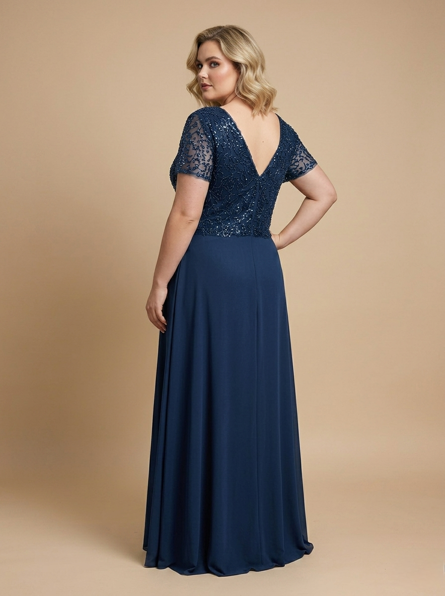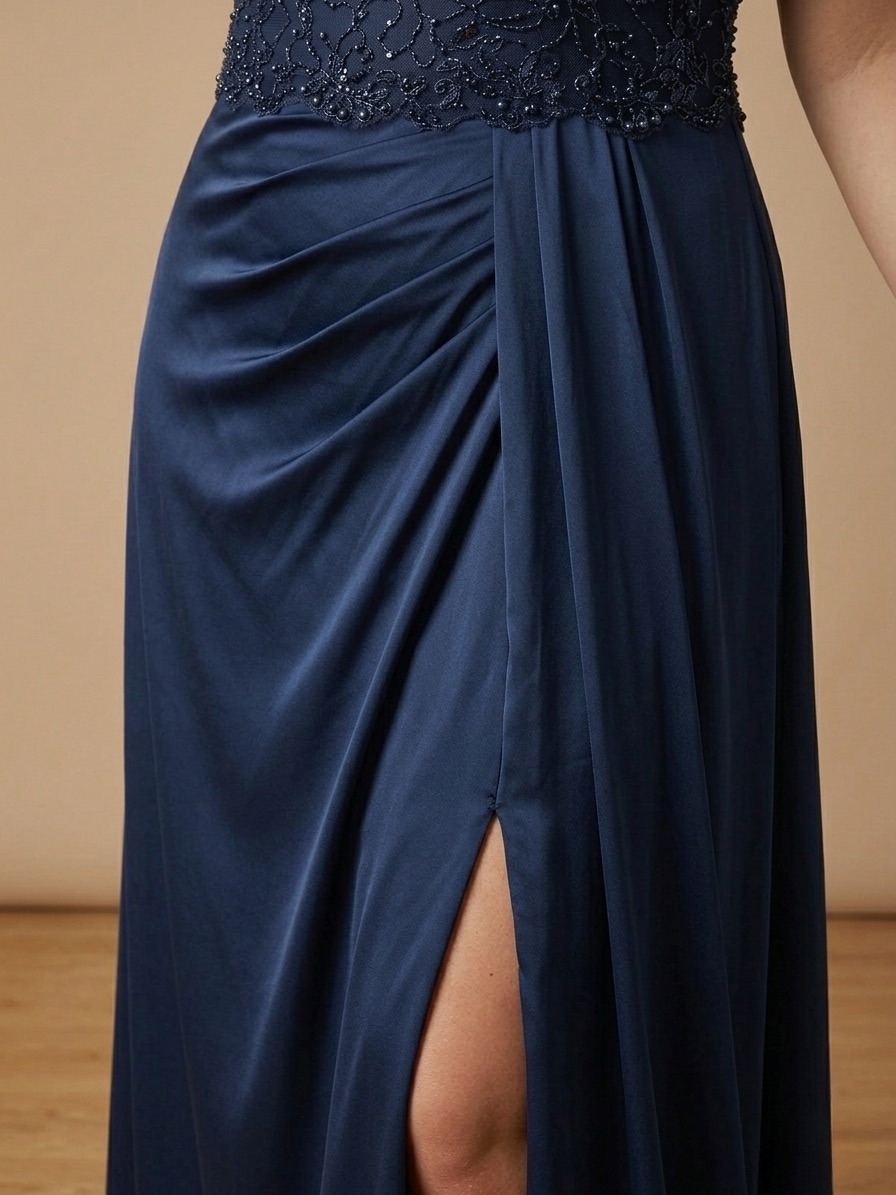 Dámske spoločenské šaty v tmavomodrej farbe predstavujú dokonalú kombináciu elegancie, luxusu a ženského šarmu. Tento model je navrhnutý tak, aby upútal pozornosť už na prvý pohľad, pričom si zachováva vkusný a sofistikovaný vzhľad vhodný na rôzne spoločenské príležitosti. Predná časť šiat je zdobená jemnými kamienkami, ktoré dodávajú modelu nádych výnimočnosti a luxusu. Pri dopade svetla sa krásne trblietajú a vytvárajú efekt decentného lesku, ktorý zvýrazňuje hornú časť postavy a priťahuje pohľady bez toho, aby pôsobil prehnane. Kamienky sú precízne aplikované, aby ladili s celkovým dizajnom a zabezpečili elegantný dojem. Sukňa je nazberaná, čo dodáva šatám objem, ľahkosť a romantický vzhľad. Tento strih zároveň pomáha vyvážiť proporcie postavy a poskytuje pohodlie pri pohybe. Dominantným prvkom je aj rozparok, ktorý sa nachádza v prednej časti sukne. Pôsobí zvodne, no stále vkusne – pri chôdzi jemne odhaľuje nohy a dodáva celkovému vzhľadu dynamiku a ženskosť.