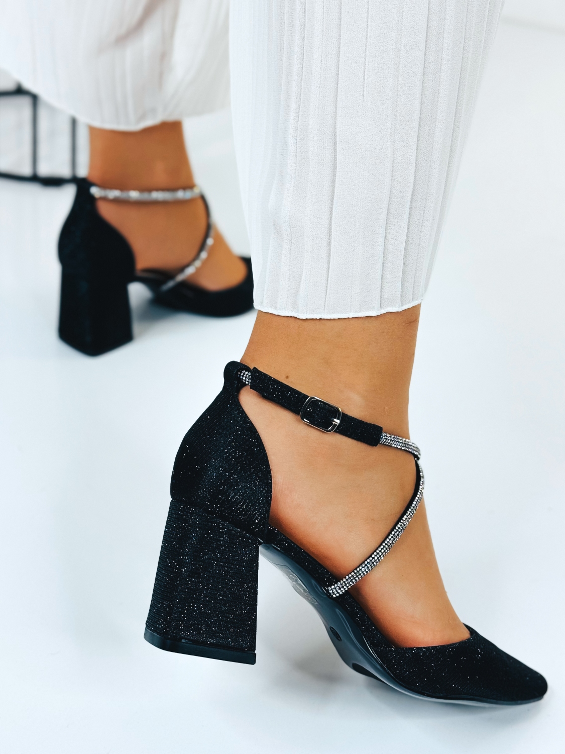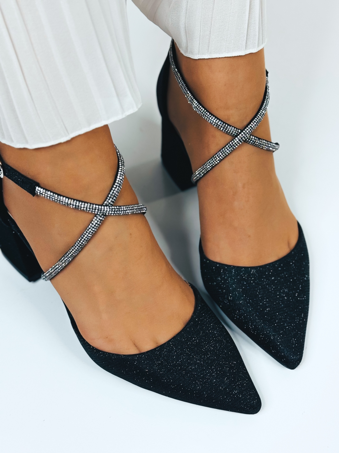 Dámske čierne trblietavé sandále sú dokonalým doplnkom pre ženy, ktoré chcú dodať svojmu outfitu výrazný a luxusný vzhľad. Táto farba pôsobí elegantne, žensky a okamžite upúta pozornosť, zatiaľ čo trblietavý povrch krásne odráža svetlo pri každom kroku. Sandále sú navrhnuté s dôrazom na štýl aj pohodlie. Premyslený strih zabezpečuje dobré držanie chodidla a stabilitu pri chôdzi, vďaka čomu sú vhodné aj na dlhšie nosenie. Jemné línie a elegantné spracovanie robia z tohto modelu nadčasový kúsok, ktorý ľahko skombinujete so spoločenskými šatami, letnými outfitmi aj slávnostnými kompletmi. Dámske zlaté trblietavé sandále sú ideálnou voľbou na svadby, oslavy, plesy, večierky či letné večerné udalosti, kde chcete pôsobiť výnimočne a sebavedomo. Sú stvorené pre chvíle, keď chcete zažiariť a dodať svojmu vzhľadu ten správny lesk.