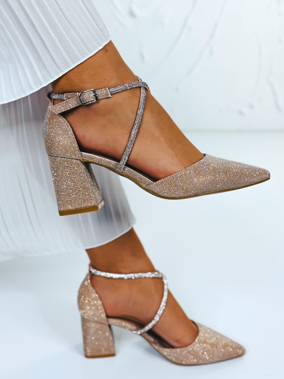 Dámske zlaté trblietavé sandále sú dokonalým doplnkom pre ženy, ktoré chcú dodať svojmu outfitu výrazný a luxusný vzhľad. Zlatá farba pôsobí elegantne, žensky a okamžite upúta pozornosť, zatiaľ čo trblietavý povrch krásne odráža svetlo pri každom kroku. Sandále sú navrhnuté s dôrazom na štýl aj pohodlie. Premyslený strih zabezpečuje dobré držanie chodidla a stabilitu pri chôdzi, vďaka čomu sú vhodné aj na dlhšie nosenie. Jemné línie a elegantné spracovanie robia z tohto modelu nadčasový kúsok, ktorý ľahko skombinujete so spoločenskými šatami, letnými outfitmi aj slávnostnými kompletmi. Dámske zlaté trblietavé sandále sú ideálnou voľbou na svadby, oslavy, plesy, večierky či letné večerné udalosti, kde chcete pôsobiť výnimočne a sebavedomo. Sú stvorené pre chvíle, keď chcete zažiariť a dodať svojmu vzhľadu ten správny lesk.