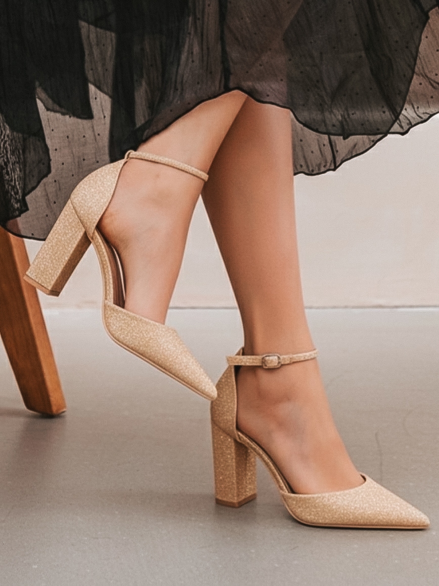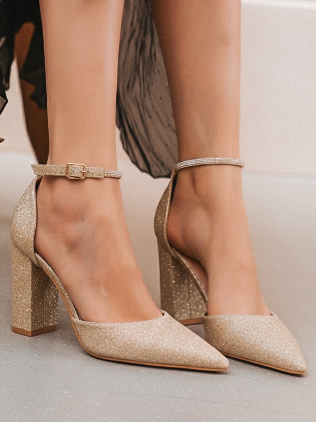 Dámske exkluzívne sandále, ktoré sú v trblietavom prevedení na hrubom opätku. Zapínajú sa okolo členku a sú veĺmi pohodlné pri nosení. V tomto modely budete vyzerať veľmi trendy a určite neostanete bez povšimnutia. Sú pohodlné a vkusné. Zladíte k šatám na spoločenskú udalosť. Sandále, ktoré predstavujú štýl. Veľkosti sedia presne.