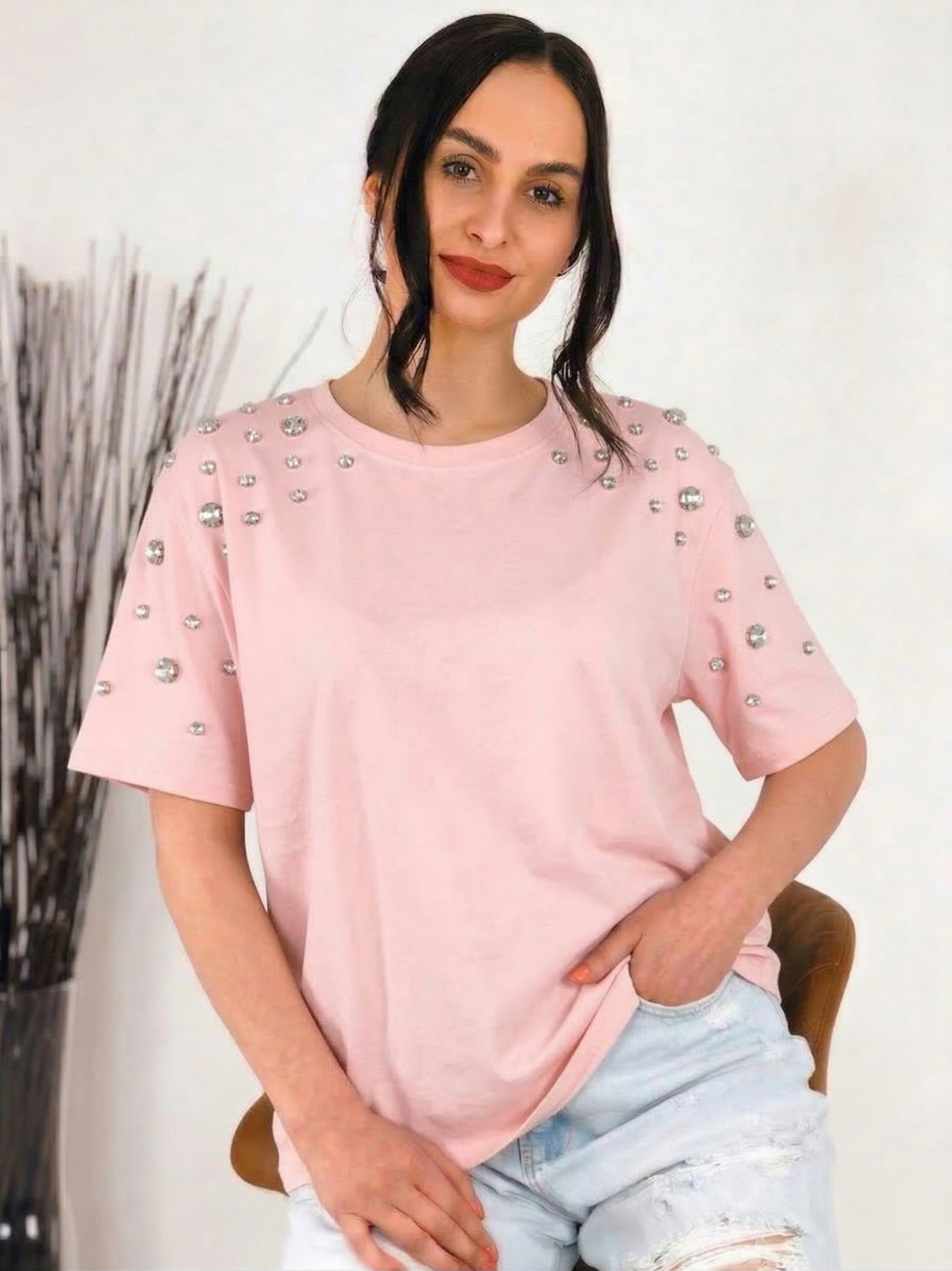 Hľadáte kúsok, ktorý v sebe spája absolútne pohodlie a štipku rebelstva? Toto ružové oversized tričko je presne to, čo váš šatník potrebuje. Nie je to len obyčajný základný kúsok – vďaka jedinečnému zdobeniu posúva hranice bežnej street-wear módy.