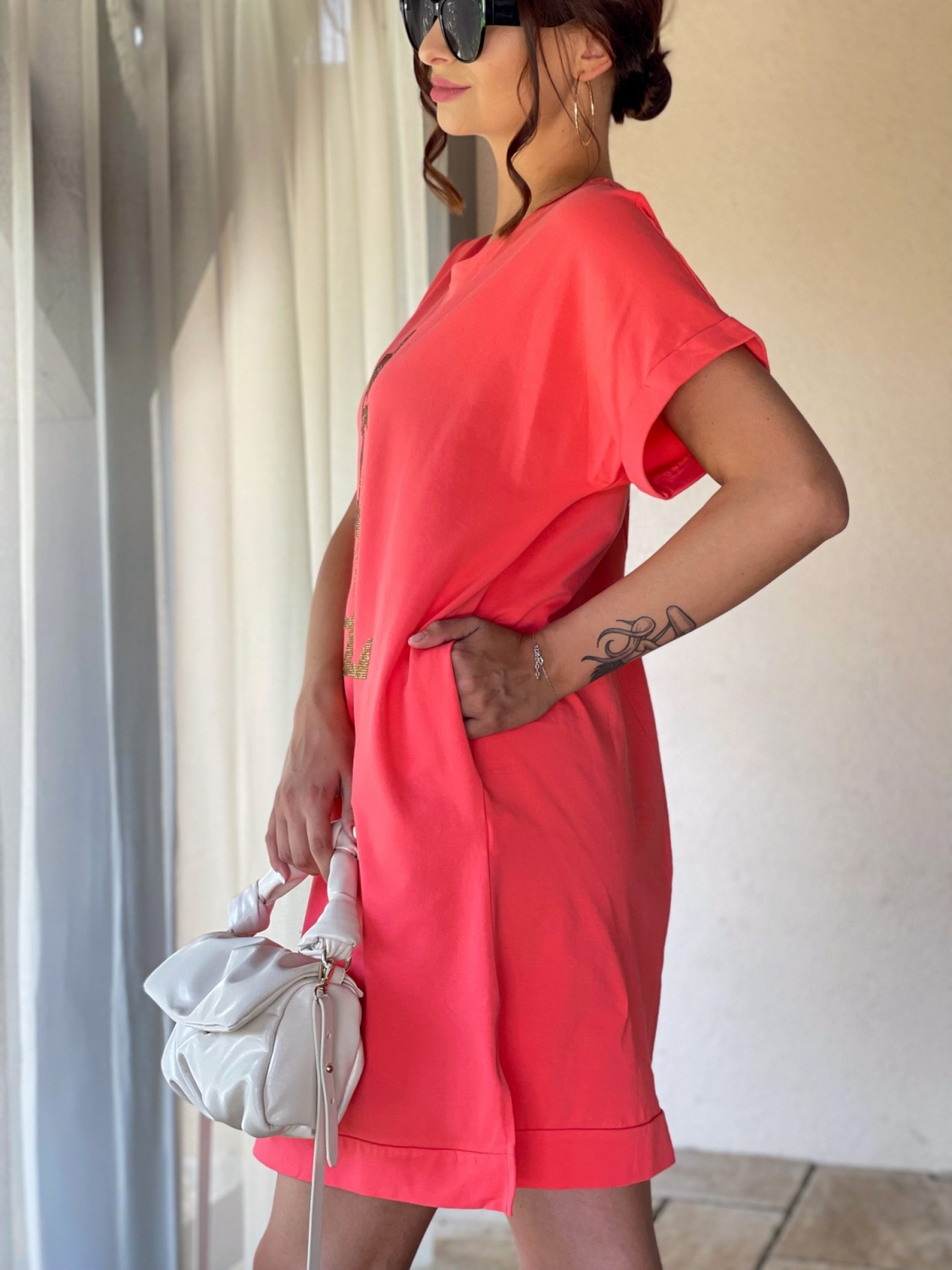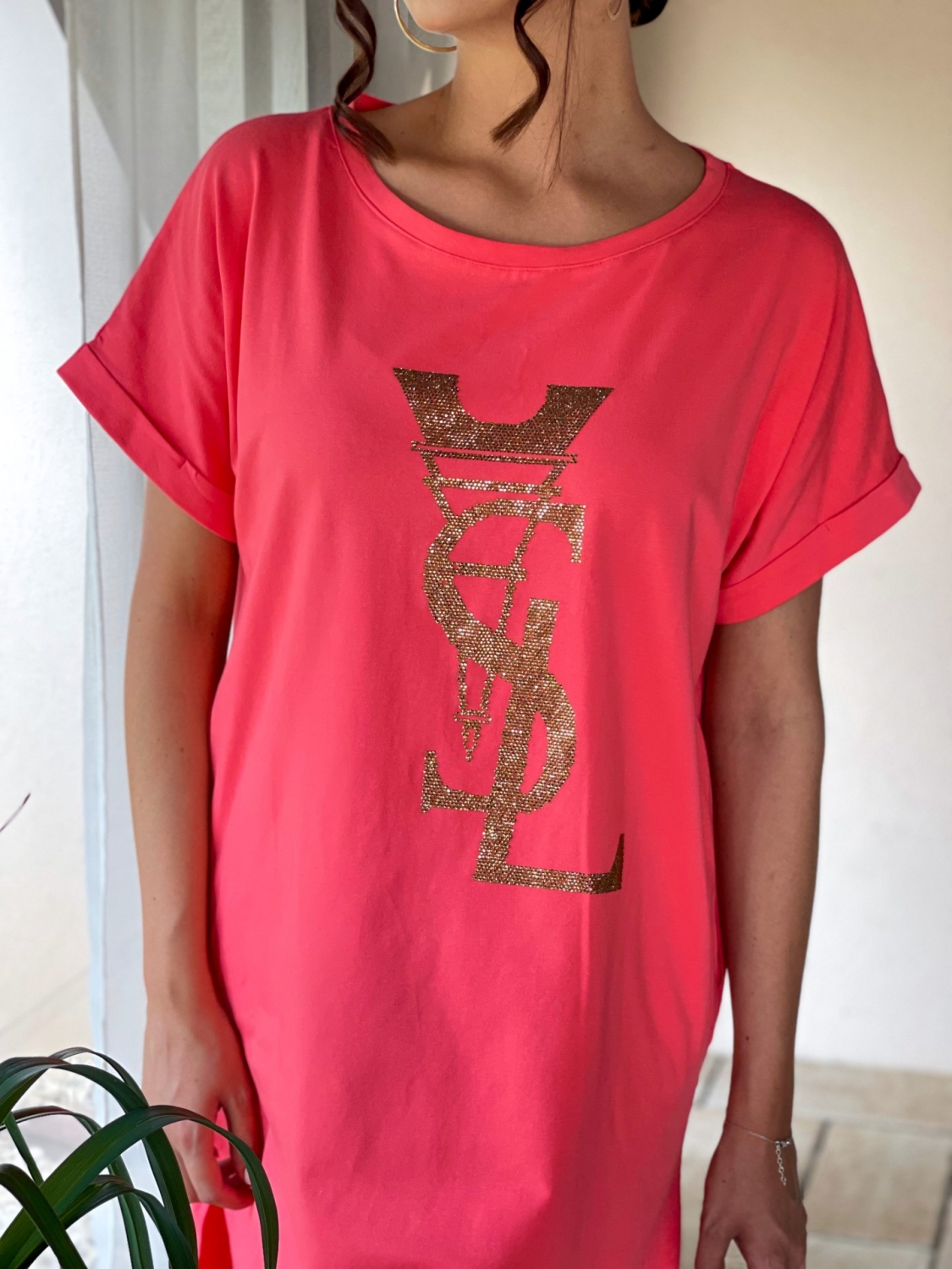 Dámske tričkové šaty s razporkom a nápisom YSL, ktoré využijete na každý deň a budete sa v nich cítiť maximálne pohodlne a trendy. Šaty sú z príjemného a kvalitného materiálu. Oblečte si ich k teniskám alebo šľapkám a vyrazte von. Pri týchto tričkových šatách platí, že vyzerať a cítiť sa budete úžasne iba v pohodlnom a štýlovom outfite. Modelka je vysoká 175 cm a má oblečenú veľkosť UNI.