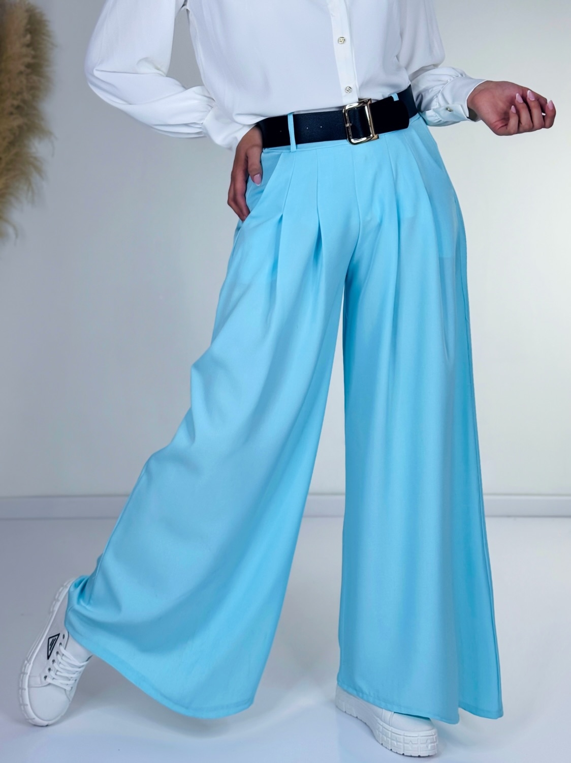 Dámske široké nohavice s vysokým pásom a opaskom, vytvárajú nádherný efekt štíhleho pásu a zároveň zaručujú maximálny komfort. Elastický pás na nohaviciach umožňuje ich prispôsobenie podľa potreby, čím poskytuje perfektné pohodlie po celý deň. Tieto nohavice nielen skvele sedia, ale aj nádherne lichotia postave. Vrecká na oboch stranách pridávajú praktický aj štýlový detail. S univerzálnou veľkosťou (UNI) sú vhodné pre rôzne typy postáv a sadnú na veľkoti S, M, L aj XL. Stačí si obuť tenisky, alebo lodičky, či mokasíny, pridať pár módnych doplnkov a máte outfit, ktorý je ideálny na každú príležitosť. Oblečte sa do pohodlia a štýlu a nechajte sa očariť týmto trendy kúskom. Modelka má výšku 175 cm a má oblečenú veľkosť UNI. Doručenie ihneď!