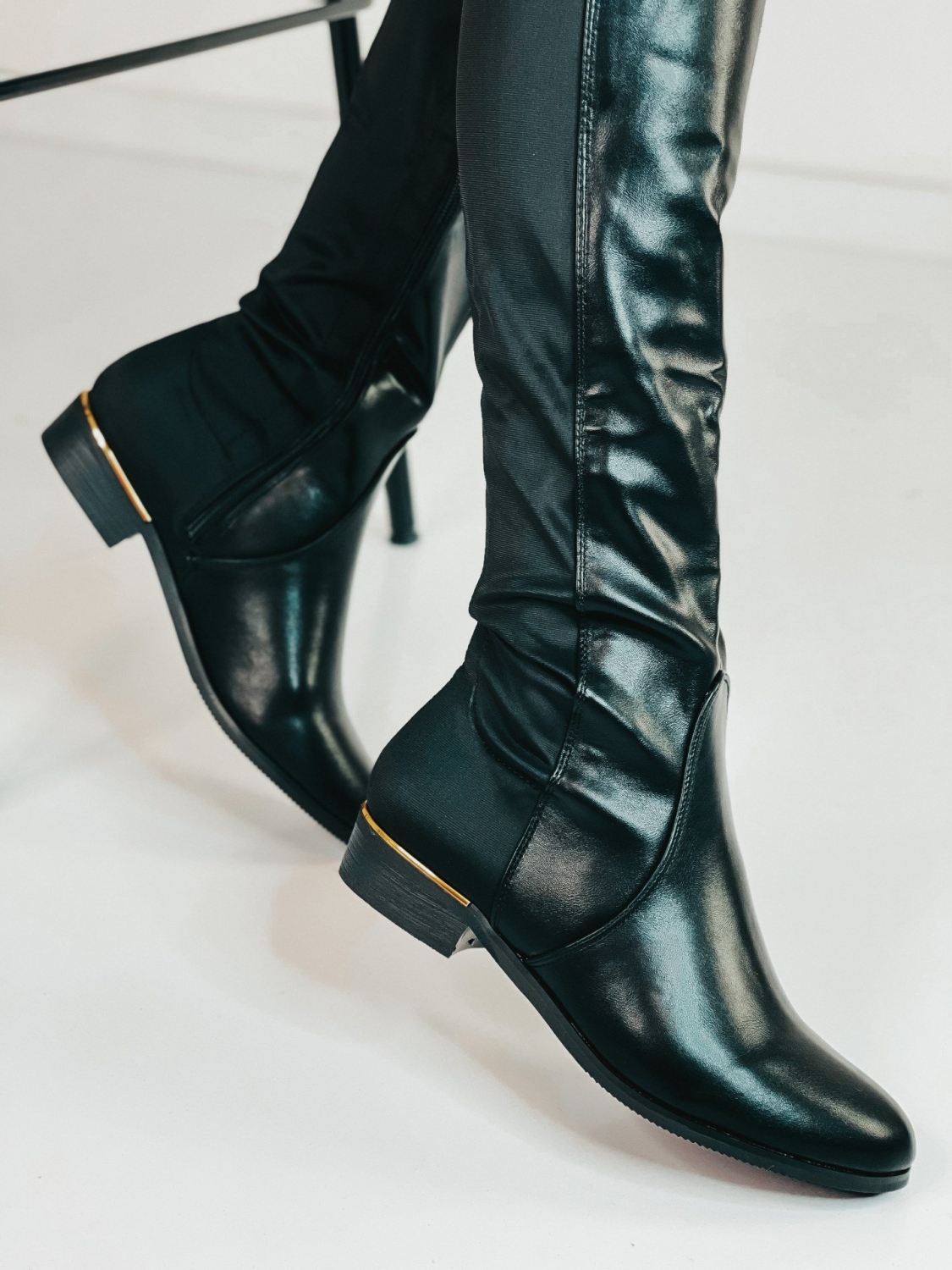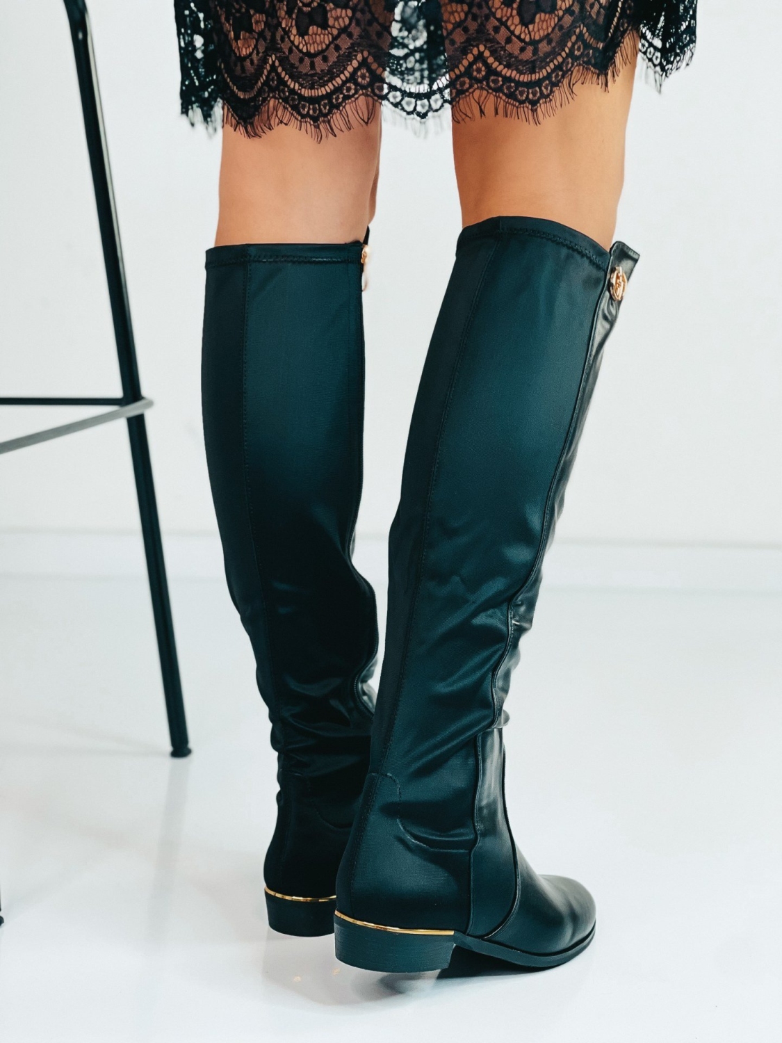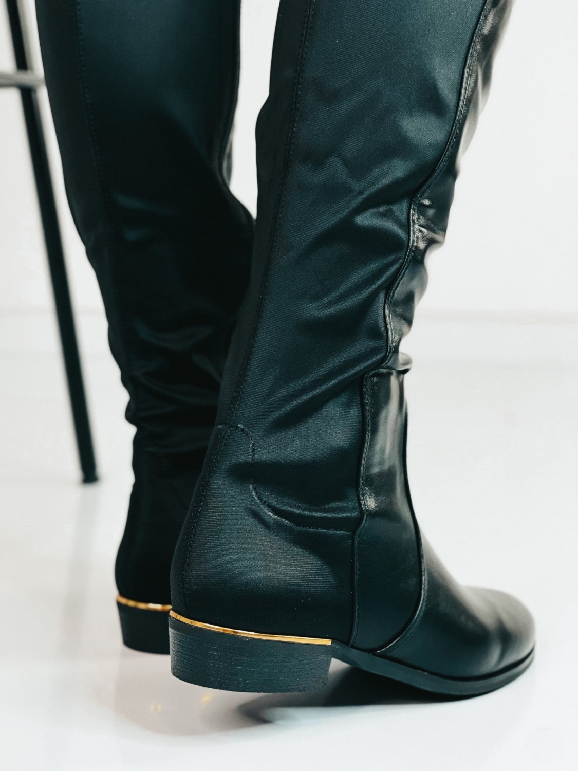 Pohodlný kúsok matných dámskych vysokých čižiem pod kolená. Čižmy sú v nádhernej čiernej farbe. Vďaka matnému materiálu budete vyzerať veľmi štýlovo. Čižmy majú hrubý opätok. Materiál je mierne elastický, preto sa prispôsobia každej nôžke. Môžete si ich obliecť do práce, na prechádzky alebo len tak do mesta na kávu. Môžete v nich vyraziť kamkoľvek. Čižmy majú mierne zateplené vnútro. Zapínanie zboku na zips. V tomto štýlovom kúsku určite neostanete bez povšimnutia. Trendový model na každodenné nosenie. Veľkosti sedia presne.