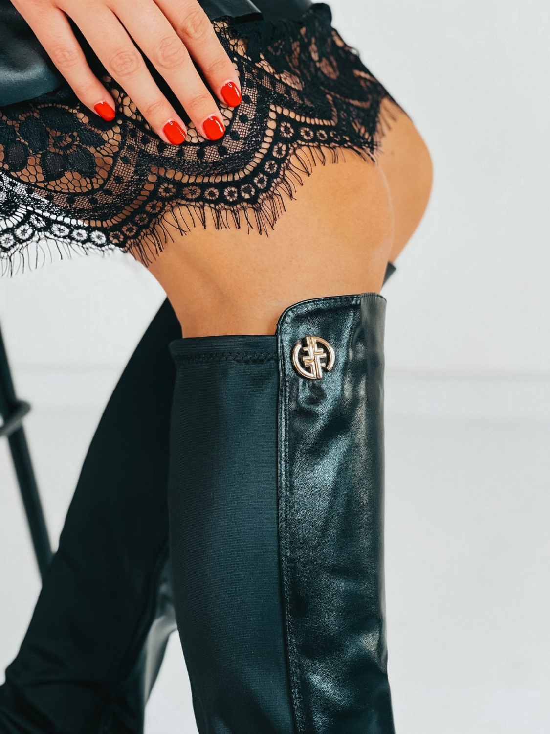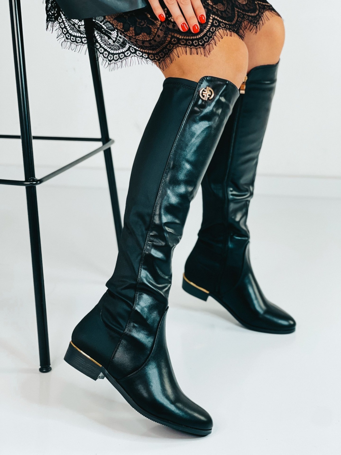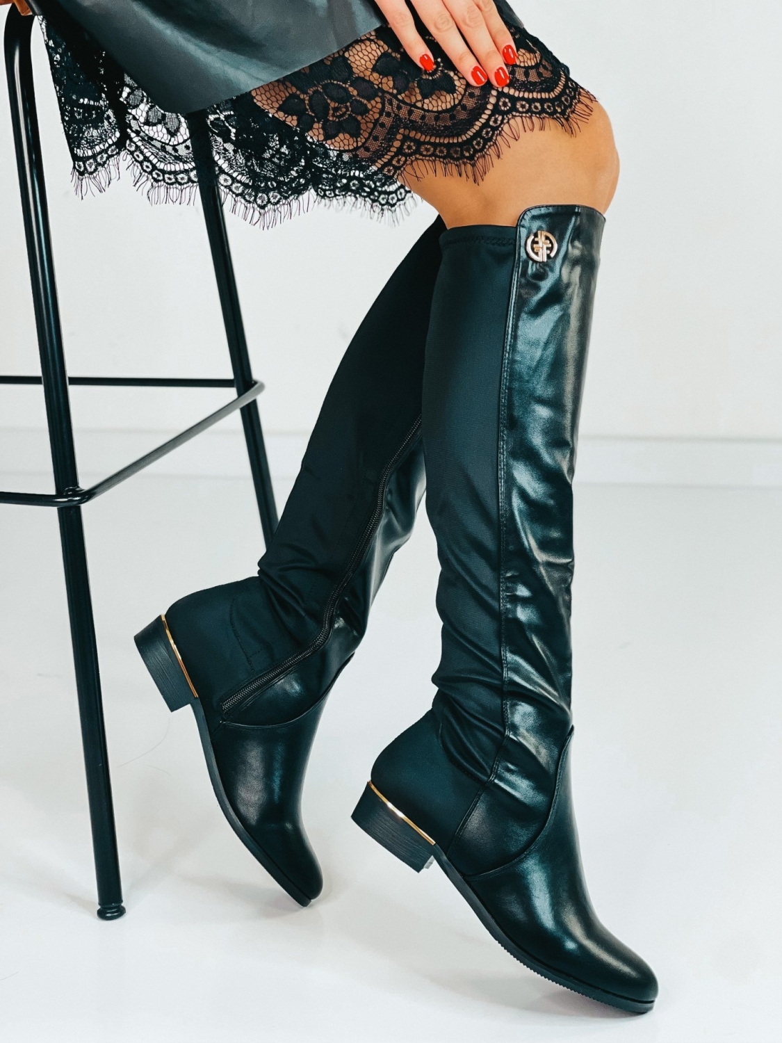Pohodlný kúsok matných dámskych vysokých čižiem pod kolená. Čižmy sú v nádhernej čiernej farbe. Vďaka matnému materiálu budete vyzerať veľmi štýlovo. Čižmy majú hrubý opätok. Materiál je mierne elastický, preto sa prispôsobia každej nôžke. Môžete si ich obliecť do práce, na prechádzky alebo len tak do mesta na kávu. Môžete v nich vyraziť kamkoľvek. Čižmy majú mierne zateplené vnútro. Zapínanie zboku na zips. V tomto štýlovom kúsku určite neostanete bez povšimnutia. Trendový model na každodenné nosenie. Veľkosti sedia presne.