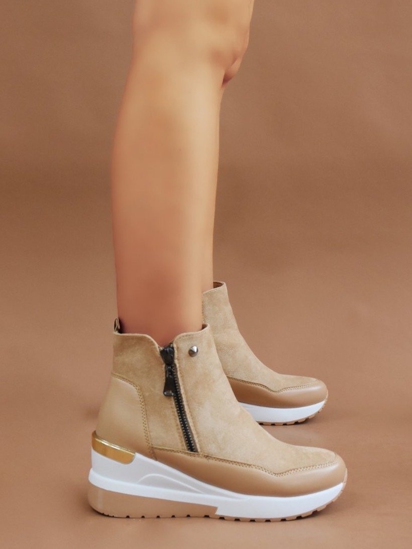 Dámske vysoké zateplené tenisky na platforme. Tenisky už dávno nie sú len účelová obuv. V tomto roku doslova kraľujú. Tenisky, ktoré sú na platforme, sú inšpirované svetoznámou značkou. Kúsok dámskych tenisiek vhodných na každodenné nosenie. Obúvanie je jednoduché. tenisky sú prepracované do detailov, a preto Vám dodajú do Vášho outfitu štýlovosť. Môžete ich kombinovať nielen so športovým oblečením, ale aj ku šatám. Zapínanie z boku na zips. Tenisky už dlho neplnia iba úlohu ležérnej obuvi na voľný čas. Stali sa súčasťou špecifického štýlu. Jednoznačne #musthave kúsok na túto sezónu. Veľkosti sedia presne.