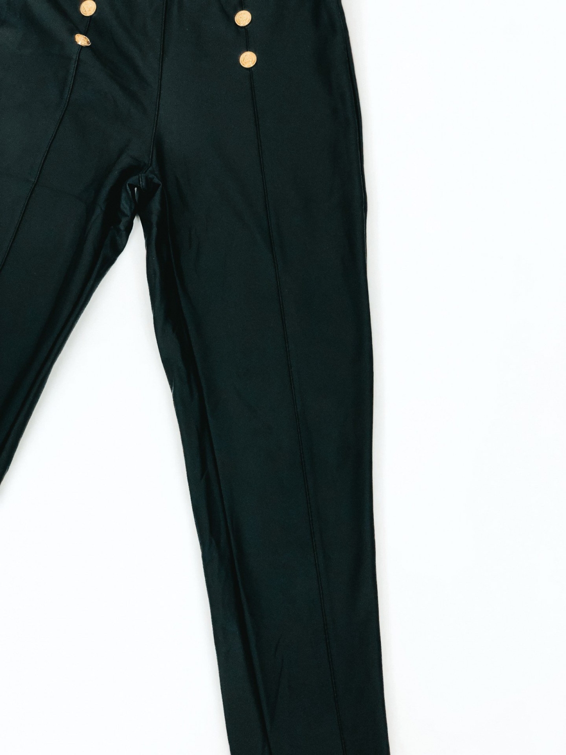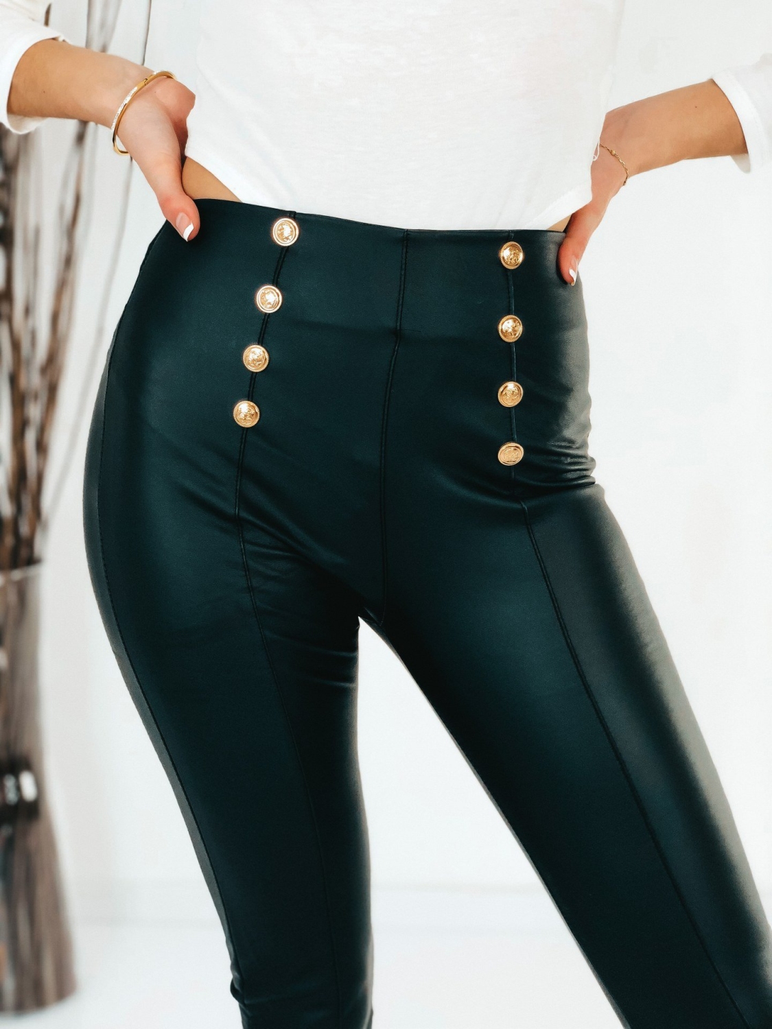 HIT TEJTO SEZÓNY. Dámske koženkové zateplené čierne matné legíny, ktoré sú z elastického a príjemného materiálu. Legíny sú doplnené gombíkmi vo svojej prednej časti. Prispôsobia sa každej postave. Kúsok, ktorý skombinuješ so všetkým. Modelka je vysoká 175 cm a oblečenú má veľkosť M.