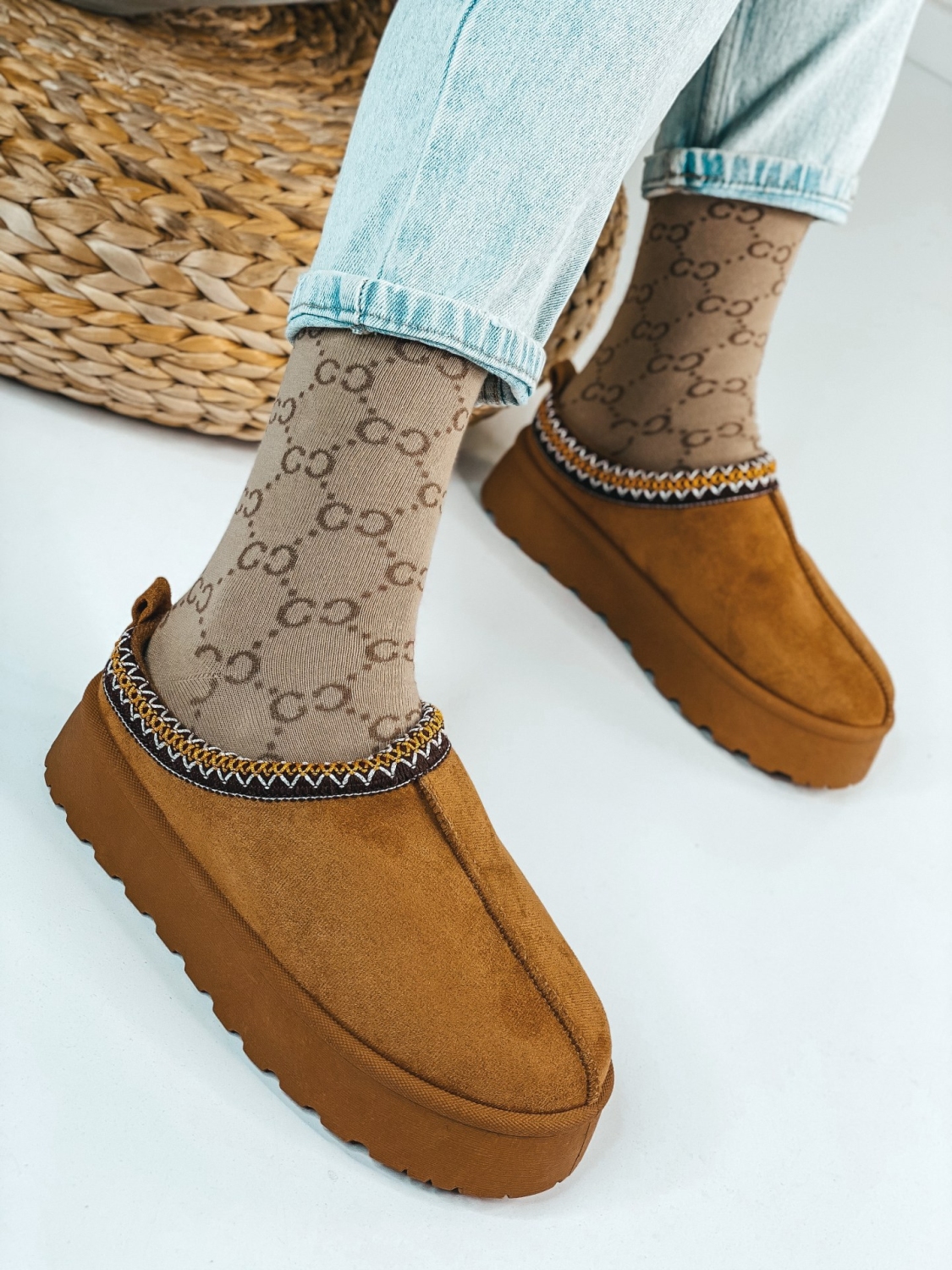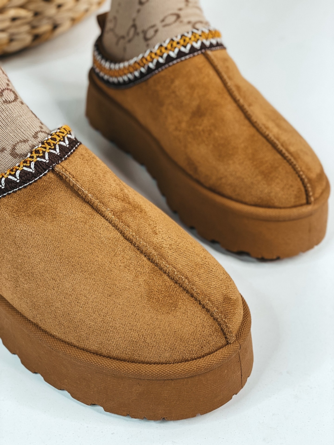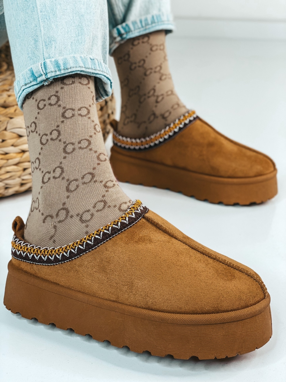 Členkové zateplené kotníkové čižmy/papuče s hrubou platformou a zatepleným vnútrom. Vrchný materiál je semiš. Členkové čižmy/papuče sú alternatívou na chladnejšie dni. Dokážu nás ochrániť pred chladom a hodia sa k rôznym štýlom. Môžete ich nosiť k džínom. Čižmy/papuče, ktoré majú zateplené vnútro, sa stanú Vašim obľúbeným kúskom pre toto zimné obdobie. Unikátne strihom, zaujímavý je strih a celkové prevedenie. Tento štýlový kúsok je zaručene #bestseller pre túto sezónu a určite s ním neostanete bez povšimnutia.
