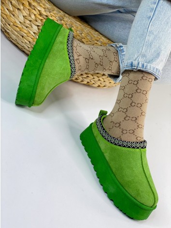 Členkové zateplené kotníkové čižmy/papuče s hrubou platformou a zatepleným vnútrom. Vrchný materiál je semiš. Členkové čižmy/papuče sú alternatívou na chladnejšie dni. Dokážu nás ochrániť pred chladom a hodia sa k rôznym štýlom. Môžete ich nosiť k džínom. Čižmy/papuče, ktoré majú zateplené vnútro, sa stanú Vašim obľúbeným kúskom pre toto zimné obdobie. Unikátne strihom, zaujímavý je strih a celkové prevedenie. Tento štýlový kúsok je zaručene #bestseller pre túto sezónu a určite s ním neostanete bez povšimnutia.