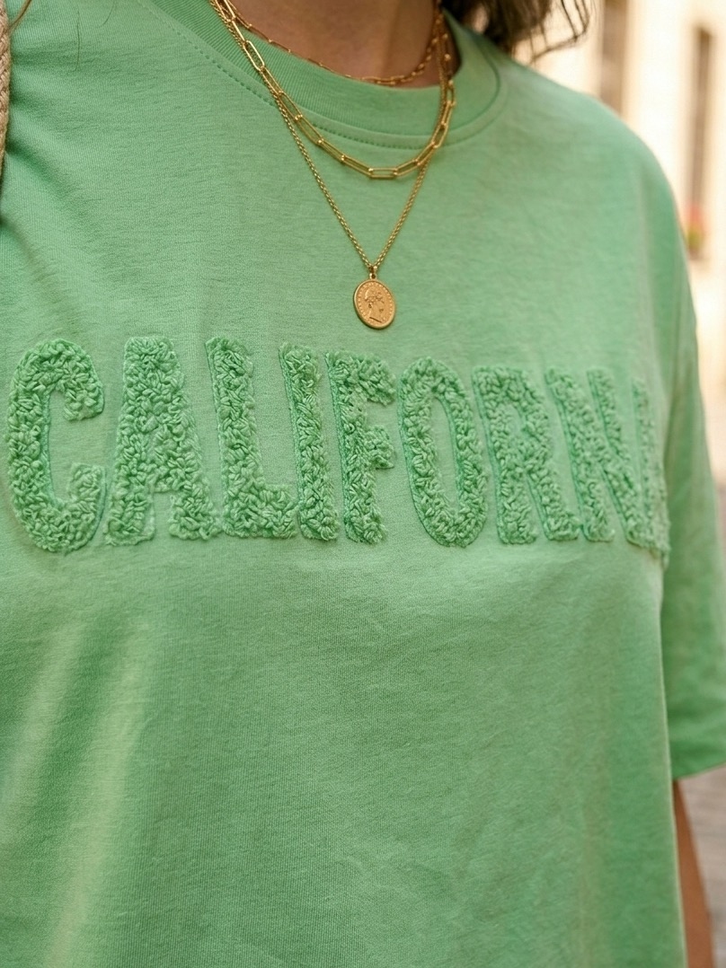 Dámske bavlnené tričko s krátkym rukávom v modernom oversize strihu je ideálnou voľbou pre ženy, ktoré milujú pohodlie, voľnosť pohybu a nadčasový štýl. Trendový voľnejší strih krásne sedí na postave, pôsobí ležérne a zároveň štýlovo, vďaka čomu sa tričko ľahko kombinuje s rôznymi outfitmi na každý deň. Predná časť je doplnená výrazným nápisom California, ktorý dodáva tričku svieži a uvoľnený vibe. Tričko je vyrobené z kvalitného bavlneného materiálu, ktorý je príjemný na dotyk, mäkký, priedušný a pohodlný počas celého dňa. Bavlna je obľúbená pre svoje prirodzené vlastnosti, dobre sa nosí, nedráždi pokožku a je vhodná aj na každodenné používanie. Krátky rukáv zabezpečuje komfort najmä počas teplejších dní, no tričko sa výborne hodí aj pod mikinu, bundu alebo košeľu v chladnejšom období.Oversize strih je momentálne veľmi obľúbený, pretože poskytuje maximálne pohodlie a zároveň pôsobí moderne a štýlovo. Tričko môžete nosiť k rifliam, legínam, šortkám či sukni a vytvoriť tak športový, mestský alebo casual outfit podľa vlastného štýlu. Je vhodné na bežné nosenie, voľný čas, nákupy, cestovanie aj oddych.