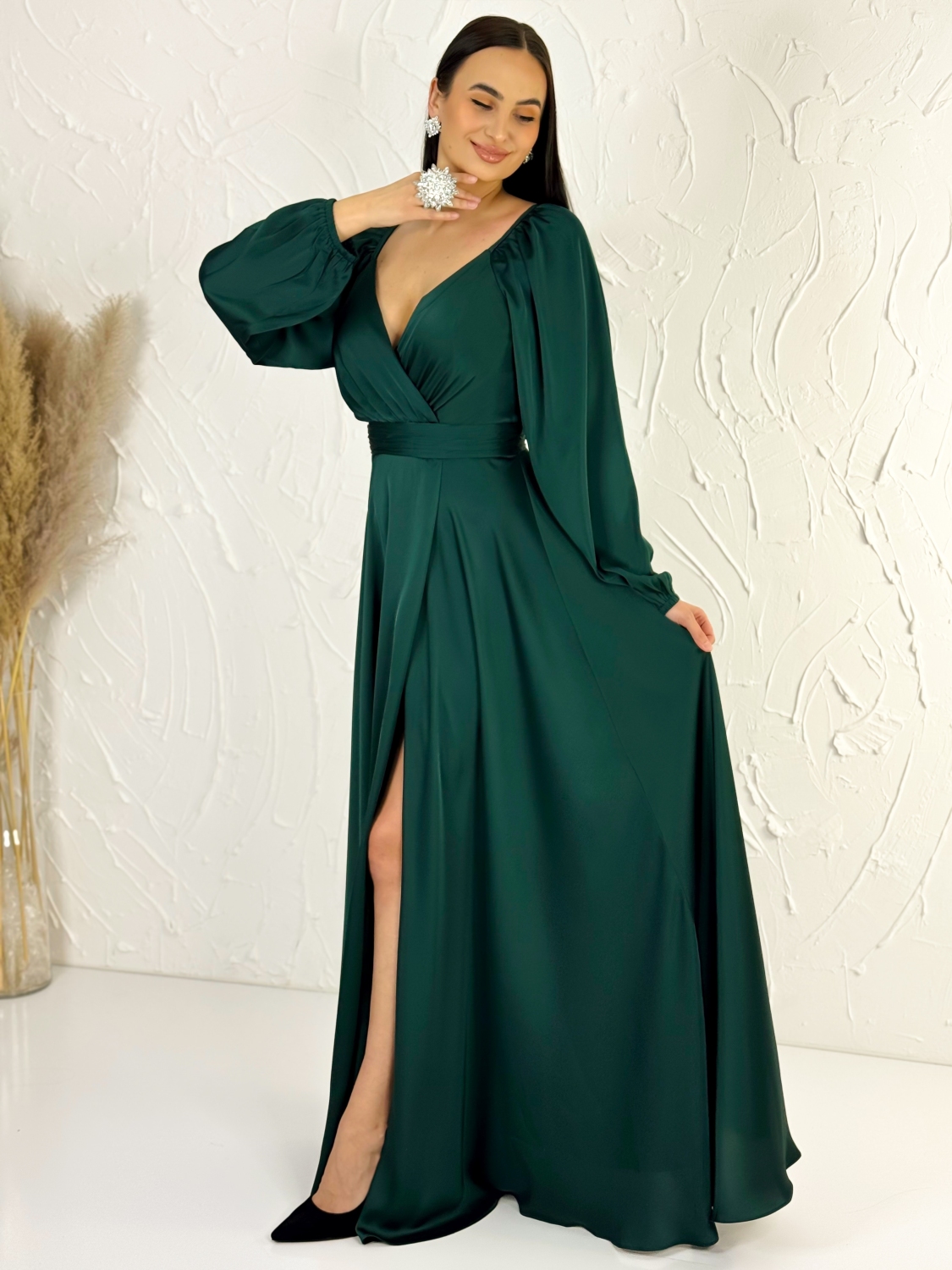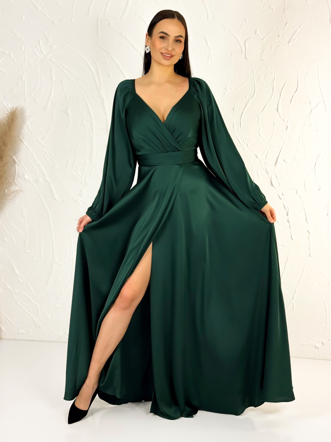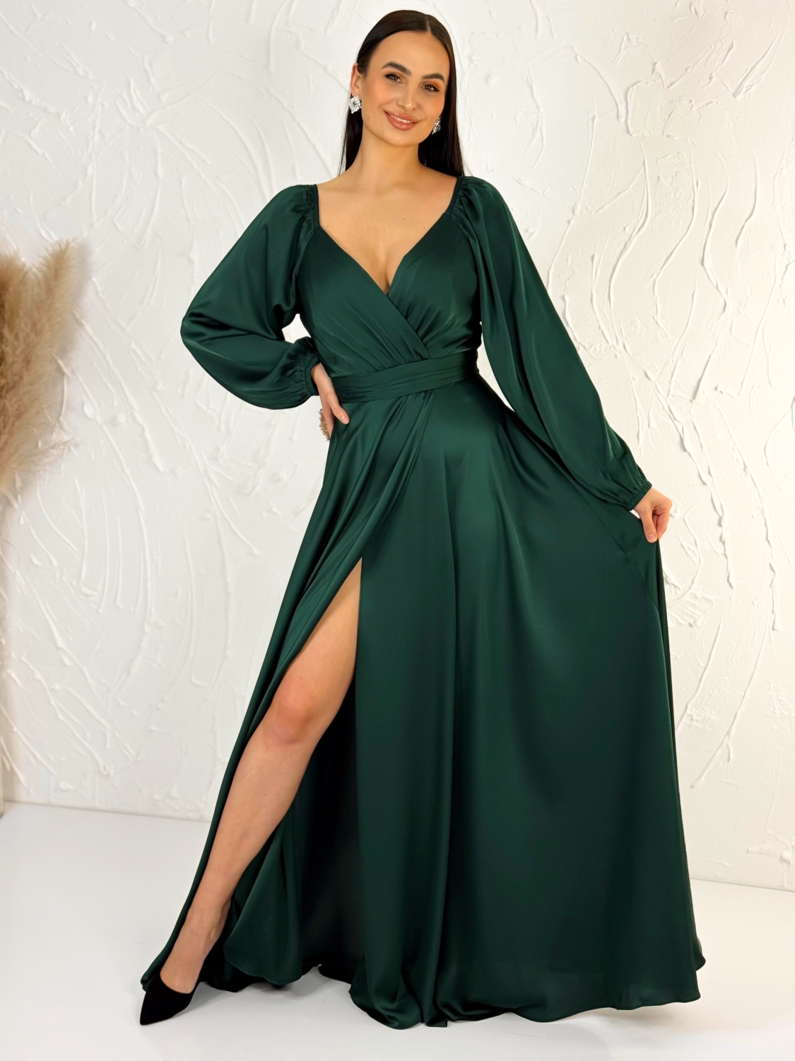 Dámske dlhé saténové spoločenské šaty s rozparkom sú navrhnuté tak, aby zvýraznili ženské krivky, poskytli maximálny komfort a dodali sebavedomie každej žene s plnšími tvarmi. Tento model spája nadčasovú eleganciu so zmyselnými detailmi a je ideálnou voľbou na plesy, svadby, spoločenské večery, stužkové, oslavy či iné výnimočné príležitosti, kde chcete pôsobiť noblesne a zároveň sa cítiť pohodlne. Jemný saténový materiál má luxusný lesk, krásne splýva po postave a opticky ju zoštíhľuje. Premyslený strih je prispôsobený potrebám moletiek – šaty elegantne obopnú krivky, netlačia a zároveň vytvárajú vyváženú a ženskú siluetu. Dlhá sukňa s rozparkom dodáva modelu šmrnc a zmyselnosť, zároveň umožňuje pohodlný pohyb a ľahkosť pri chôdzi či tanci. Zapínanie na zips vzadu je diskrétne, praktické a zabezpečuje jednoduché obliekanie bez narušenia čistého dizajnu šiat. Vrchná časť je navrhnutá tak, aby poskytovala dostatočnú oporu a komfort aj pri dlhšom nosení, vďaka čomu sa budete cítiť sebavedomo počas celého večera.