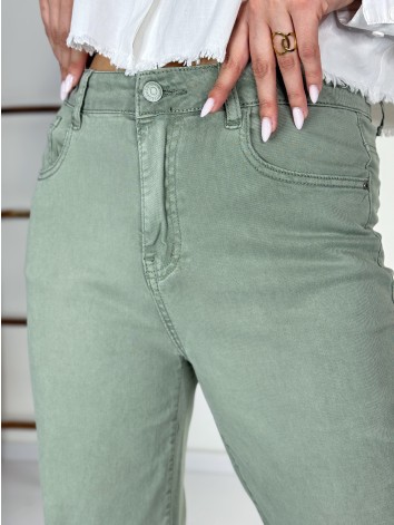 Dámske zelené široké rifle. Tieto štýlové dámske rifle sú ideálnou voľbou pre ženy, ktoré chcú spojiť pohodlie s eleganciou. Sú vyrobené z kvalitného a pružného denimu, ktorý sa dokonale prispôsobí postave a zabezpečí maximálny komfort počas celodenného nosenia. Rifle majú klasický strih s vysokým pásom, ktorý lichotí ženskej postave a vytvára krásnu siluetu. Táto farba riflí je ľahko kombinovateľná s rôznymi kúskami v šatníku – skvele sa hodia k elegantným blúzkam, ležérnym tričkám aj športovým mikinám. Nohavice dodávajú celkovému dizajnu moderný a originálny vzhľad, čím sa tieto rifle stanú neoddeliteľnou súčasťou každodenných aj špeciálnych outfitov. Sú vybavené praktickými vreckami vpredu aj vzadu a zapínajú sa na zips a gombík. Ich precízne prepracovanie zabezpečuje dlhú životnosť a odolnosť aj pri častom nosení. Tieto rifle sú perfektnou voľbou pre každú ženu, ktorá chce vyzerať štýlovo a cítiť sa pohodlne zároveň!