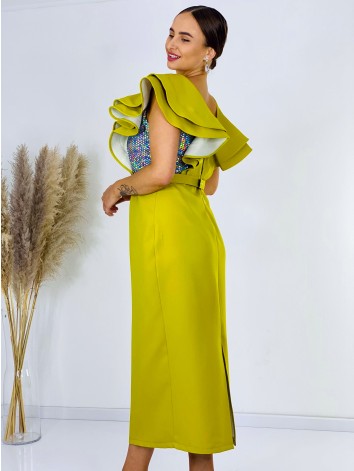 Exkluzívne spoločenské šaty pre moletky s opaskom a s flitrami vo vrchnej časti. Opasok vo farbe šiat sa zapína vazdu na cvok. Šaty sú v luxusnom strihu a TOP dĺžke. Šaty v ktorých zažiari každá dáma. Štýlový kúsok z našej ponuky, ktorý očarí každú z Vás a samozrejme aj ostatných okolo Vás. Vhodné sú na rôzne spoločenské udalosti ako je svadba či oslava. Doplnené sú okruhlým výstrihom. Šaty sa zapínajú vzadu na zips. Šaty sú mierne elastické. Šaty sa vďaka strihu skvelo prispôsobia postave. Modelka meria 175 cm a má oblečenú veľkosť 40.