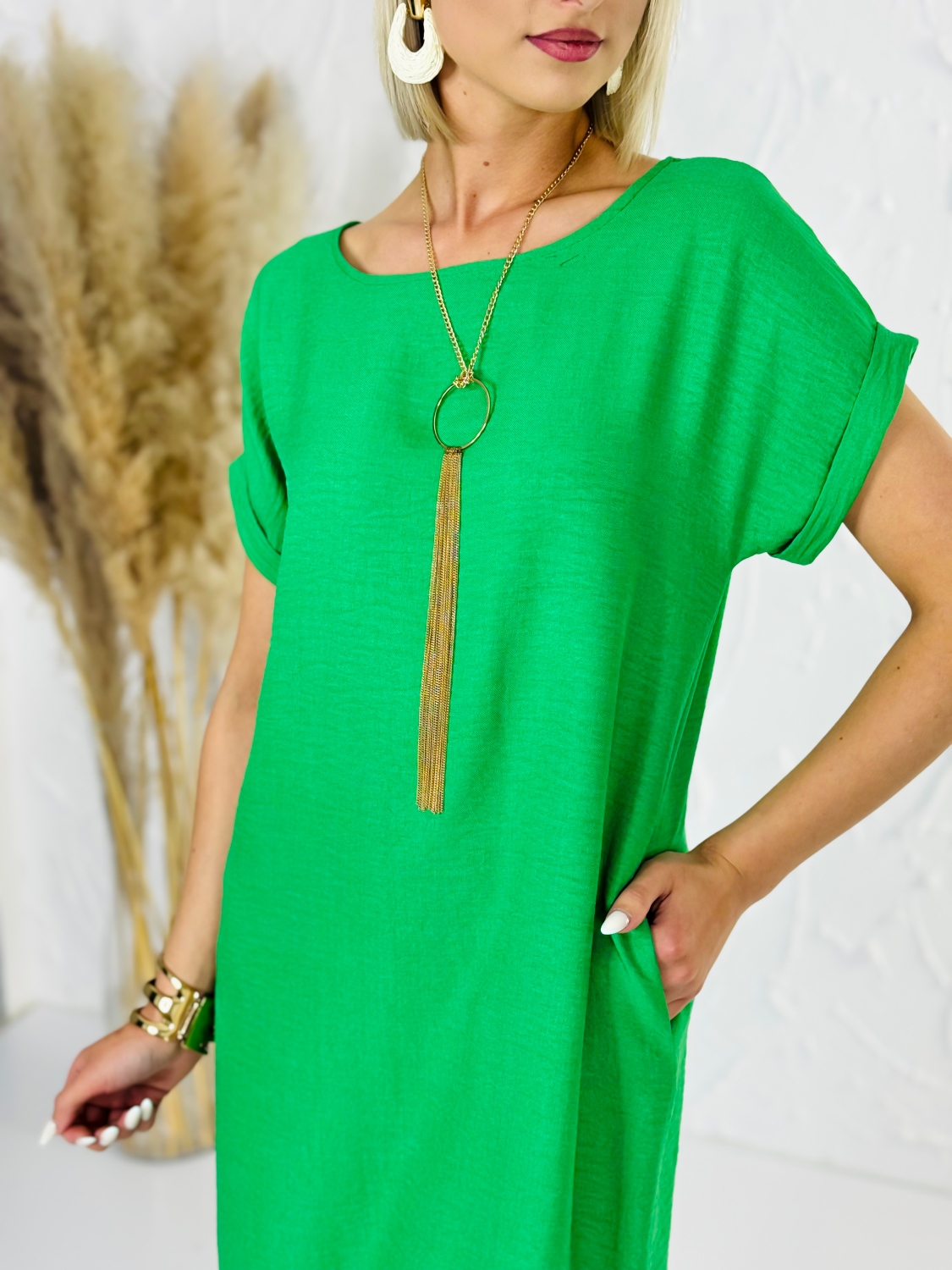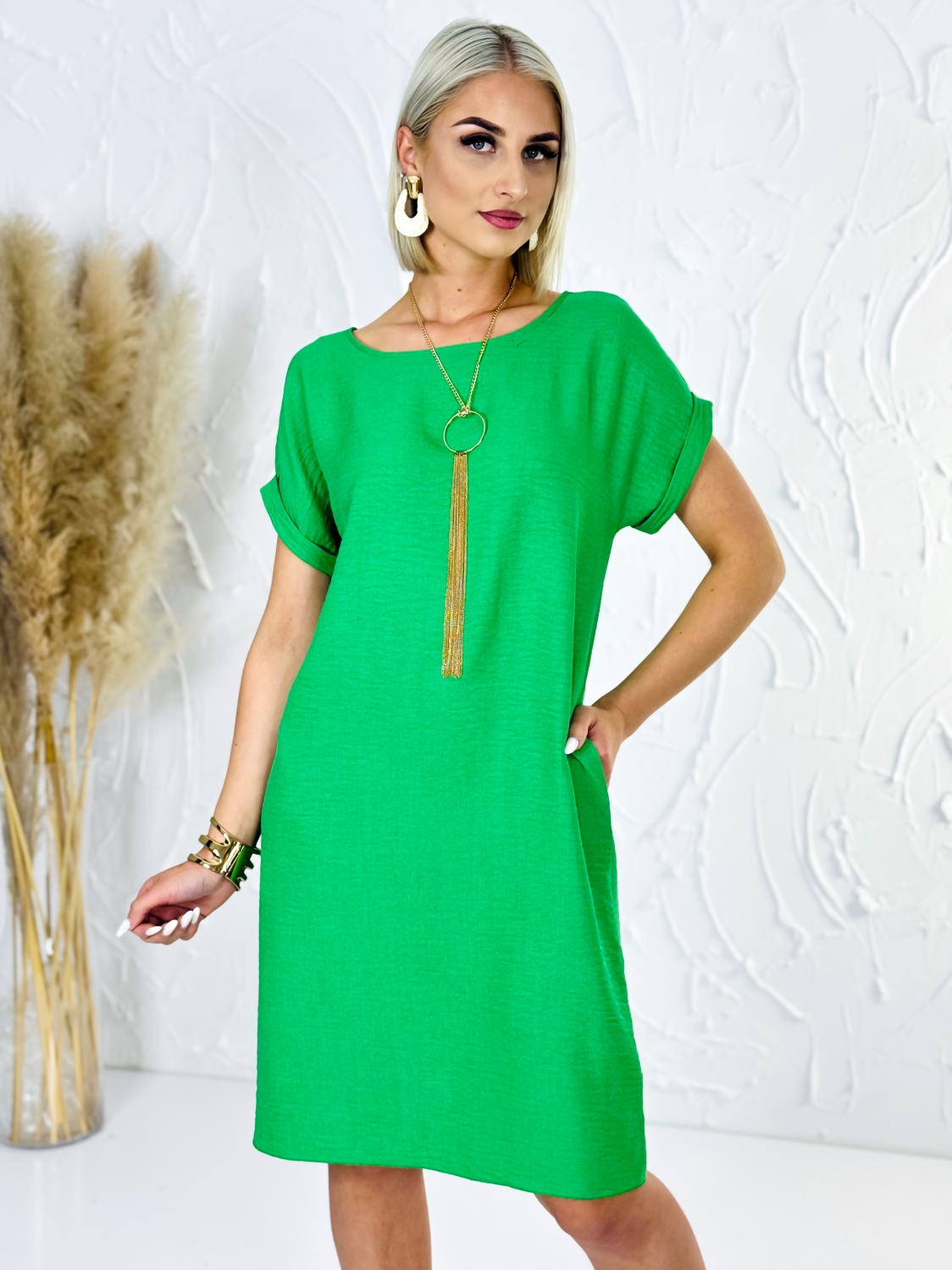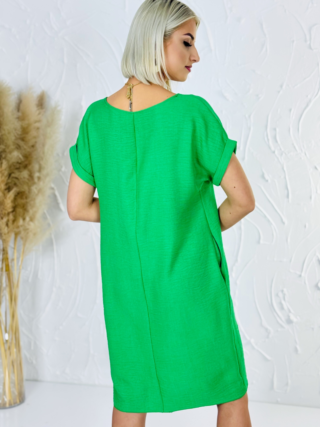 Dámske voľné letné šaty s vreckami sú pohodlným a praktickým kúskom na teplé dni, pričom náhrdelník zobrazený na fotografii nie je súčasťou šiat. Tento model je navrhnutý tak, aby poskytoval maximálne pohodlie počas nosenia a zároveň pôsobil upravene a štýlovo. Voľný strih zabezpečuje príjemnú vzdušnosť a dostatok priestoru pri pohybe, čo oceníš najmä počas horúcich letných dní. Šaty sa jemne prispôsobia postave bez zbytočného obopínania, vďaka čomu sú vhodné pre rôzne typy postáv a ideálne na celodenné nosenie. Praktické vrecká dodávajú šatám moderný a funkčný detail, ktorý mnohé ženy ocenia pri bežnom nosení. Umožňujú mať pri sebe drobnosti alebo jednoducho dodávajú celkovému vzhľadu ležérny a uvoľnený charakter.