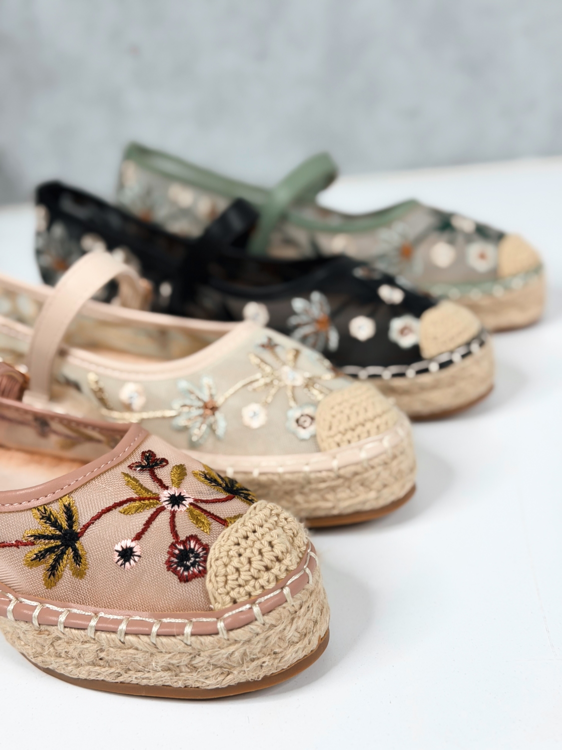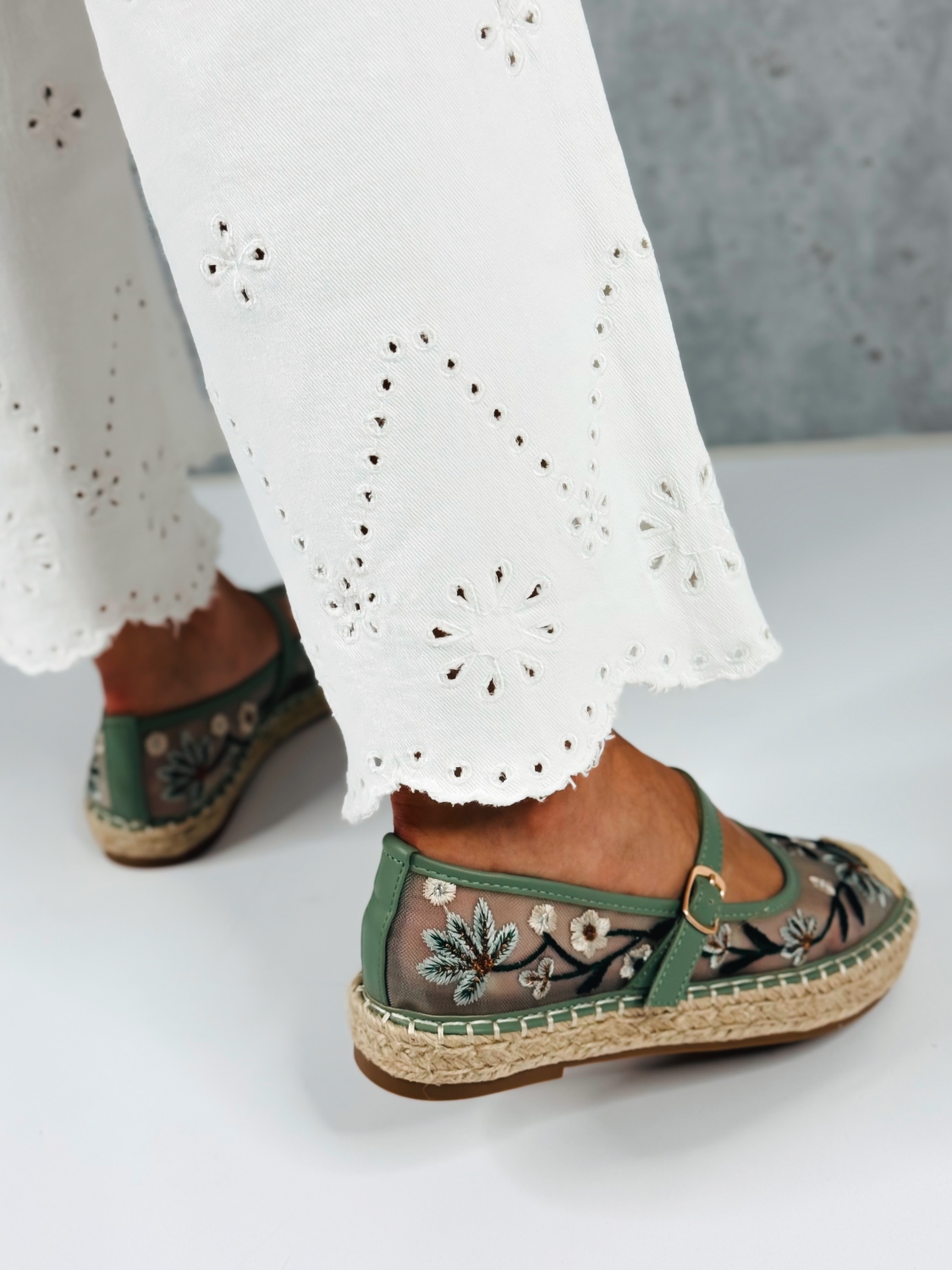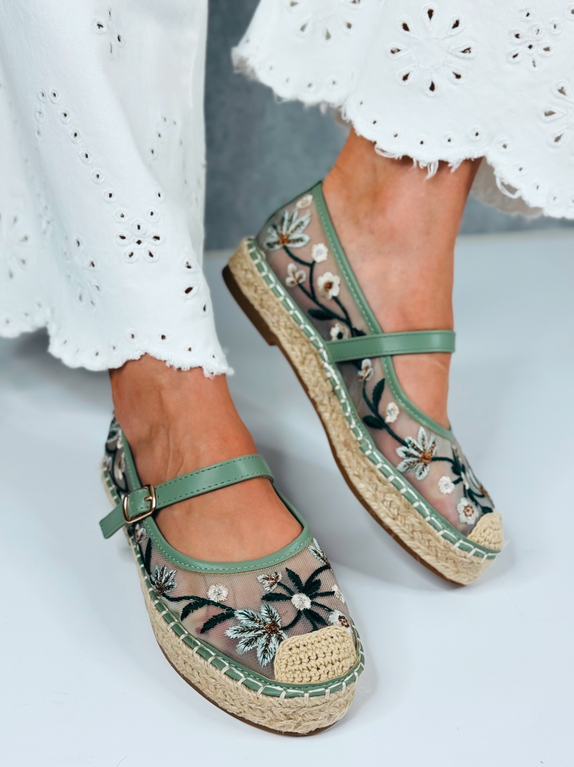 Tieto dámske vyšívané espadrilky sú stelesnením jemnosti, romantiky a letnej elegancie. Ich jedinečný dizajn vyniká krásnou kvetinovou výšivkou na prednej časti, ktorá dodáva obuvi originálny a ženský charakter. Precízne spracovaná výšivka pôsobí luxusne a zároveň hravo, čím dokonale oživí každý outfit. Zvršok espadriliek je vyrobený z príjemného textilného materiálu, ktorý je ľahký, priedušný a ideálny na teplé dni. Vnútro topánok poskytuje komfort pri nosení, zatiaľ čo klasická espadrilková podrážka s prírodným vzhľadom dodáva modelu autentický letný štýl. Remienok okolo členka zabezpečuje stabilitu a pevné držanie nohy, pričom zároveň pôsobí veľmi elegantne a zvýrazňuje ženskosť. Vďaka nemu espadrilky perfektne sedia na nohe a sú vhodné aj na dlhšie prechádzky či celodenné nosenie.