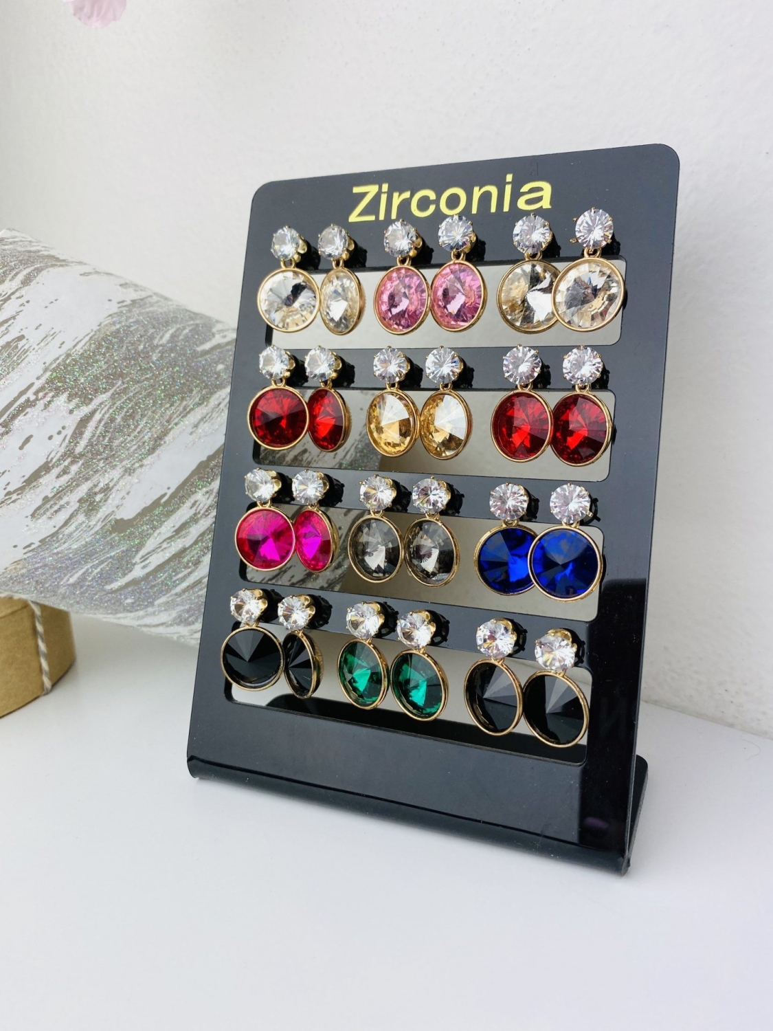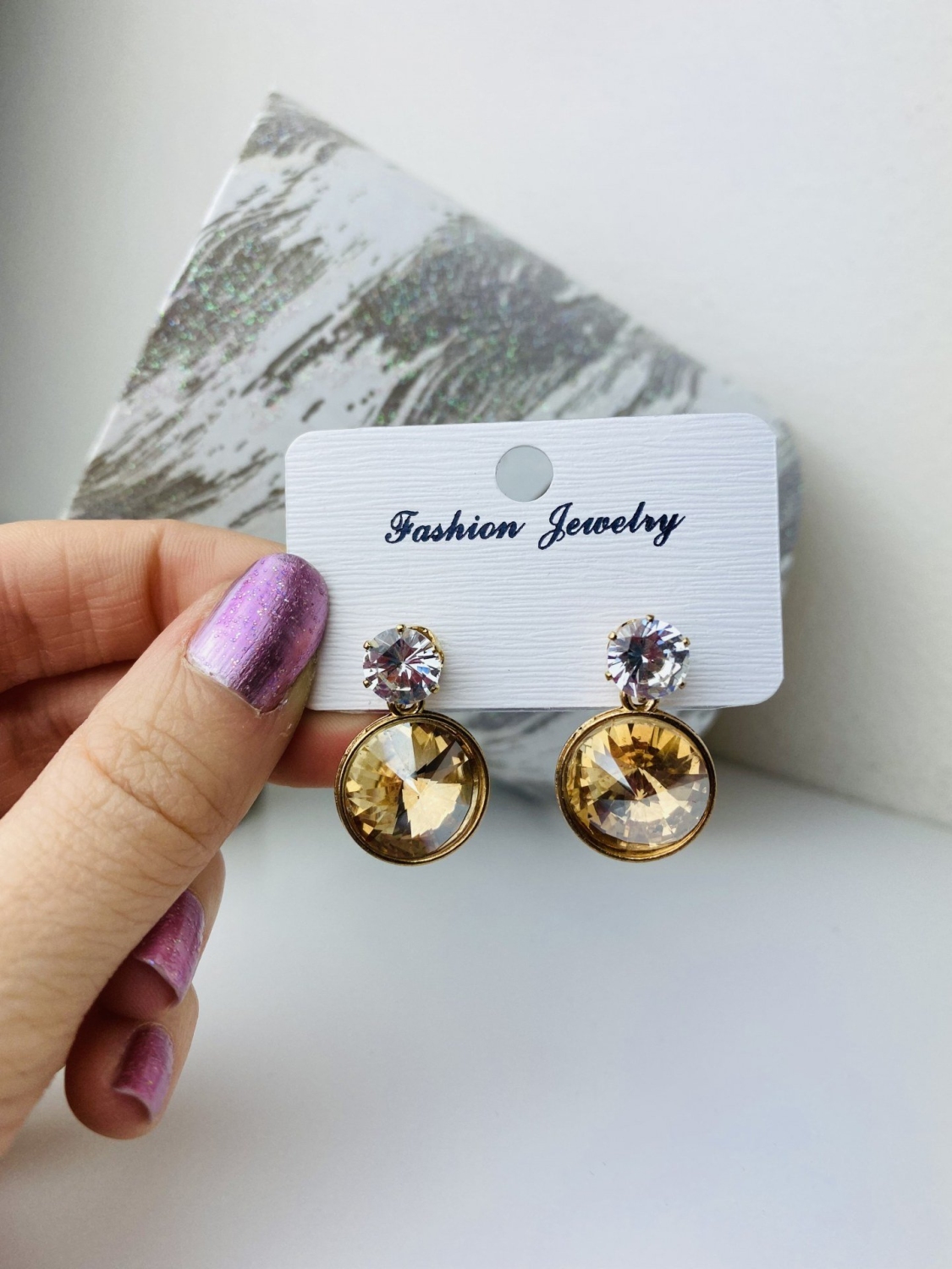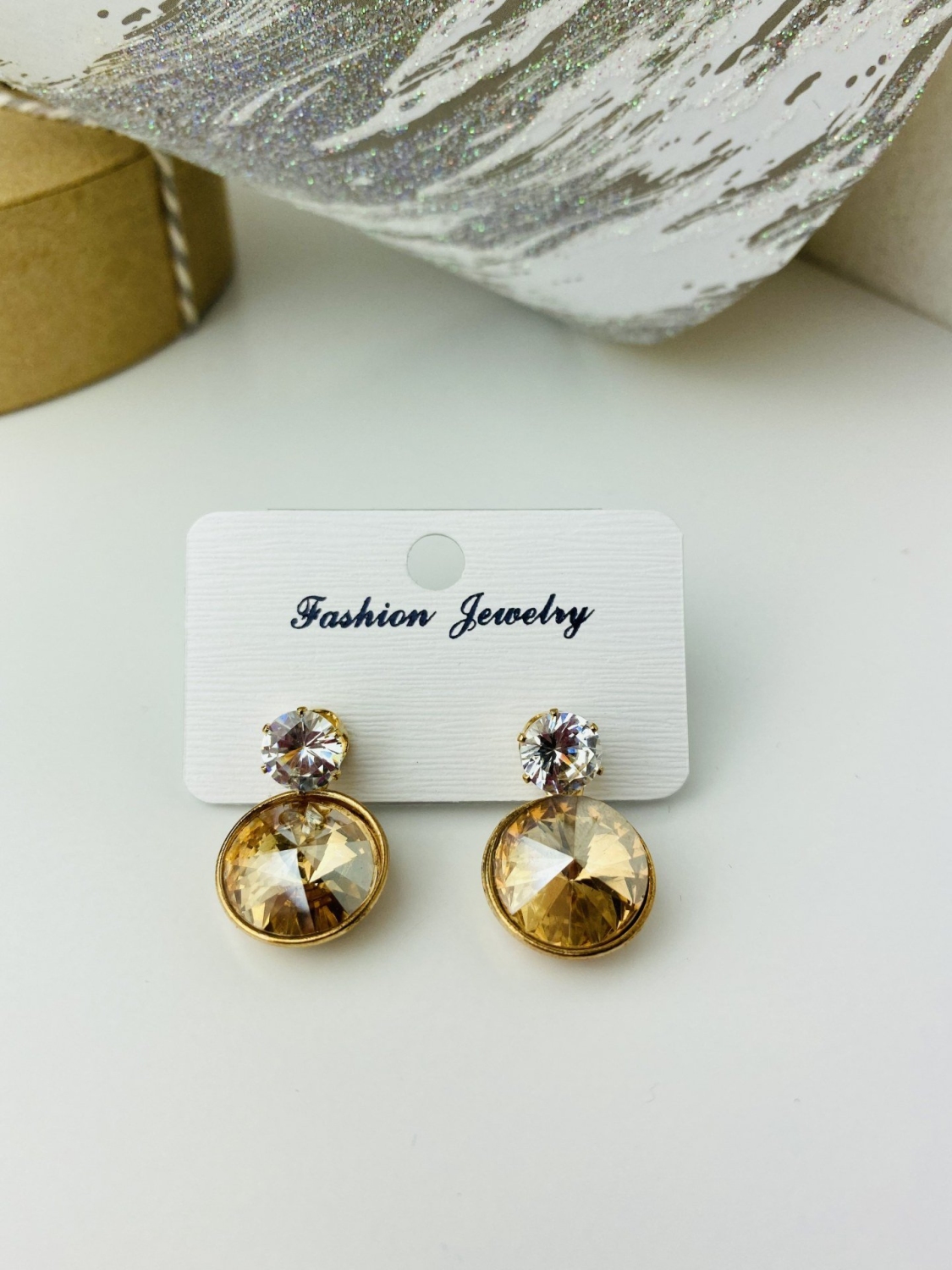 Dámske zlaté náušnice Diamond. Majú zlatý podklad, strieborný zirkón pri zapínaní a farebný lesklý kameň kruhového tvaru. Veľmi štýlový a elegantný kúsok z našej kolekcie.