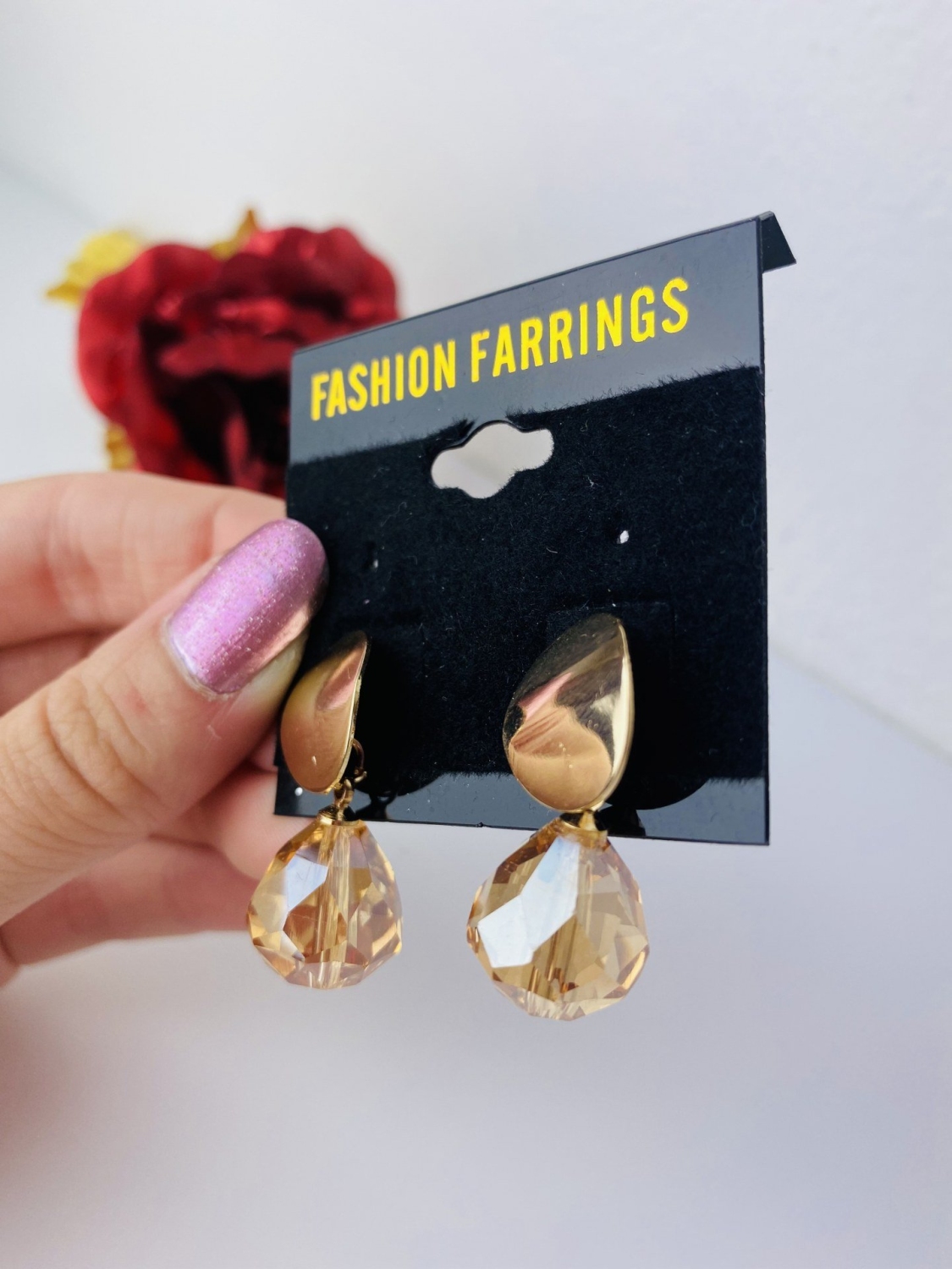 Dámske zlaté náušnice. Majú zlatý vrch pri zapínaní a , farebný kameň v tvare slzy. Veľmi štýlový kúsok z našej kolekcie. Stačí si vybrať svoju farbu.