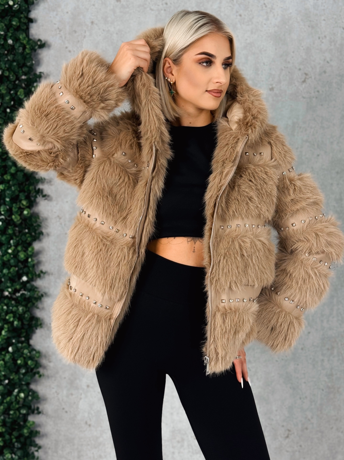 Tento dámsky mohutný kožuch je výrazným módnym kúskom, ktorý okamžite upúta pozornosť svojou bohatou kožušinovou štruktúrou a luxusným spracovaním. Pôsobí elegantne, moderne a zároveň mimoriadne žensky – ideálny pre ženy, ktoré milujú teplo, štýl a neprehliadnuteľný vzhľad v zimných mesiacoch. Kožuch je vyrobený z kvalitného, mimoriadne hebkého kožušinového materiálu, ktorý vás obklopí príjemným mäkkým teplom a poskytne maximálny komfort pri nosení. Je navrhnutý tak, aby si zachoval svoj tvar, nadýchanosť a atraktívny, plný vzhľad aj po dlhšom používaní. Jedinečným prvkom tohto modelu sú ozdobné kamienky, ktoré sú umiestnené vkusne a vytvárajú elegantné odlesky pri každom kroku. Dodávajú kožuchu nádych exkluzivity, no zároveň pôsobia decentne a štýlovo. Praktická a zároveň efektná kapucňa chráni pred zimou, vetrom či snežením. Je bohato tvarovaná, krásne drží formu a dopĺňa celkový luxusný charakter kožucha. Zapínanie je riešené kvalitným zipsom, ktorý je diskrétne všitý tak, aby nerušil celkový dizajn.