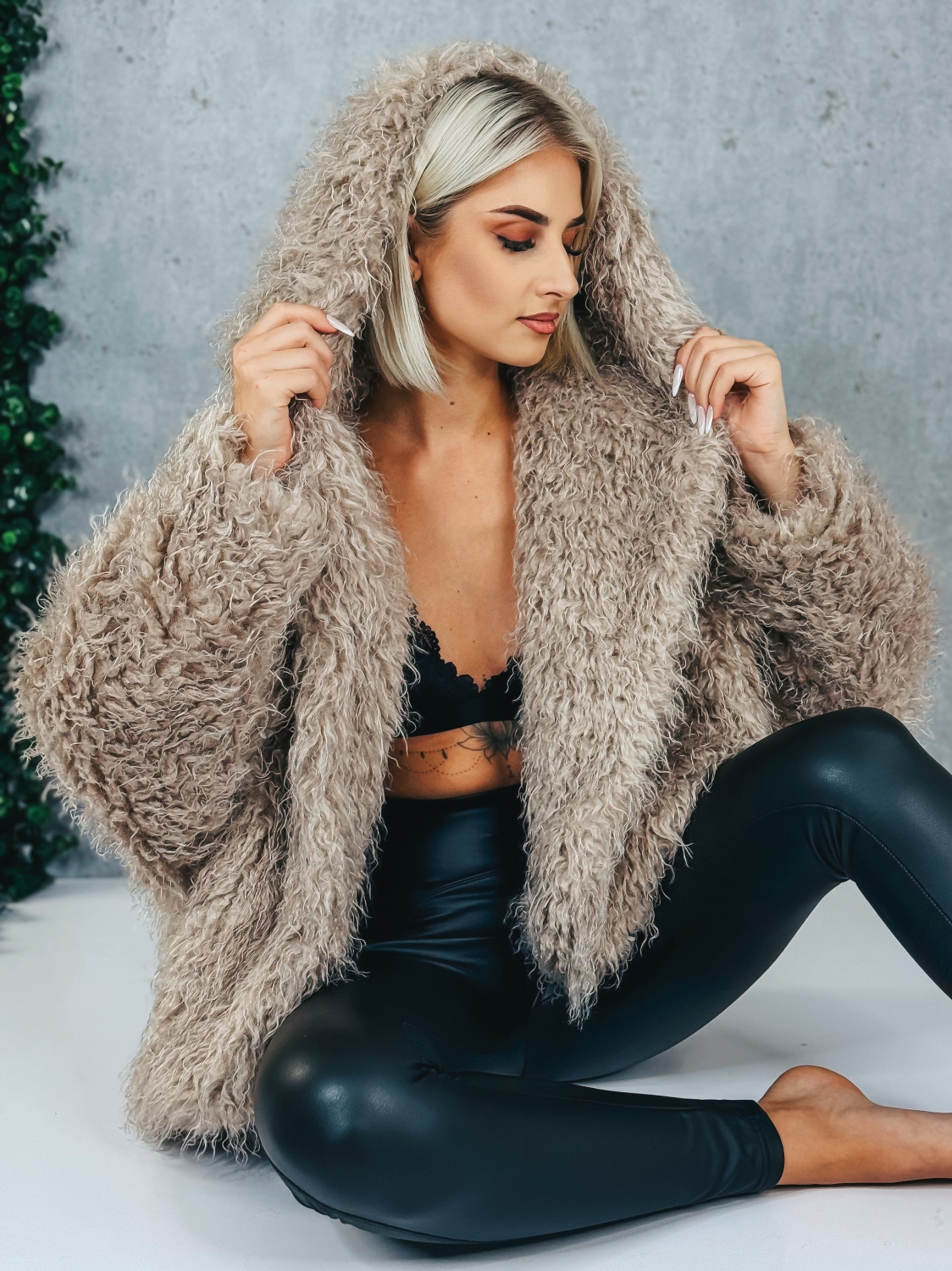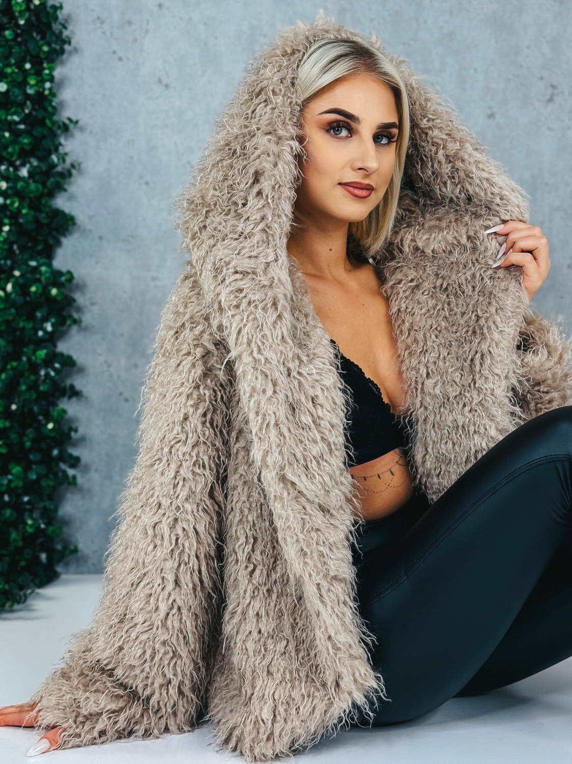 Tento dámsky kratší ovečkový kožuch je ideálnou voľbou pre všetky ženy, ktoré chcú spojiť výnimočný komfort, moderný štýl a príjemnú hrejivosť v jednom nadčasovom kúsku. Je navrhnutý tak, aby sa stal tvojím obľúbeným spoločníkom počas chladných dní – ľahký, no zároveň hustý a mimoriadne jemný na dotyk. Kožuch má charakteristickú ovečkovú textúru, ktorá pôsobí mäkko, nadýchane a dodáva modelu špecifický šarm. Kratší strih krásne tvaruje postavu, pôsobí moderne a lichotí všetkým typom postáv. Je skvelý k džínsom, športovým outfitom aj elegantnejším kúskom, takže ho využiješ na bežný deň aj na večerný výjazd. Dominantným prvkom je bohatá kapucňa, ktorá nielen pridáva štýlový efekt, ale zároveň poskytuje praktickú ochranu pred vetrom a zimou. Vytvára efektný rám okolo tváre a dodáva celému kabátu hrejivý, útulný charakter. Zapínanie na kvalitné kovové cvoky je jednoduché, spoľahlivé a nenápadne zapracované tak, aby nenarušovalo čistý a elegantný dizajn. Vďaka tomu pôsobí kožuch kompaktným, upraveným dojmom a drží svoj tvar počas nosenia.