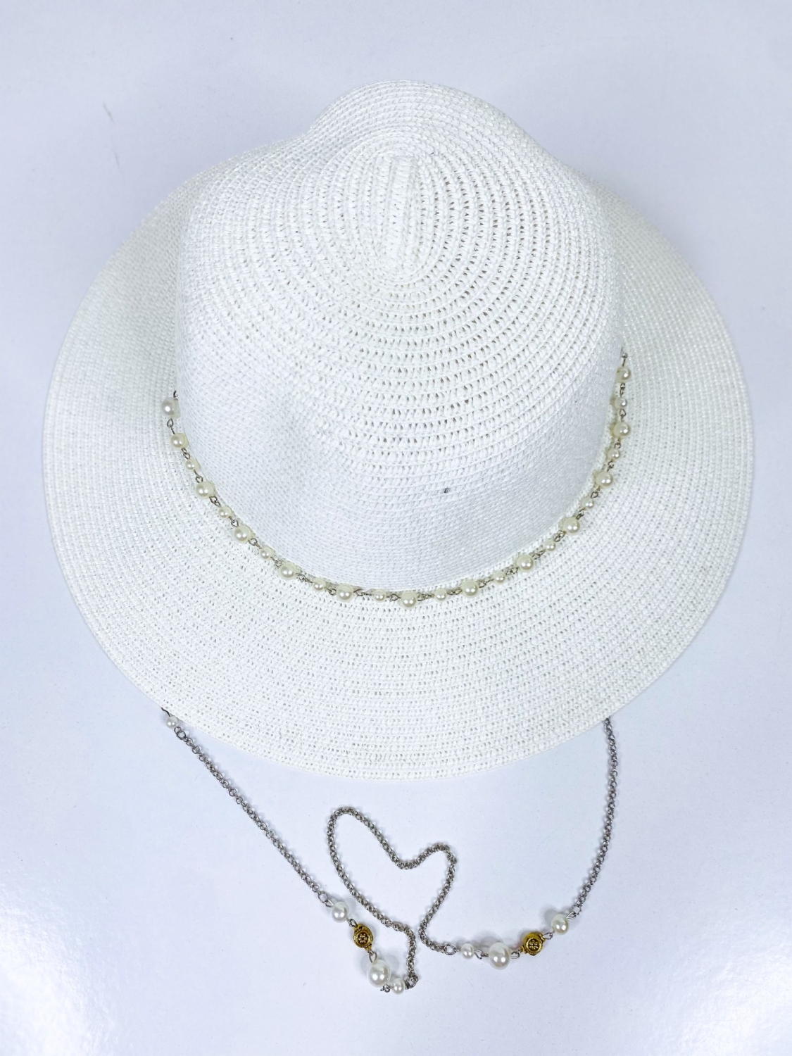 Luxusný slamený klobúk, ktorý Vám ihneď rozžiari outfit a zaistí tak želanú pozornosť. Klobúk drží pevne na hlave. Tento dámsky slamený klobúk je perfektným doplnkom na leto. Vďaka jeho elegancii a štýlovému dizajnu dodá Vášmu outfitu ten správny fashionový šmrnc. Vďaka svojej flexibilite si ho môžete jednoducho prispôsobiť podľa seba a vytvoriť tak štýlový a jedinečný look. Materiál z prírodných vlákien zaistí, že sa v ňom budete cítiť pohodlne aj v tých najhorúcejších dňoch. Vďaka jemným perlám pôsobí tento doplnok veľmi prepracovane a rafinovaným dojmom. Tento univerzálny klobúk dodá vášmu vzhľadu šmrnc a zvýrazní vašu ženskosť. Investujte do tohto nadčasového doplnku, ktorý vám bude slúžiť sezónu za sezónou.