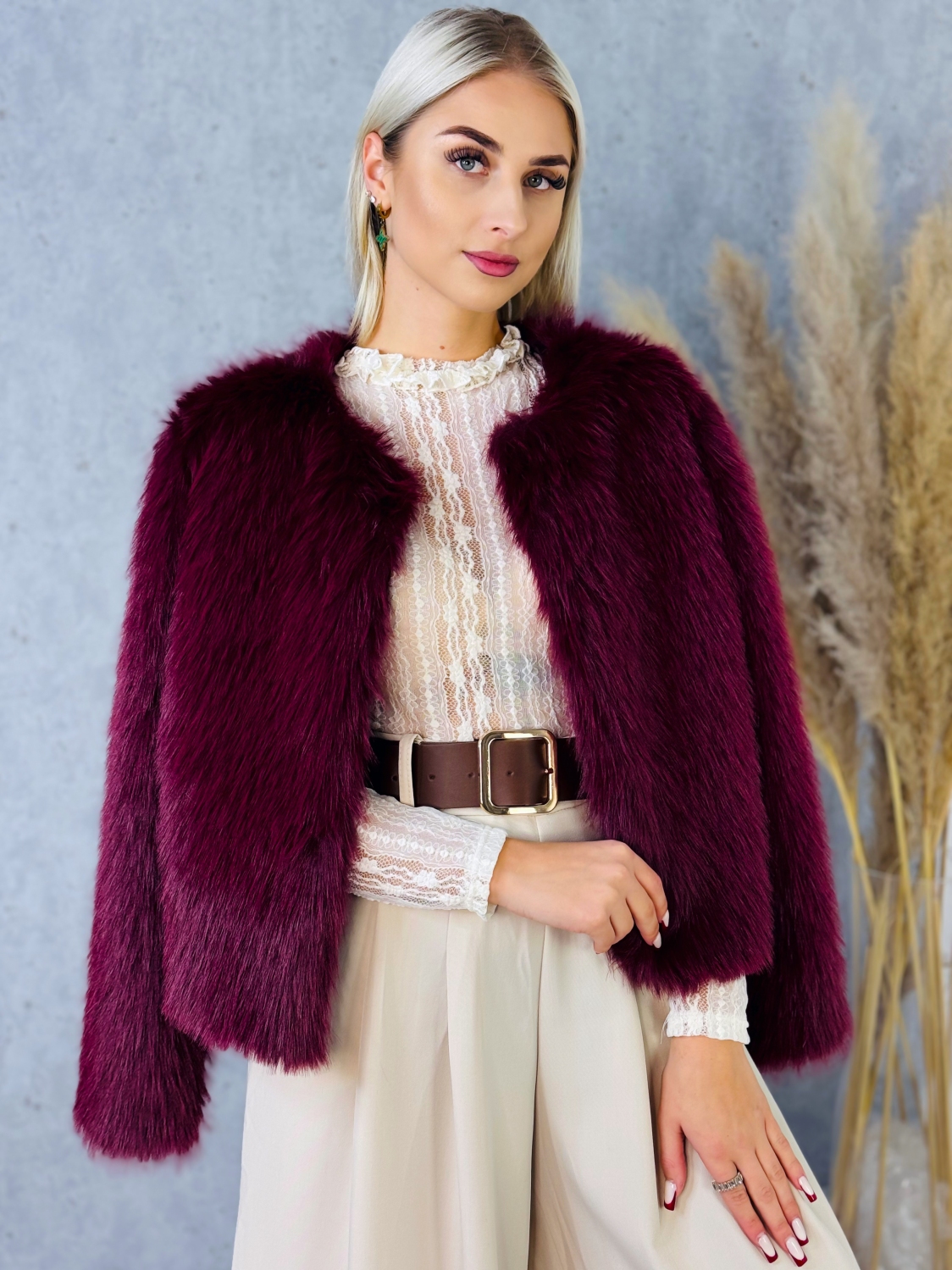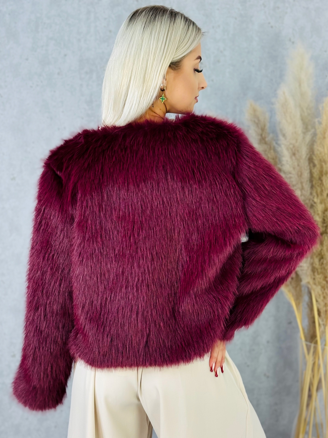 Dámske kožušinové bolerko je výrazným módnym kúskom, ktorý okamžite dodá outfitu pocit tepla, pohodlia a luxusu. Je vyhotovené z bohatej, huňatej kožušiny s jemným vlasom, ktorá je príjemná na dotyk a krásne drží tvar. Vďaka svojmu krátkemu strihu pôsobí bolerko ľahko a elegantne, pričom zvýrazňuje hornú časť postavy bez toho, aby zakrývalo siluetu. Bolerko je ideálne na nosenie počas chladnejších dní a večerov, kedy chcete zostať v teple, ale zároveň si zachovať ženský a upravený vzhľad. Huňatá štruktúra dodáva modelu objem a luxusný efekt, vďaka čomu sa stáva neprehliadnuteľným doplnkom k šatám, sukniam či elegantným nohaviciam. Je vhodné pre spoločenské udalosti, oslavy, večere, svadby, plesy, ale aj ako štýlový vrchný doplnok na prechodné obdobie. Toto kožušinové bolerko je určené pre ženy, ktoré majú rady kvalitné spracovanie, nadčasový dizajn a chcú svojmu outfitu dodať výrazný, ale stále vkusný módny akcent.