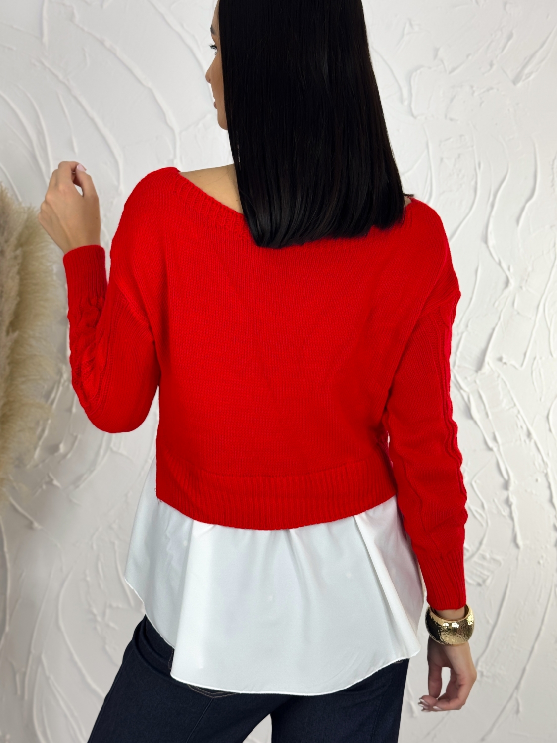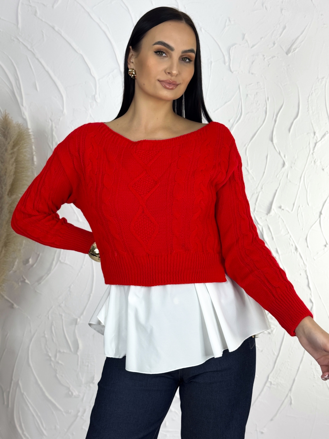 Tento dámsky sveter v TOP farbe spája pohodlie a ženskú eleganciu v jednom kúsku. Vyrobený je z príjemného, hrejivého úpletu so štruktúrovaným vrkočovým vzorom, ktorý dodáva modelu klasický, nadčasový vzhľad. Originálnym detailom je spodný biely volánik, ktorý vytvára efekt vrstvenia – vyzerá ako košeľa vykúkajúca spod svetra, no ide o súčasť jedného celku. Tento detail pôsobí veľmi štýlovo a dodáva outfitu sviežosť a ľahkosť. Sveter má pohodlný, mierne kratší strih, ktorý krásne vynikne v kombinácii s nohavicami s vysokým pásom či úzkou sukňou. Je ideálny na bežné nosenie, do práce, aj na voľné chvíle – vždy, keď sa chceš cítiť štýlovo a žensky bez námahy.