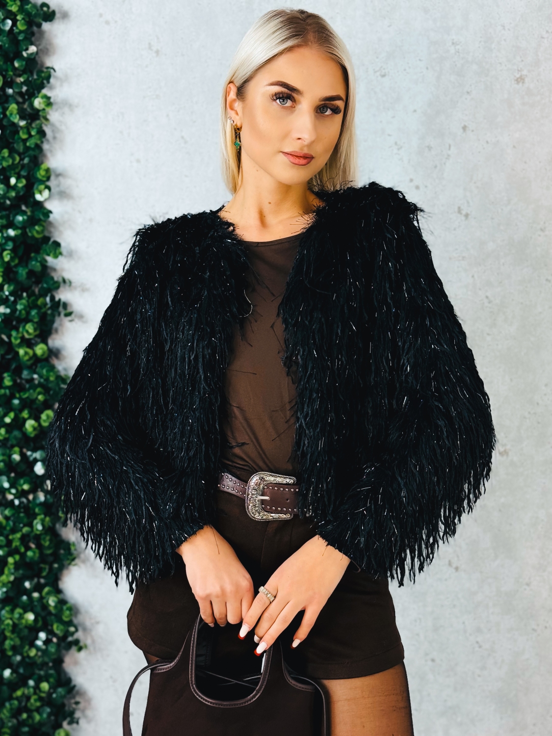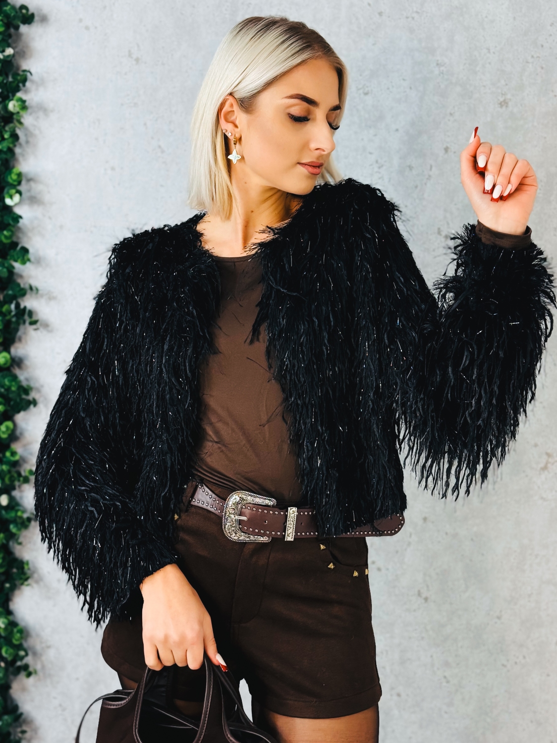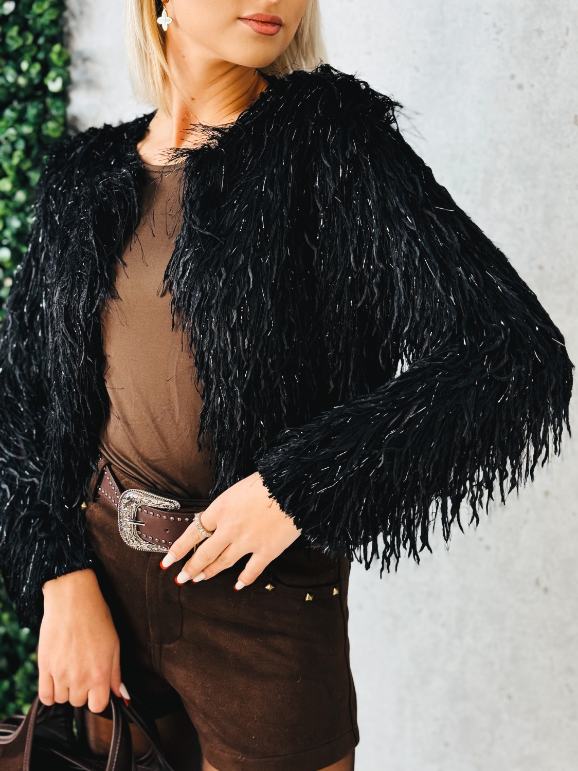 Dámsky krátky kožušinový kožúštek je výrazným módnym kúskom, ktorý okamžite pritiahne pozornosť a dodá outfitu štýlový charakter. Vyznačuje sa bohatou, huňatou štruktúrou, ktorá pôsobí moderne, trendy a zároveň luxusne. Krátky strih krásne zvýrazňuje postavu a vytvára vyvážený vzhľad bez zbytočného objemu. Kožúštek je navrhnutý tak, aby bol pohodlný na nosenie a zároveň vizuálne dominantný. Huňatý povrch dodáva modelu originálny vzhľad a robí z neho ideálny doplnok k jednoduchým outfitom, ktoré chcete povýšiť na výrazný fashion look. Skvele sa kombinuje s elegantnými šortkami, nohavicami, šatami aj overalmi. Tento kúsok je vhodný na prechodné obdobie, chladnejšie dni alebo večery, kedy chcete zostať v teple a zároveň si zachovať moderný, sebavedomý štýl. Kožúštek je ideálny na spoločenské udalosti, večerné stretnutia, oslavy.