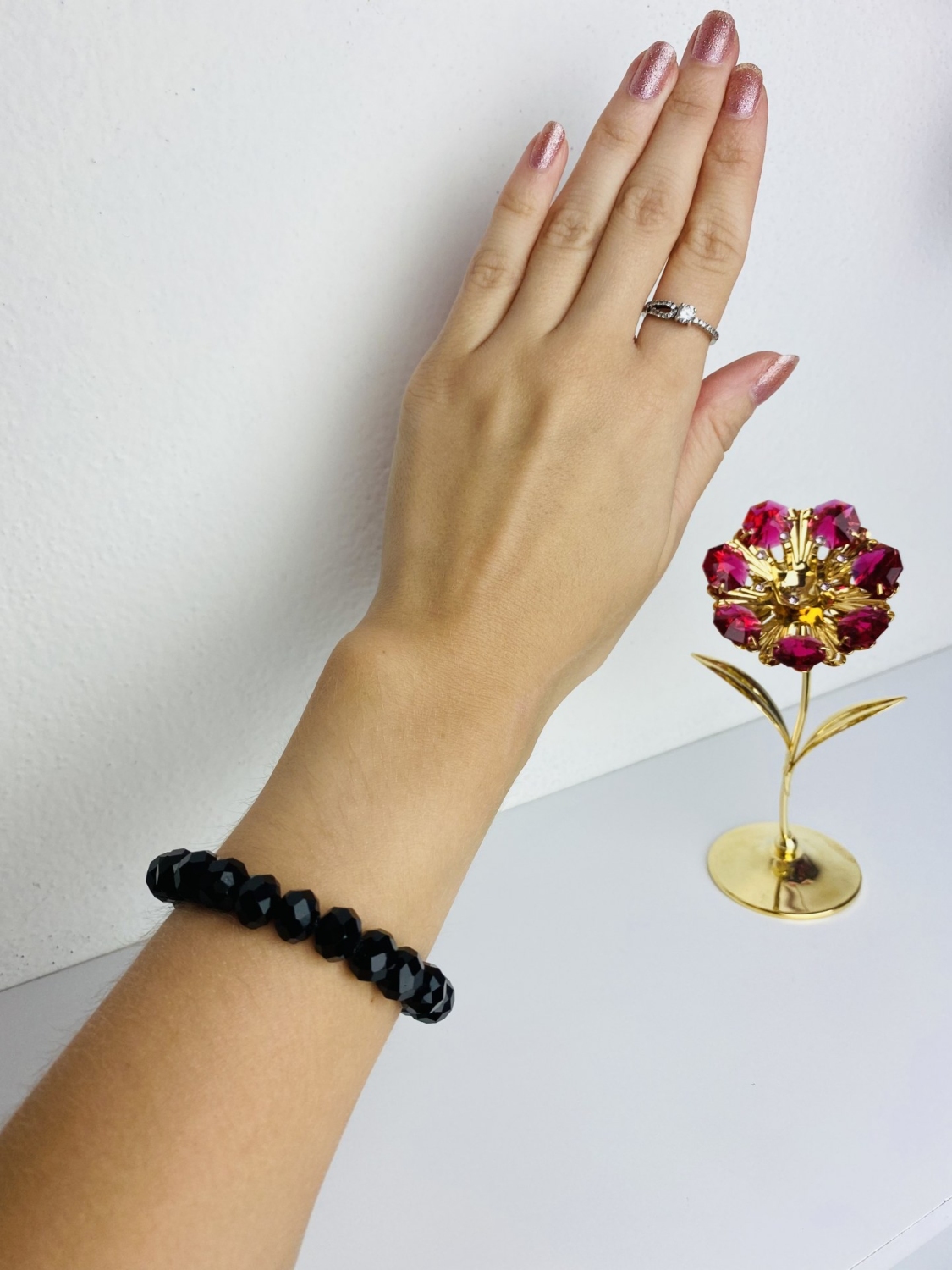 Dámsky čierny náramok z korálikov. Nemá zapínanie, ale je na gumičku, takže sa prispôsobí na každú ruku. Má čierne guličky s odleskom. Noste ich samostatne, alebo aj viac spolu. Veríme, že si z našej širokej a doslova pestrej ponuky náramkov vyberiete svoju farbu.