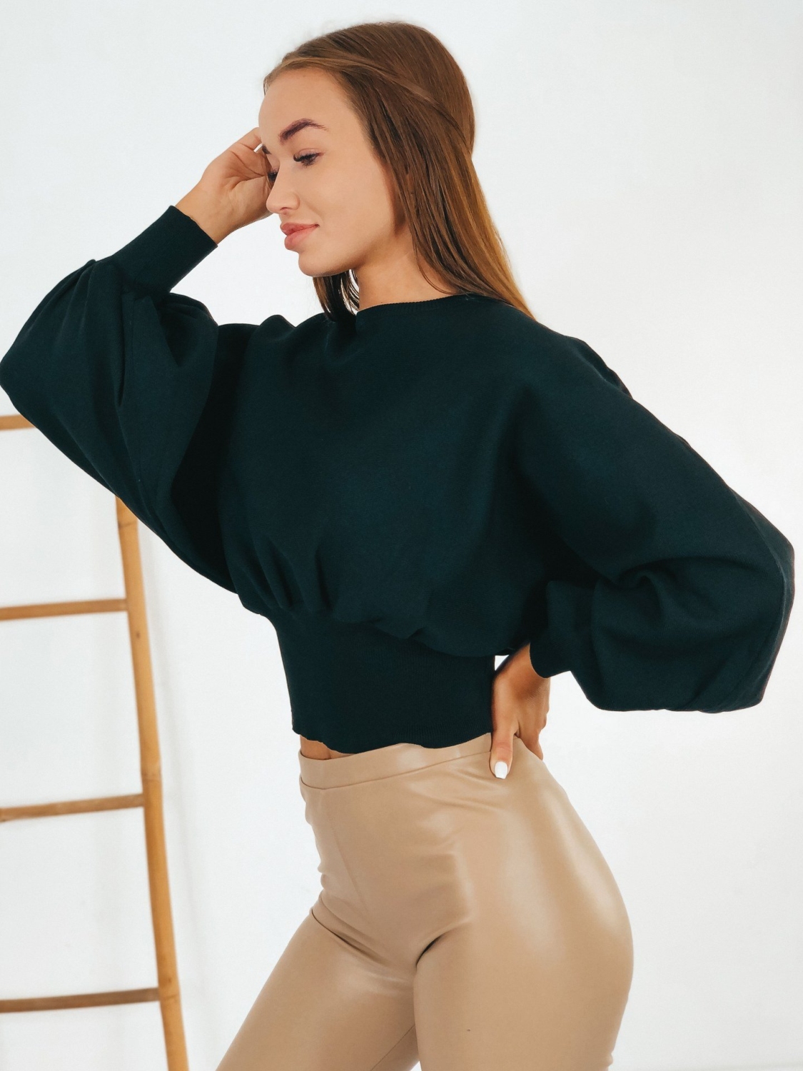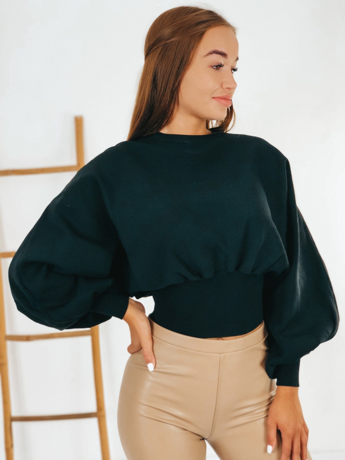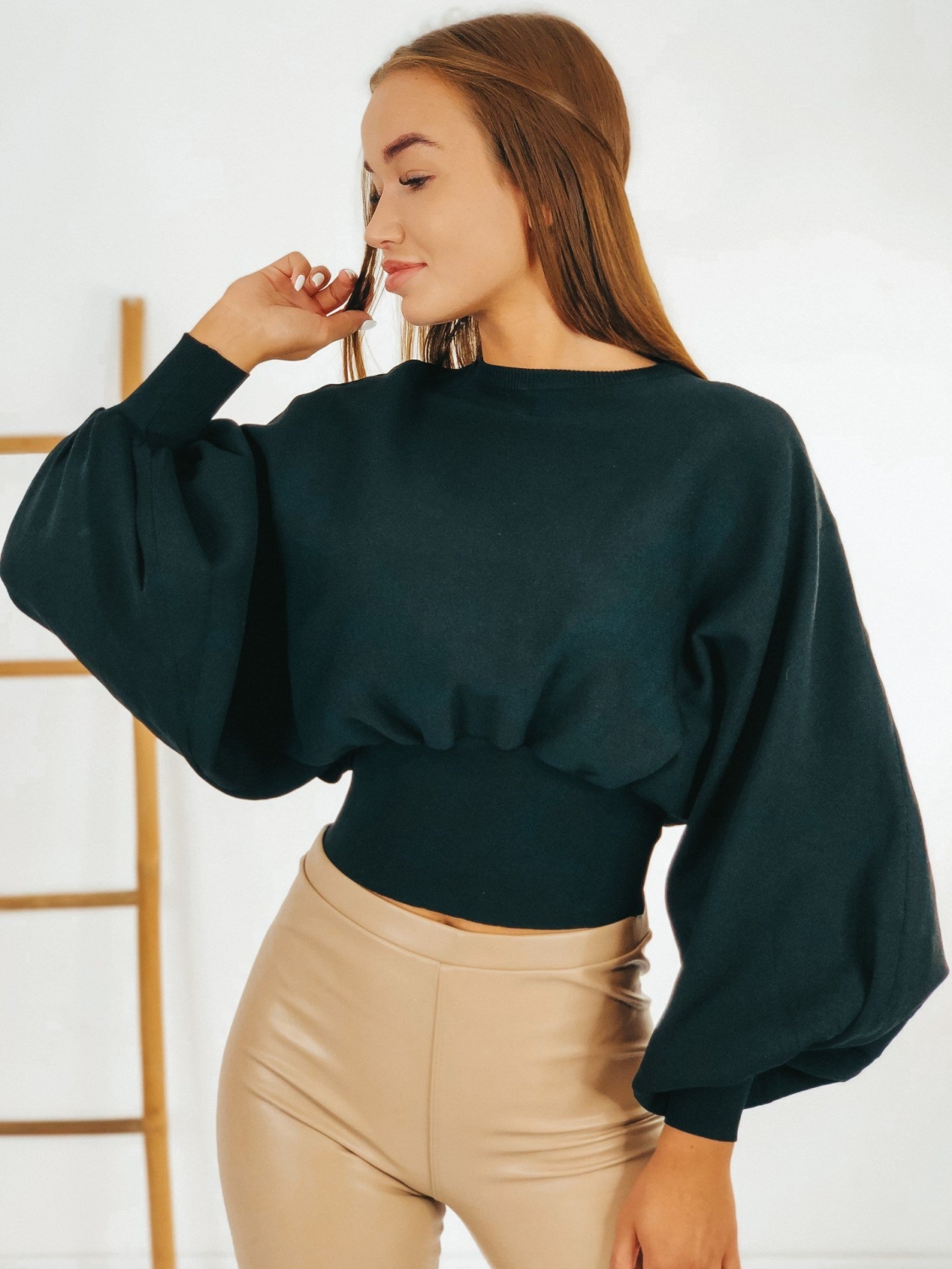 Dámsky exkluzívny oversize pletený sveter s balónovými rukávmi. Dlhý rukáv. Kvalitný a príjemný materiál na dotyk. Ľahko kombinovateľný kúsok do šatníka. Dokonale sa hodí k vysokým čižmám alebo teniskam. Môžete ho kombinovať podľa vlastného vkusu či už s dlhými alebo krátkymi nohavicami. Bez zapínania. Ideálny kúsok do prechodného a zimného počasia. Už pri prvom oblečení si ho okmažite zamilujete. Modelka je vysoká 172 cm a oblečenú má veľkosť UNI.