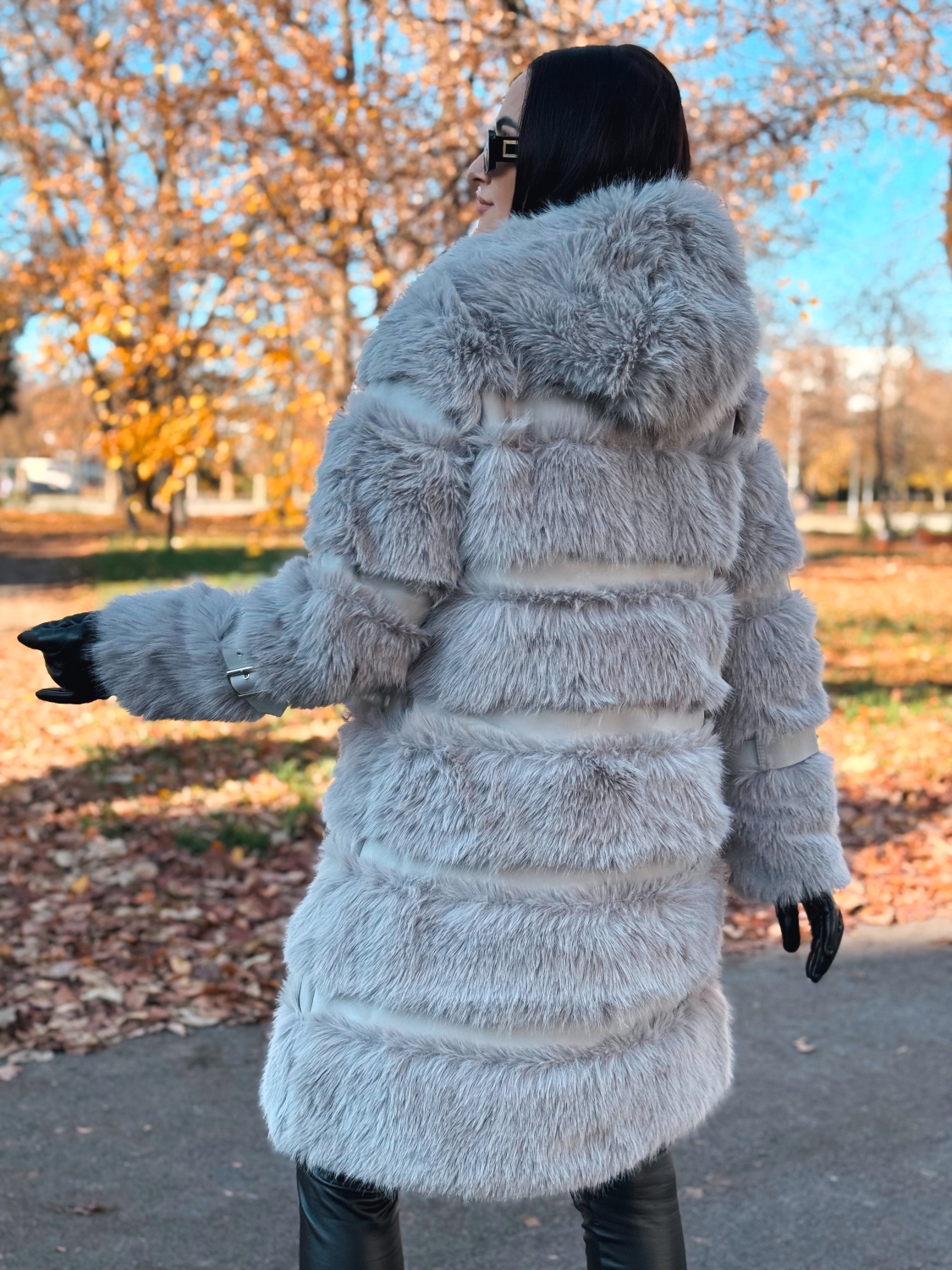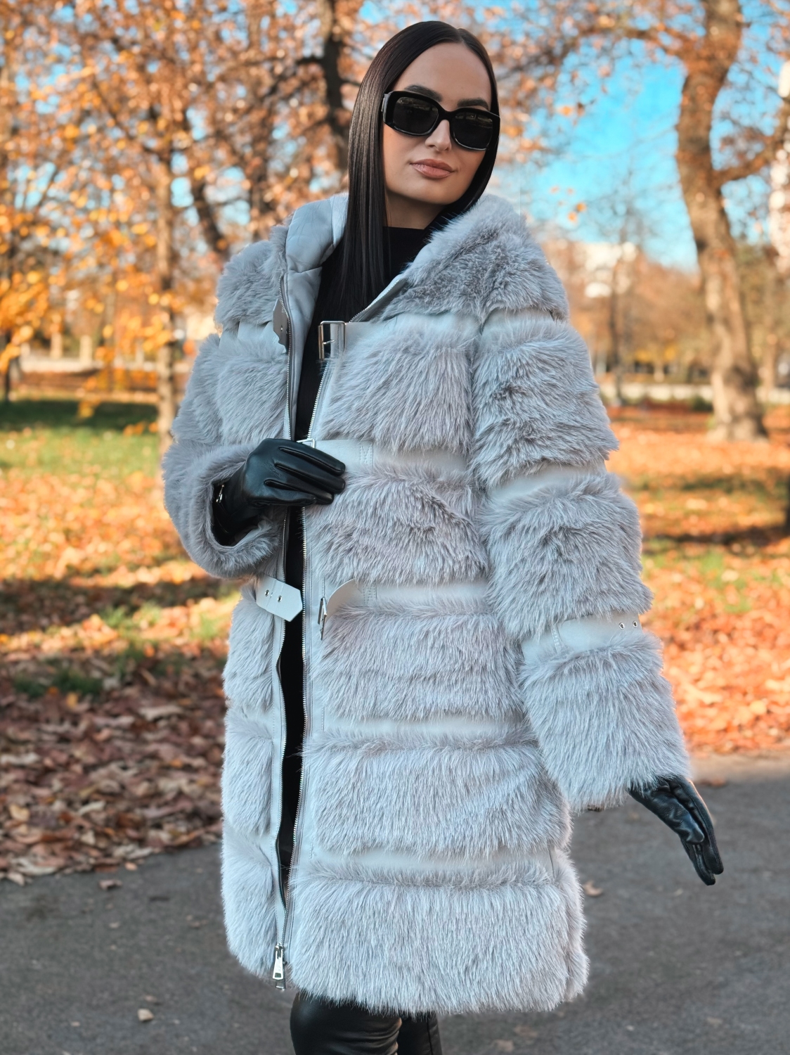 Dámsky kožuch je jedinečný kus oblečenia, ktorý spája eleganciu, praktickosť a vysokú kvalitu. Kožuch je vyrobený z prémiových materiálov, ktoré zaručujú jeho odolnosť a dlhú životnosť, pričom vnútorná podšívka zabezpečuje tepelný komfort aj v najchladnejších podmienkach. Dizajn kožucha je sofistikovaný, s jemnými detailmi, ktoré podčiarkujú jeho exkluzivitu. Predné zapínanie na zips nielenže dodáva klasický vzhľad, ale umožňuje aj jednoduché a pohodlné obliekanie. Strih kožucha je prispôsobený ženským krivkám, vďaka čomu zvýrazňuje postavu, pričom zostáva dostatočne voľný na vrstvenie oblečenia pod ním. Dĺžka kožucha poskytuje optimálnu ochranu a hodí sa nielen na bežné nosenie, ale aj na formálnejšie príležitosti. Tento dámsky kožuch je univerzálnym kúskom, ktorý možno ľahko kombinovať s rôznymi outfitmi. Či už ho zvolíte k elegantným šatám na večernú udalosť alebo k džínsom a vysokým čižmám na bežný deň, vždy budete pôsobiť štýlovo a vkusne. Kožuch je dostupný v niekoľkých farebných prevedeniach, aby ste si mohli vybrať ten, ktorý najlepšie doplní váš šatník. Je to investícia, ktorá vám poskytne nielen teplo a pohodlie, ale aj nezameniteľný šmrnc v každej situácii.