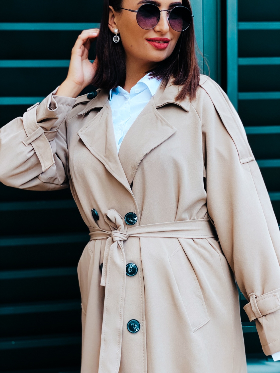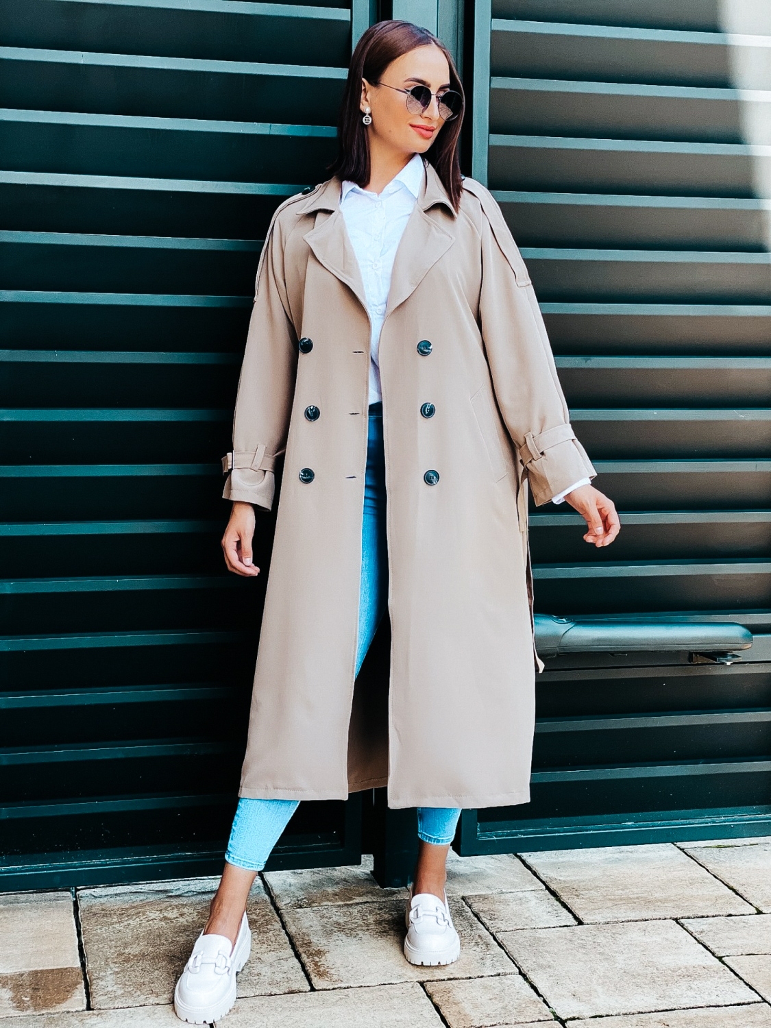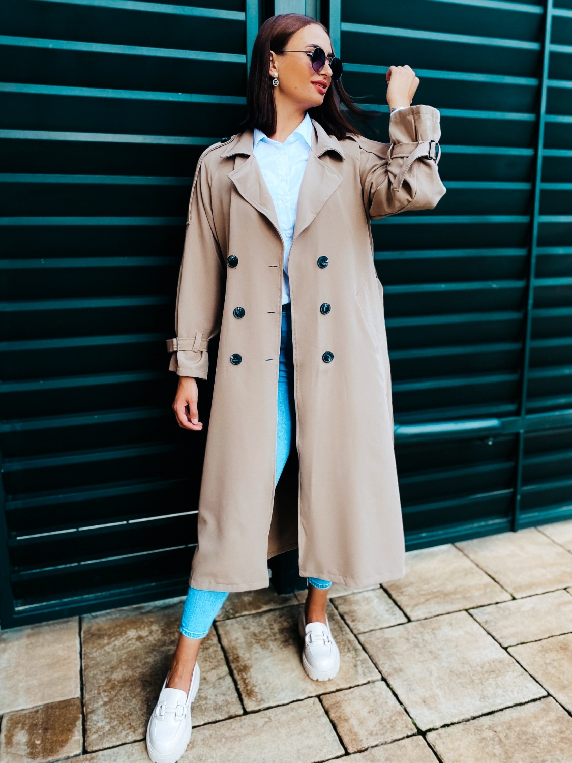Čo sa môže hodiť viac ako trenčkot do premenlivého počasia? Dámsky dlhý trench coat je nestarnúci trend pre každú trendy žienku. Univerzálny kúsok, ktorý sa hodí k akémukoľvek outfitu. Široký golier a dvojradové gombíkové zapínanie. Trenčkot má taktiež vrecká na oboch stranách. Je perfektnou voľbou pri vytváraní každodenných štylizácií. Hodí sa k elegantným aj casual outfitom. Tento nekonečne štýlový trenčkot je viac než dostatočne vzhľadný a kvalitný. Výnimočne trendy a skutočne pohodlný. Jednoduchá úprava podľa vlatného vkusu. Zapínanie na gombíky. Vnútro trenčkotu nie je podšité, avšak svojím kvalitným materiálom sa Vám hodí do chladnejších jarných a jesenných dní. Modelka je vysoká 175 cm a oblečenú má veľkosť UNI.