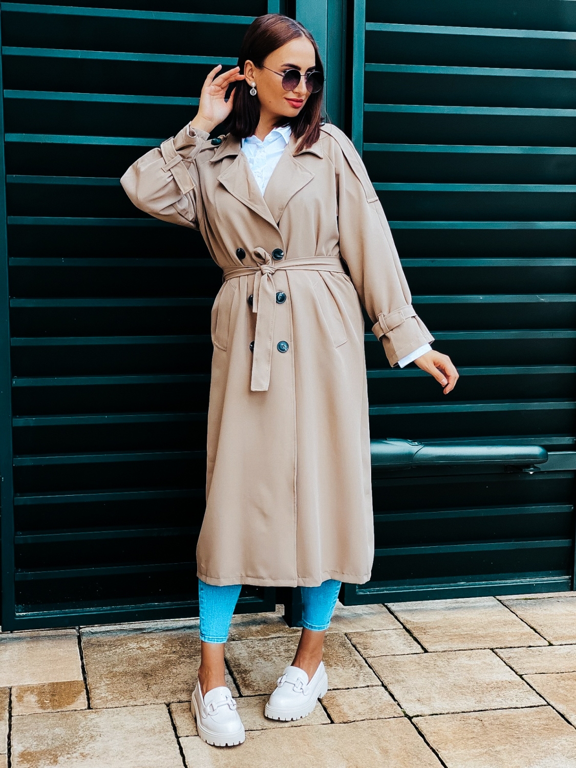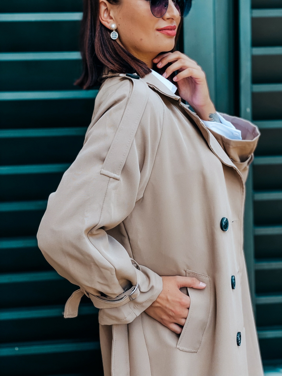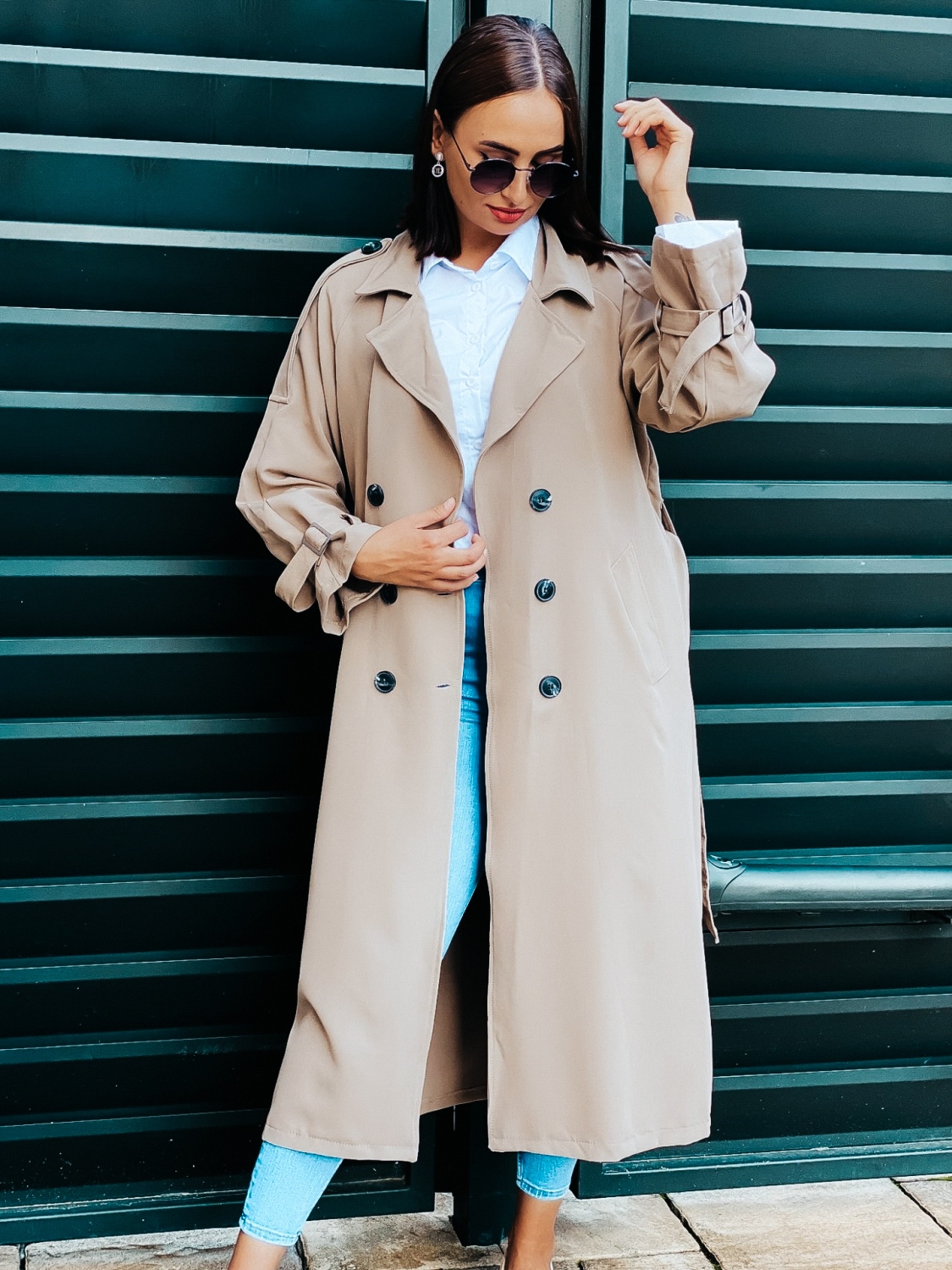 Čo sa môže hodiť viac ako trenčkot do premenlivého počasia? Dámsky dlhý trench coat je nestarnúci trend pre každú trendy žienku. Univerzálny kúsok, ktorý sa hodí k akémukoľvek outfitu. Široký golier a dvojradové gombíkové zapínanie. Trenčkot má taktiež vrecká na oboch stranách. Je perfektnou voľbou pri vytváraní každodenných štylizácií. Hodí sa k elegantným aj casual outfitom. Tento nekonečne štýlový trenčkot je viac než dostatočne vzhľadný a kvalitný. Výnimočne trendy a skutočne pohodlný. Jednoduchá úprava podľa vlatného vkusu. Zapínanie na gombíky. Vnútro trenčkotu nie je podšité, avšak svojím kvalitným materiálom sa Vám hodí do chladnejších jarných a jesenných dní. Modelka je vysoká 175 cm a oblečenú má veľkosť UNI.