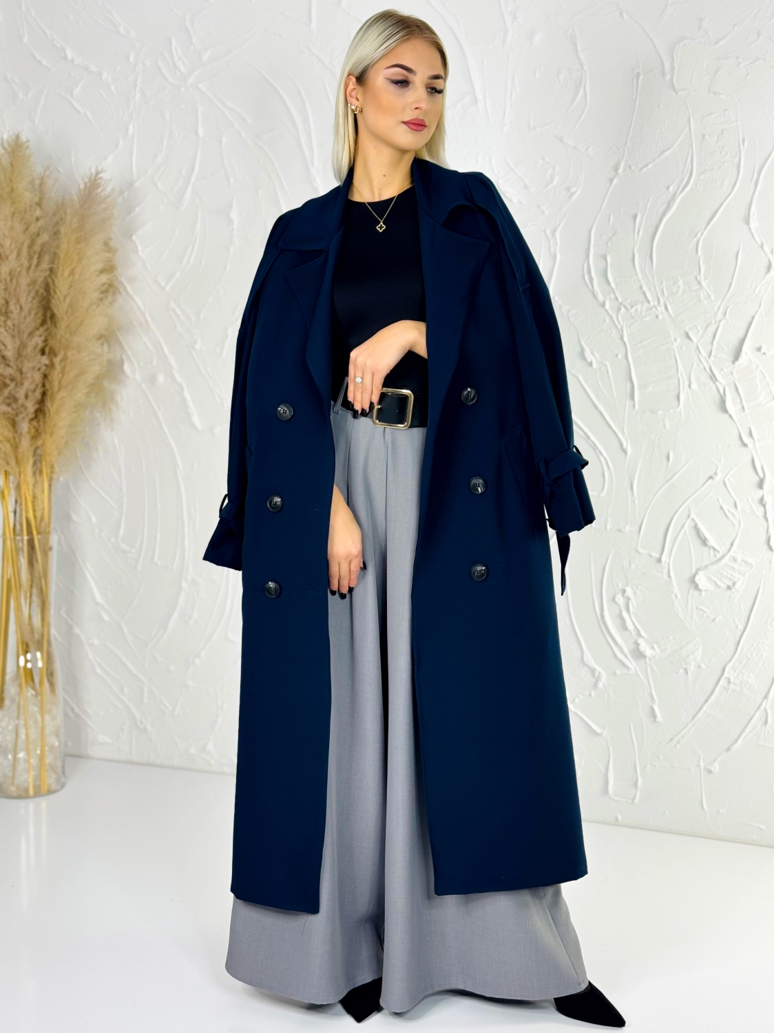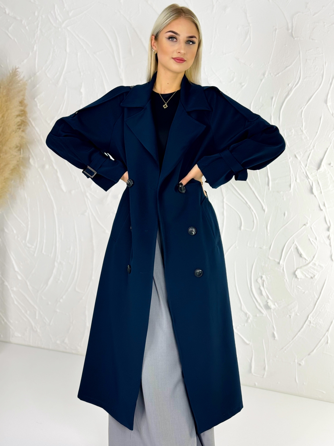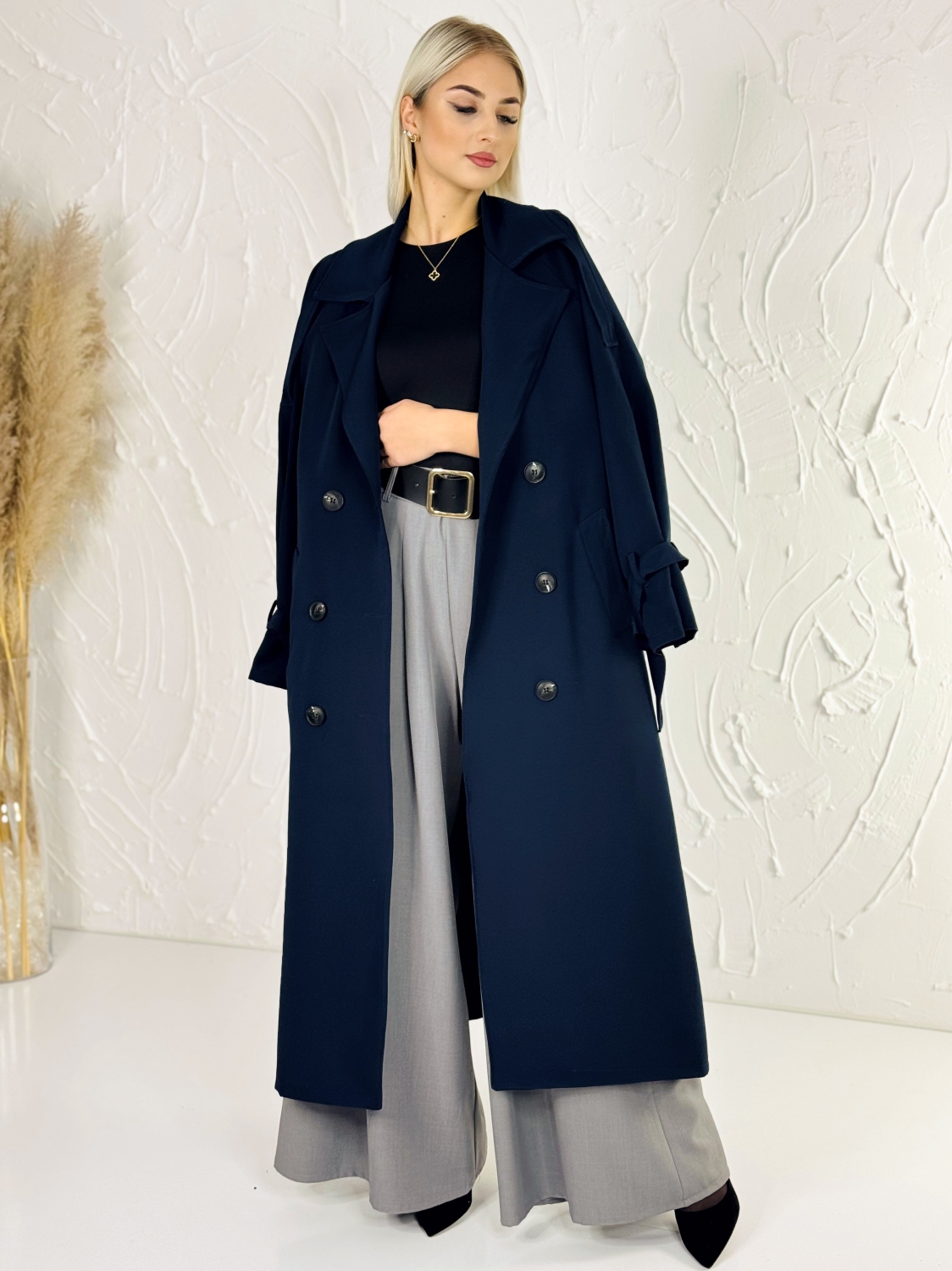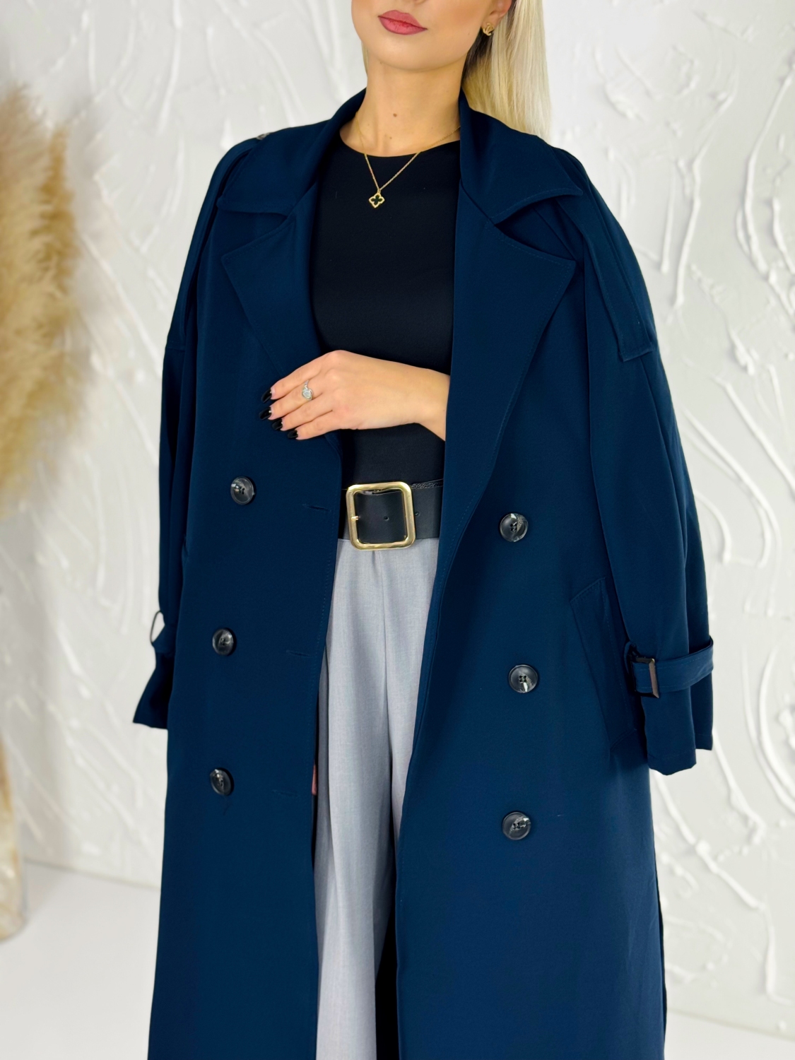 Čo sa môže hodiť viac ako trenčkot do premenlivého počasia? Dámsky dlhý trench coat je nestarnúci trend pre každú trendy žienku. Univerzálny kúsok, ktorý sa hodí k akémukoľvek outfitu. Široký golier a dvojradové gombíkové zapínanie. Trenčkot má taktiež vrecká na oboch stranách. Je perfektnou voľbou pri vytváraní každodenných štylizácií. Hodí sa k elegantným aj casual outfitom. Tento nekonečne štýlový trenčkot je viac než dostatočne vzhľadný a kvalitný. Výnimočne trendy a skutočne pohodlný. Jednoduchá úprava podľa vlatného vkusu. Zapínanie na gombíky. Vnútro trenčkotu nie je podšité, avšak svojím kvalitným materiálom sa Vám hodí do chladnejších jarných a jesenných dní. Modelka je vysoká 175 cm a oblečenú má veľkosť UNI.