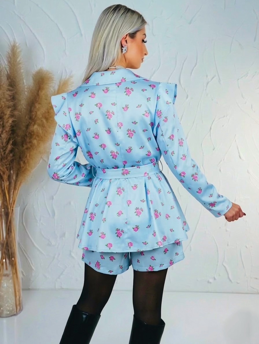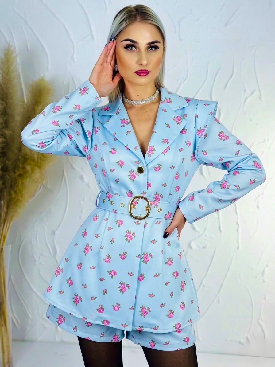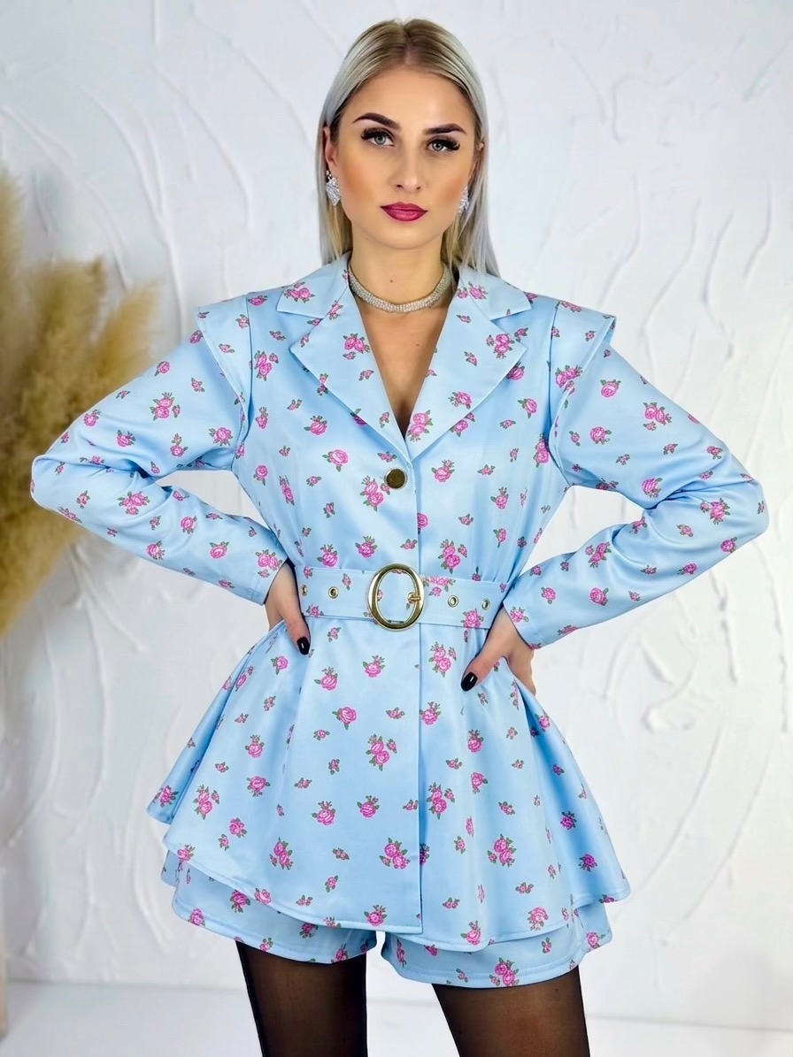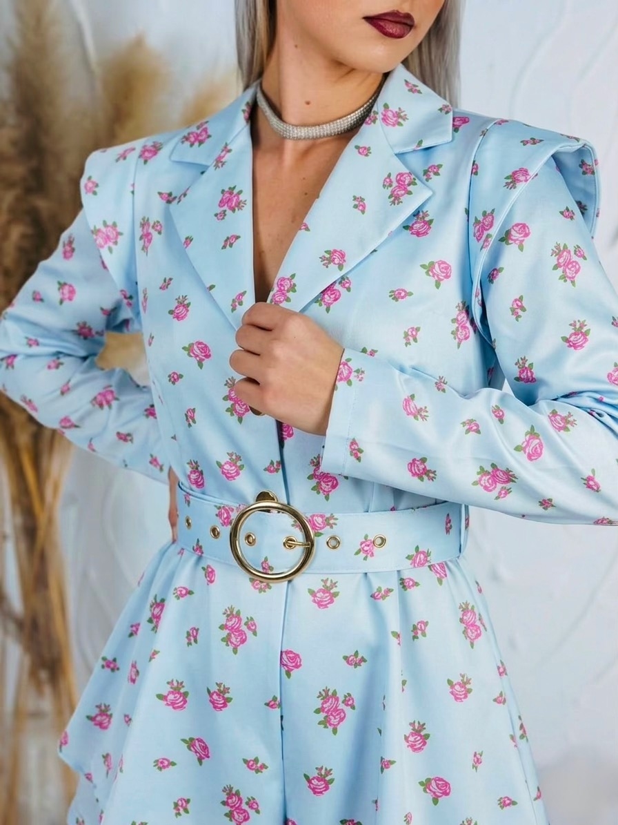 Dámsky elegantný kvetovaný overal s opaskom - modrý
