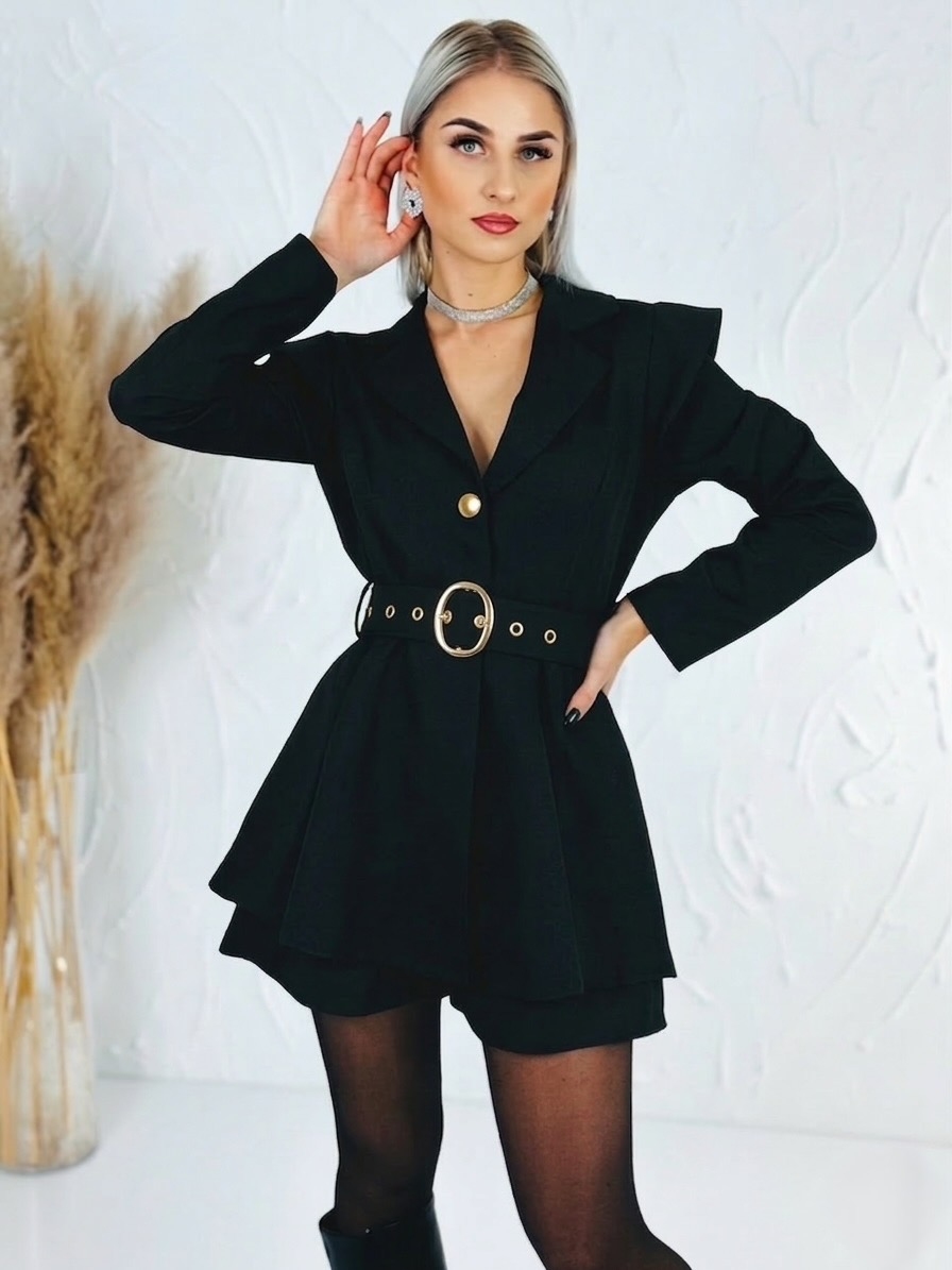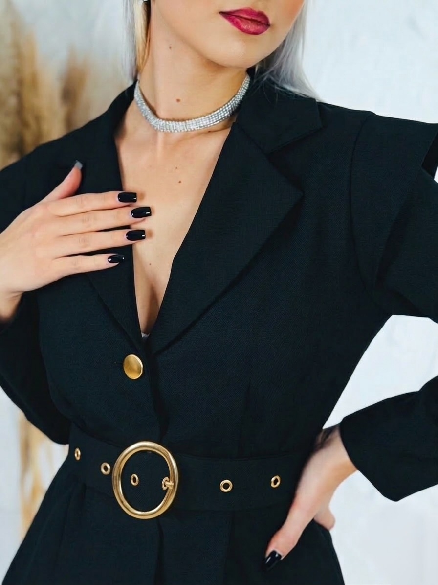 Dámsky elegantný overal je dokonalým kúskom pre ženy, ktoré chcú pôsobiť štýlovo, žensky a zároveň výnimočne. Tento model zaujme už na prvý pohľad svojím sofistikovaným véčkovým výstrihom, ktorý krásne zvýrazní dekolt a opticky predĺži postavu. Výstrih pôsobí veľmi vkusne a elegantne, vďaka čomu je overal ideálnou voľbou na spoločenské udalosti, oslavy, večierky, rodinné stretnutia či romantické večere. Predná časť je prakticky riešená zapínaním na gombíky, ktoré uľahčujú obliekanie a zároveň vytvárajú jemný dizajnový detail. V páse sa nachádza opasok so štýlovou zlatou sponou, ktorý krásne zvýrazní pás a dodá celému outfitu elegantný a luxusný nádych. Overal je navrhnutý tak, aby lichotil ženskej siluete a vytváral upravený, no zároveň pohodlný vzhľad. Materiál je príjemný na dotyk, ľahký a vzdušný, takže sa v ňom budete cítiť komfortne počas celého dňa aj večera.