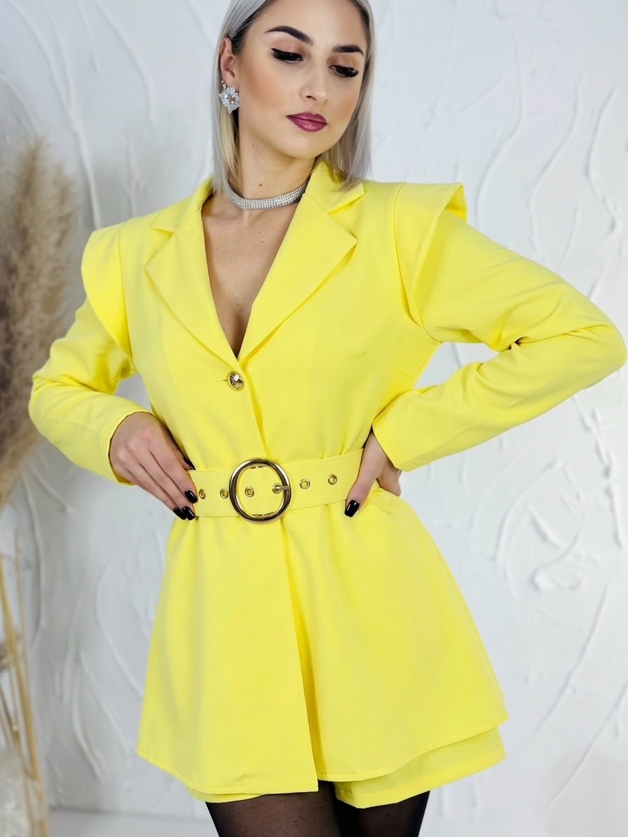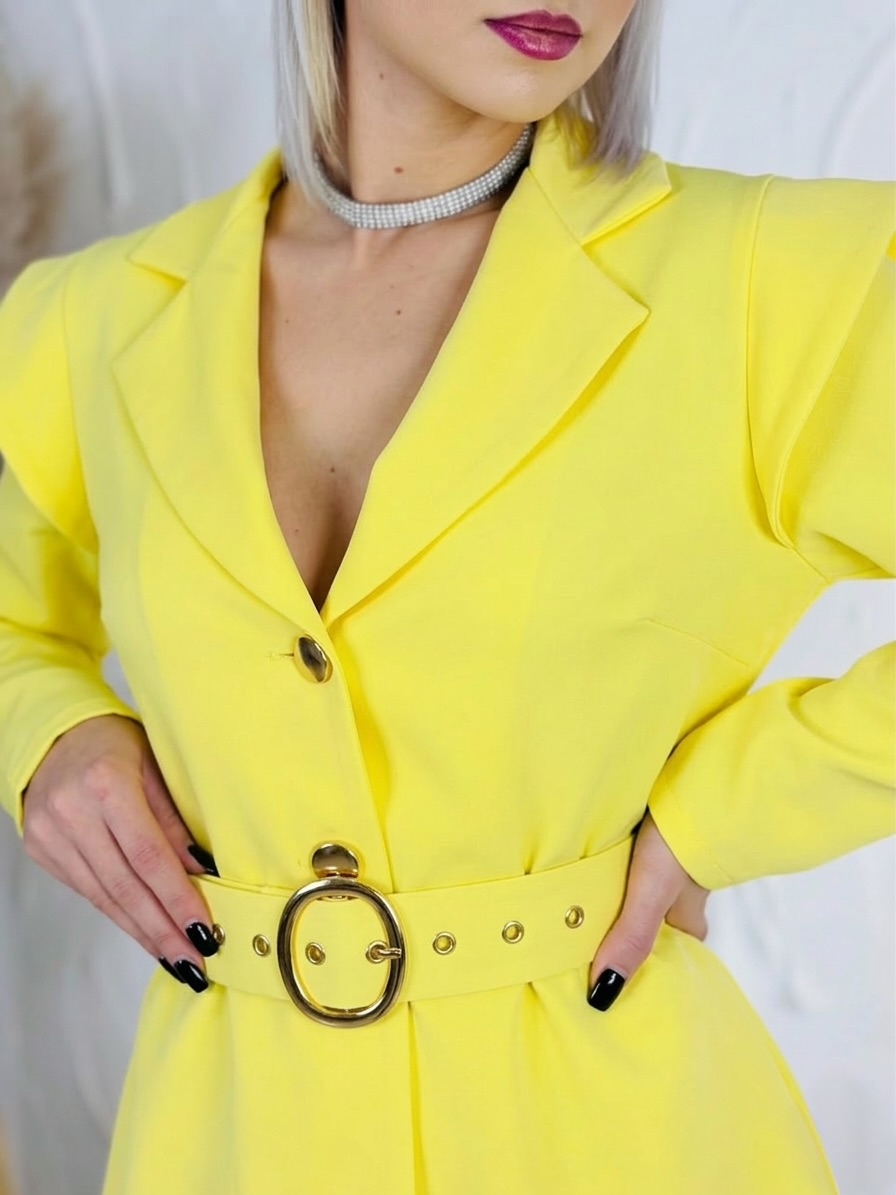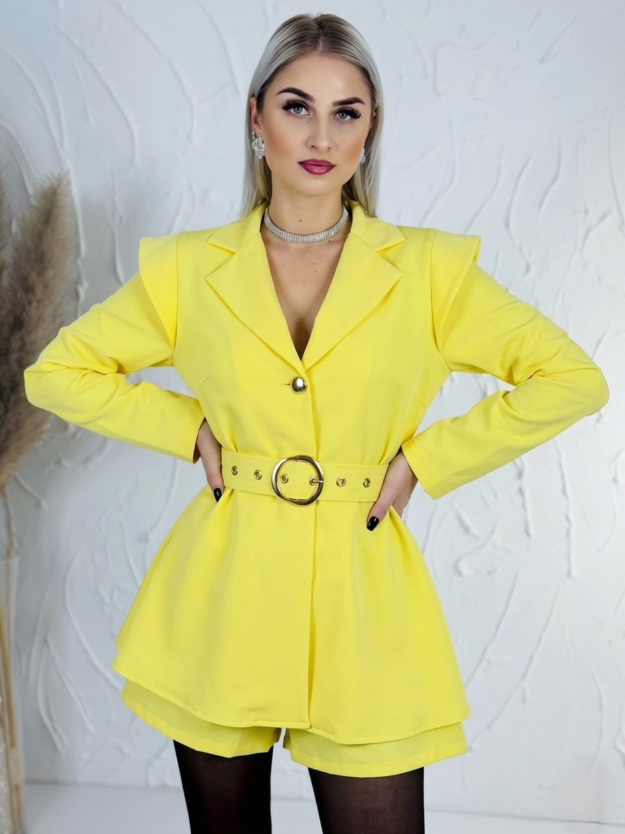 Dámsky elegantný overal je dokonalým kúskom pre ženy, ktoré chcú pôsobiť štýlovo, žensky a zároveň výnimočne. Tento model zaujme už na prvý pohľad svojím sofistikovaným véčkovým výstrihom, ktorý krásne zvýrazní dekolt a opticky predĺži postavu. Výstrih pôsobí veľmi vkusne a elegantne, vďaka čomu je overal ideálnou voľbou na spoločenské udalosti, oslavy, večierky, rodinné stretnutia či romantické večere. Predná časť je prakticky riešená zapínaním na gombíky, ktoré uľahčujú obliekanie a zároveň vytvárajú jemný dizajnový detail. V páse sa nachádza opasok so štýlovou zlatou sponou, ktorý krásne zvýrazní pás a dodá celému outfitu elegantný a luxusný nádych. Overal je navrhnutý tak, aby lichotil ženskej siluete a vytváral upravený, no zároveň pohodlný vzhľad. Materiál je príjemný na dotyk, ľahký a vzdušný, takže sa v ňom budete cítiť komfortne počas celého dňa aj večera.