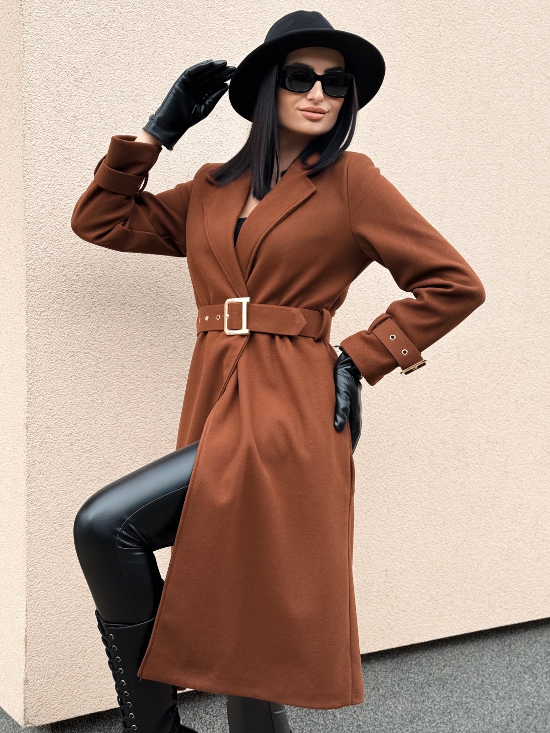 Objav jedinečné spojenie elegancie, štýlu a sebavedomia s týmto nádherným dámskym kabátom. Bordová farba symbolizuje vášeň, silu a ženskosť, vďaka čomu sa v ňom budeš cítiť výnimočne pri každom kroku. Kabát má klasický, mierne priliehavý strih, ktorý krásne zvýrazňuje ženské krivky a pôsobí veľmi sofistikovane. Opasok s výraznou zlatou prackou zvýrazní pás a dodá celkovému vzhľadu šmrnc. Rovnaké pracky na rukávoch pôsobia ako detail, ktorý z neho robí skutočne prémiový kúsok. Kvalitný materiál zabezpečuje príjemné teplo počas chladnejších dní, pričom si zachováva elegantný vzhľad bez zbytočného objemu. Vďaka midi dĺžke a pevnému golieru pôsobí kabát moderne a luxusne zároveň. Dokonale sa hodí k čižmám, lodičkám aj vysokým opätkom. Skvelo doplní elegantný outfit do práce, na večeru či jesennú prechádzku mestom.