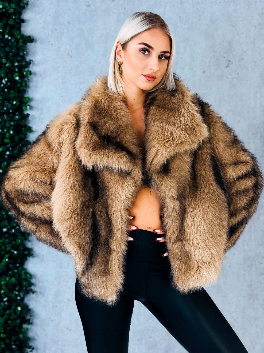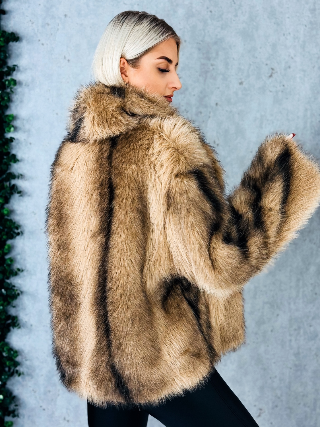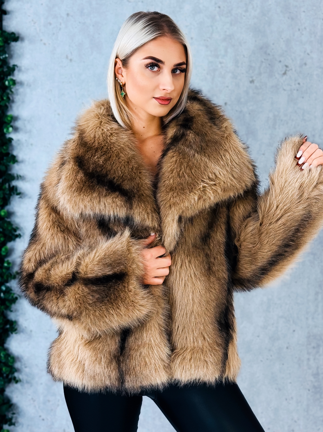 Doprajte svojmu šatníku dotyk elegancie a pohodlia — hnedý krátky kožuch podobný norke je kúsok, ktorý si zamilujete hneď pri prvom oblečení.